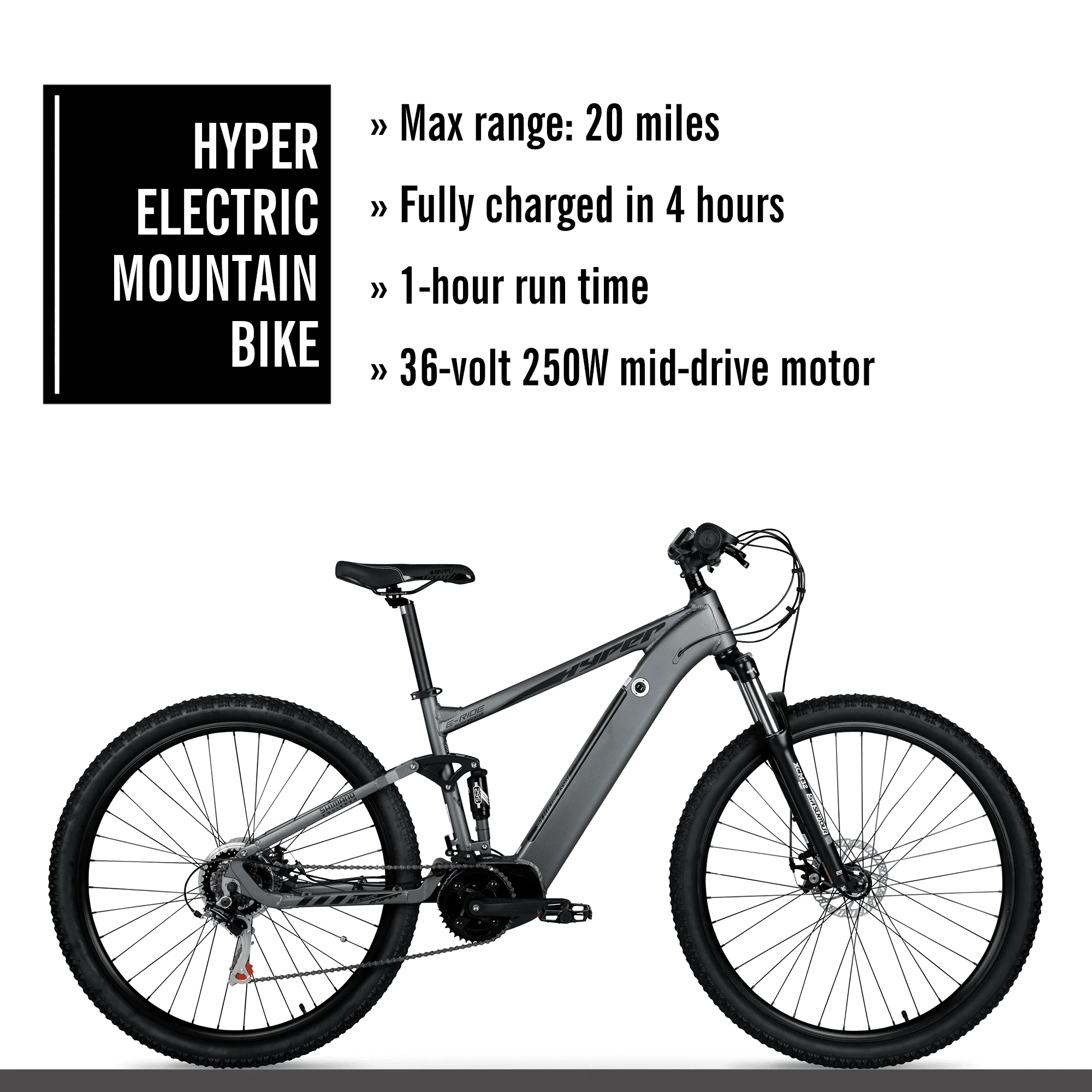 Hyper Bicycles E-Ride 29 36V Electric Mountain Bike for Adults, Pedal-Assist, 250W Mid-Drive E-Bike Motor, Grey