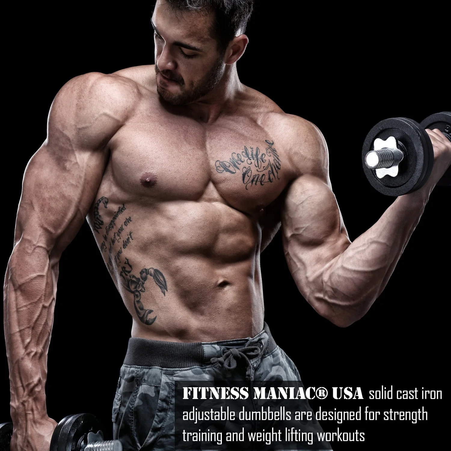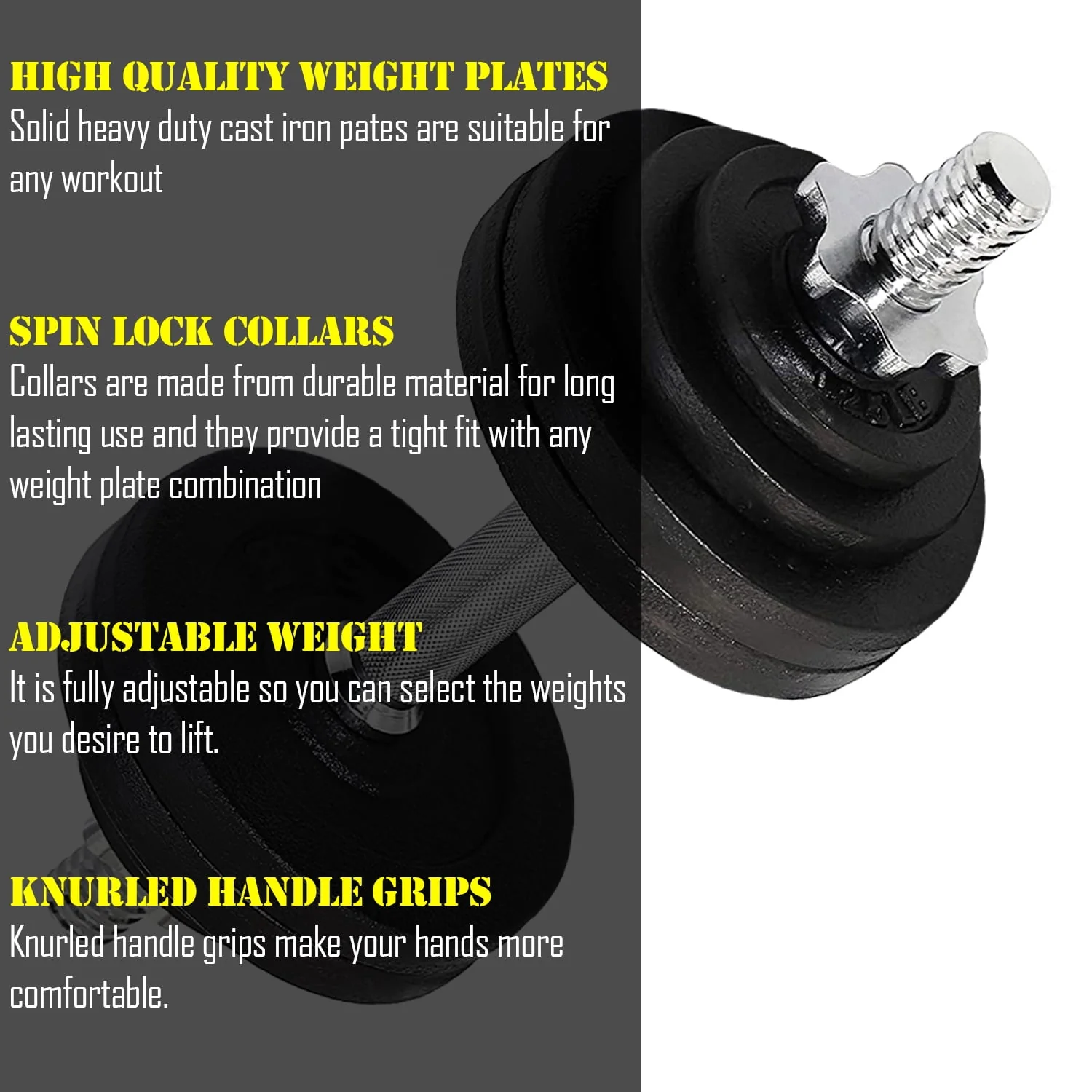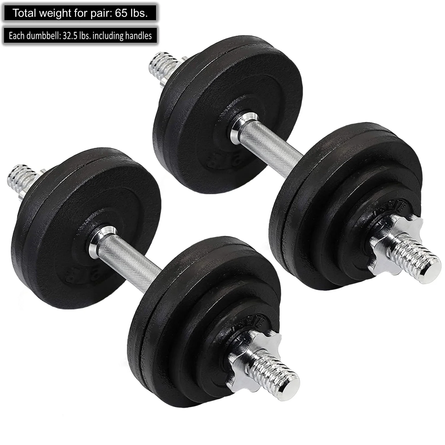 Fitness Maniac USA 65 lbs Adjustable Dumbbells Set Solid Cast Iron Weight Plates, Great for Strength Training, Weightlifting, Bodybuilding & Powerlifting