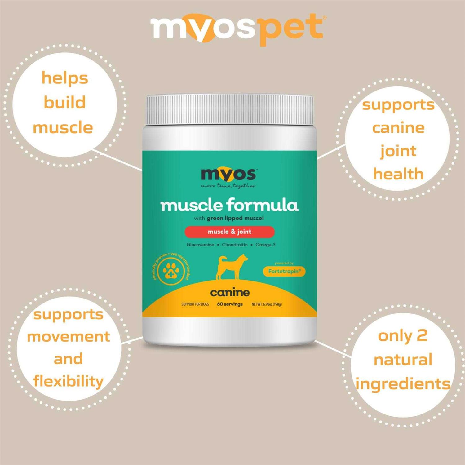 MYOS Canine Muscle & Joint Formula with Green Lipped Mussel Powder Dog Supplement