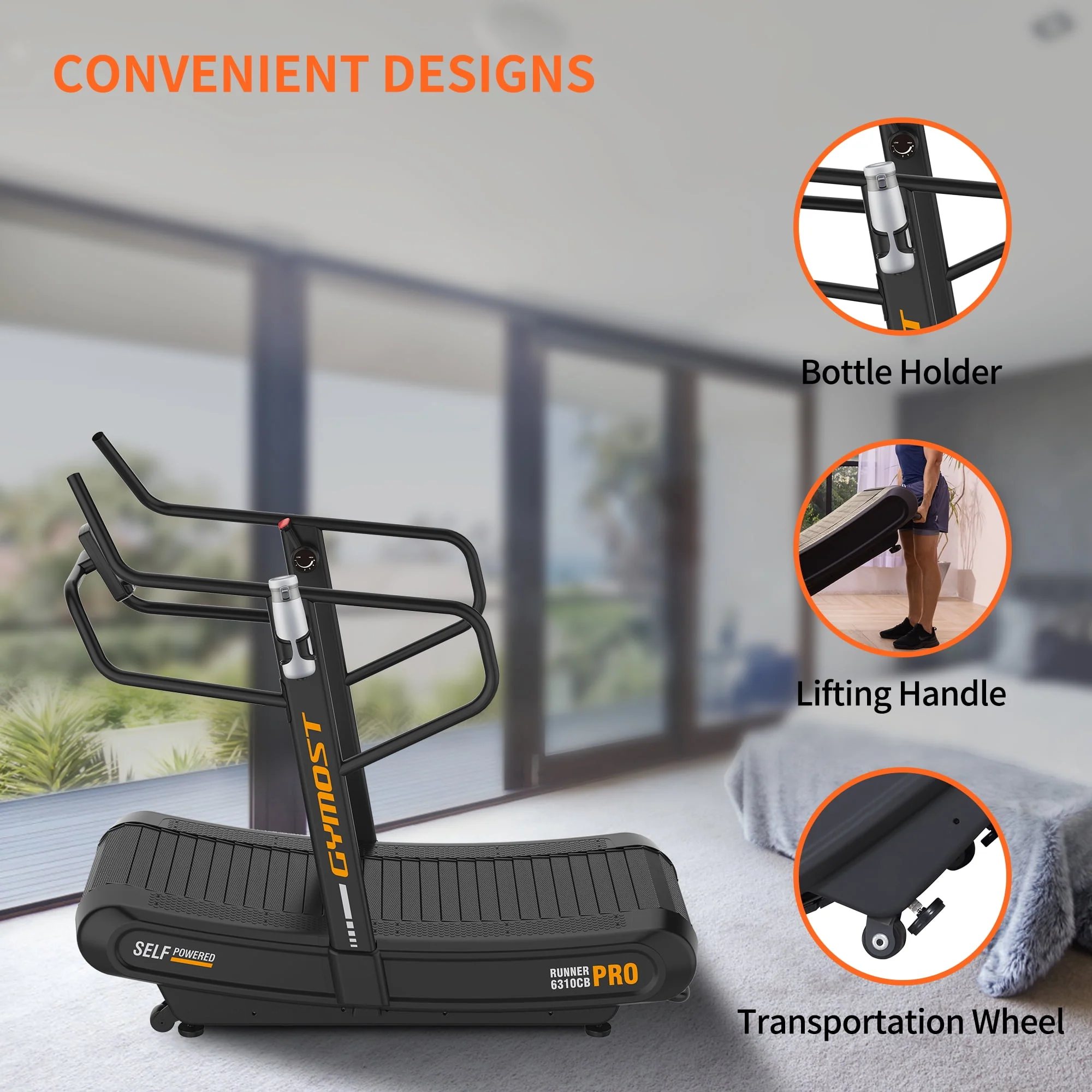 GYMOST Manual Curved Treadmill, Motorless Sprint Treadmill with Customization & Resistance Adjustment, Home & Commercial Treadmill With 5” LED Screen