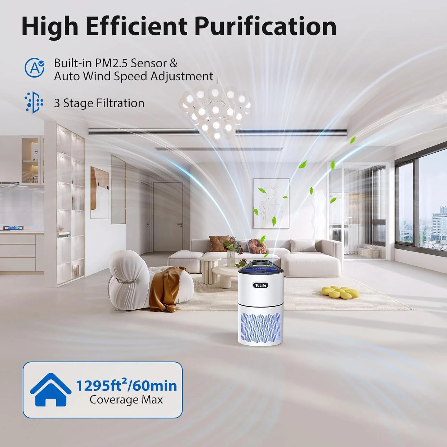 ToLife Air Purifiers for Home Bedroom - HEPA Filter Air Cleaner for Pet Hair Allergies Smokers Dust Pollen Odor Eliminators (215 Sq.ft)