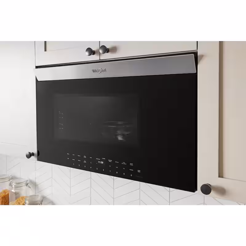 30 in. 1.1 cu. ft. Air Fry Over-the-Range Flush Built-In Microwave in Black Stainless Finish with Flush Built-in Design