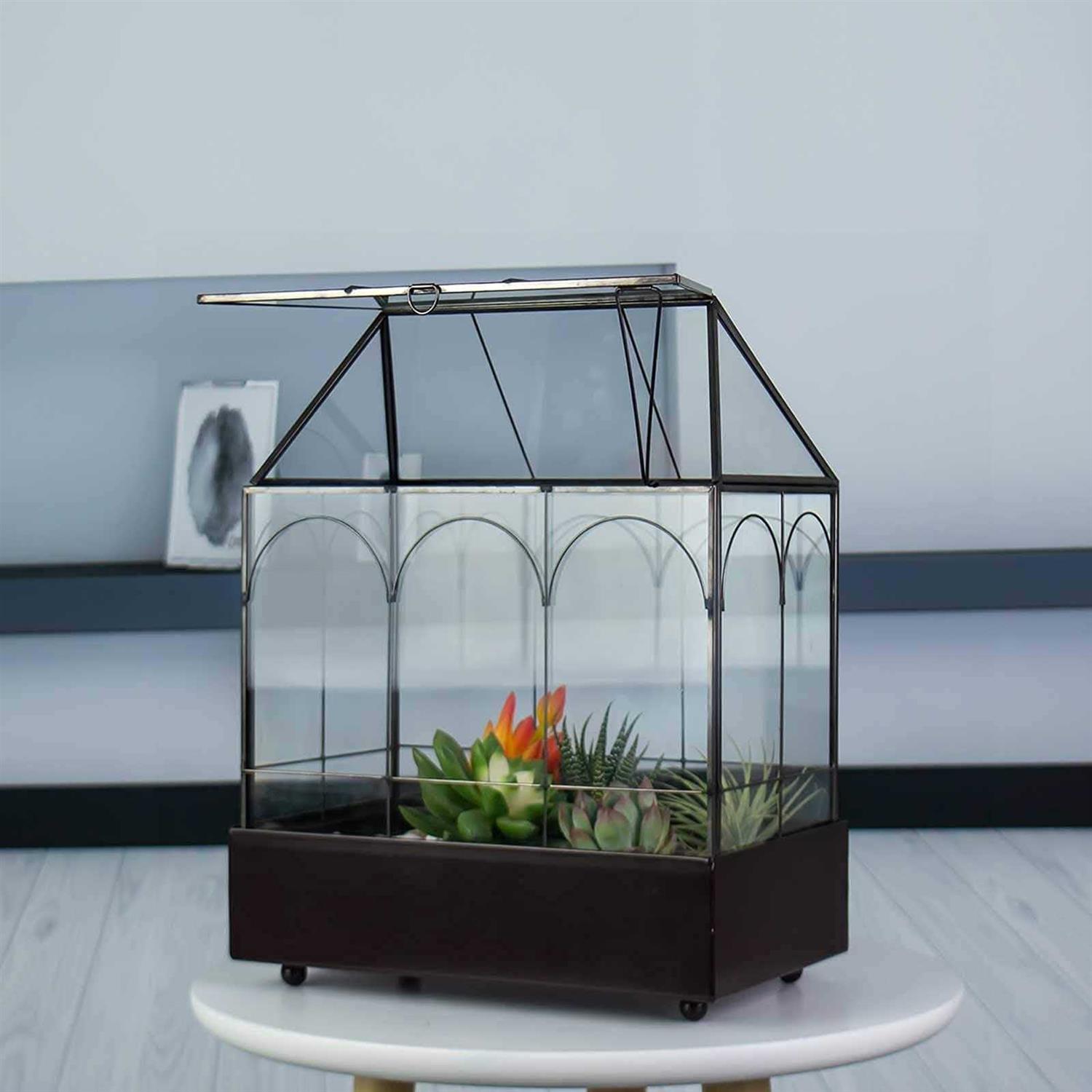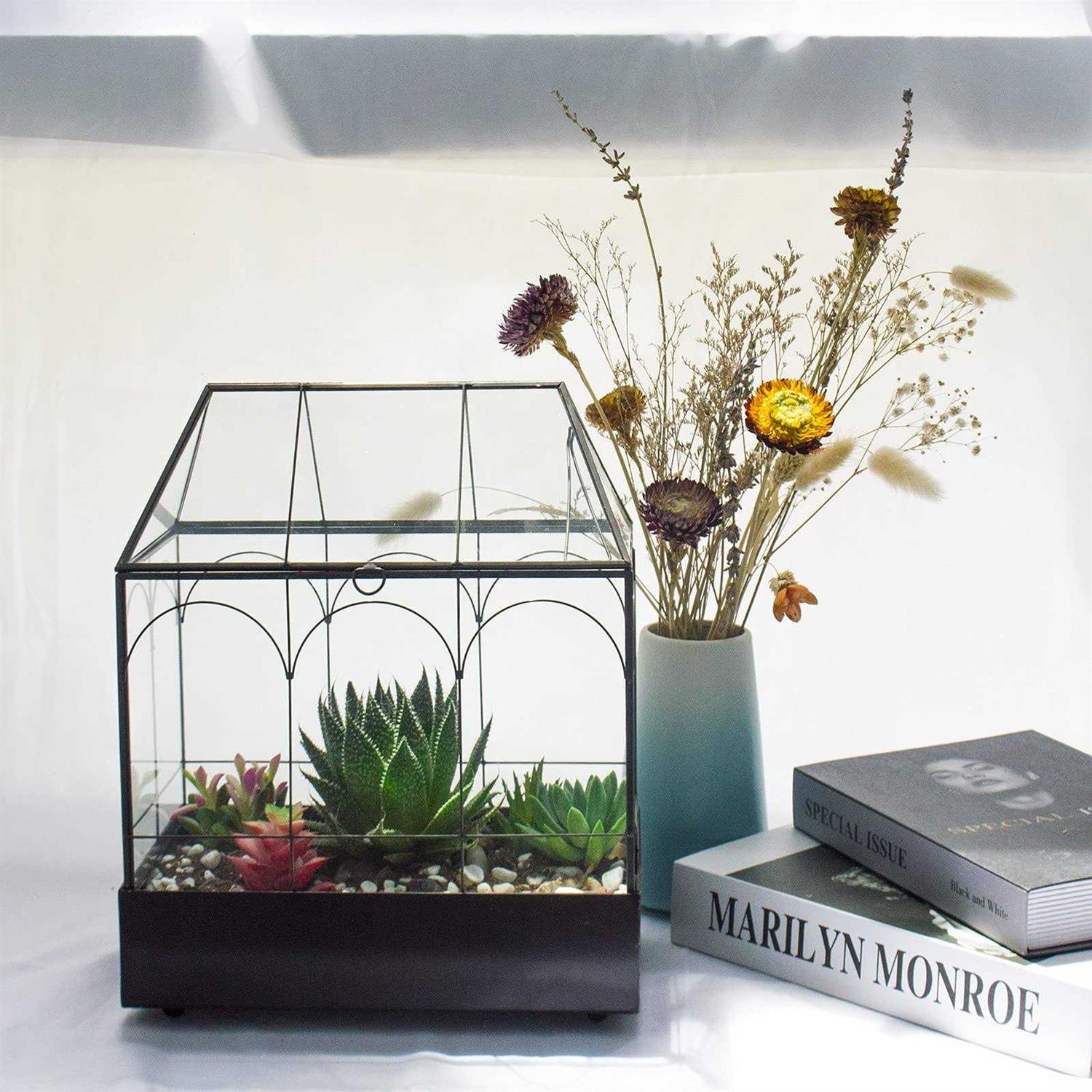YIMORENcE V Large Tall glass Plant Terrarium – House Succulent Terrarium Kit with Lip and Tray
