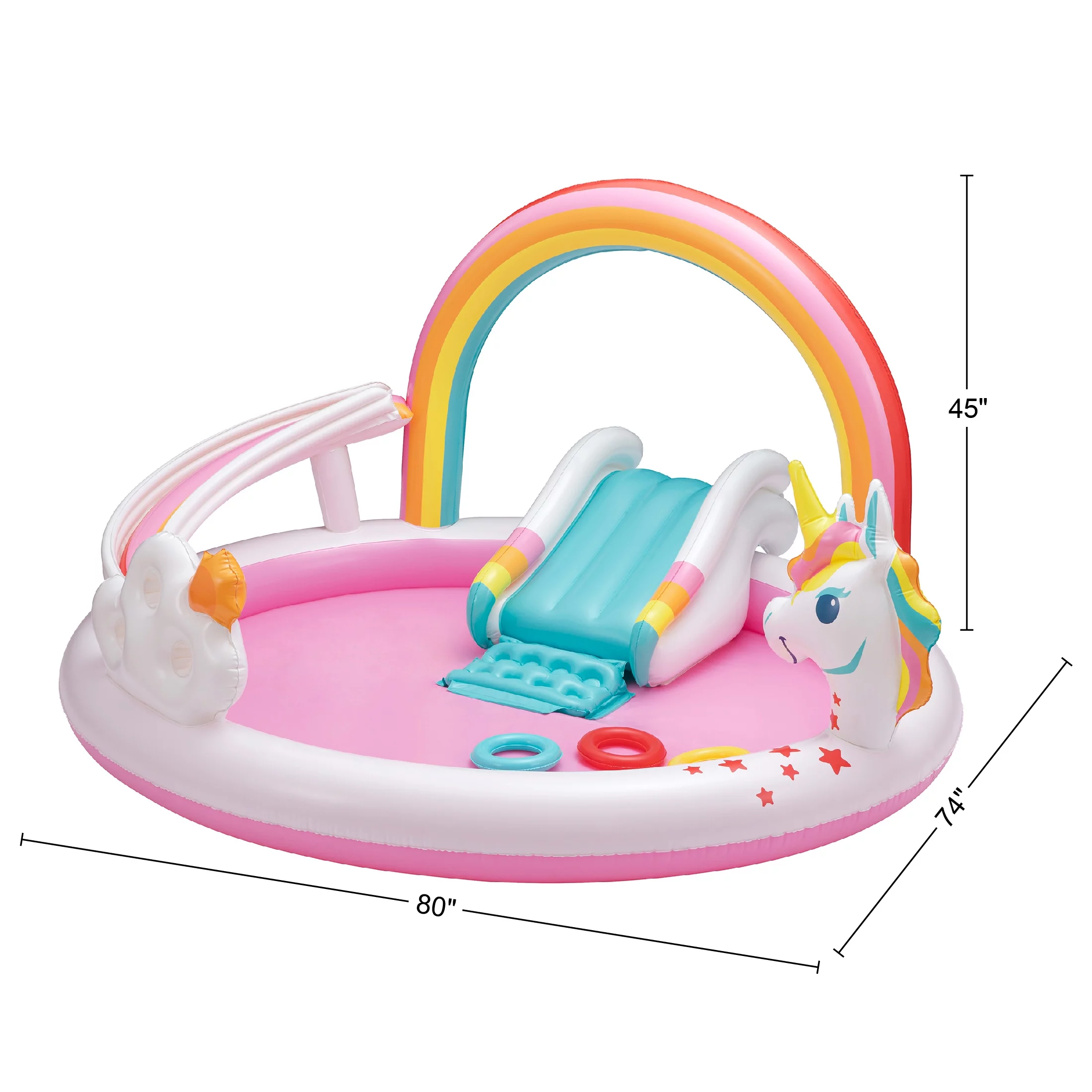 Bluescape Rainbow Unicorn Play Center, Kids Splash Pool with Sprinkler, Toys & Slide, Age 2 & up, Unisex