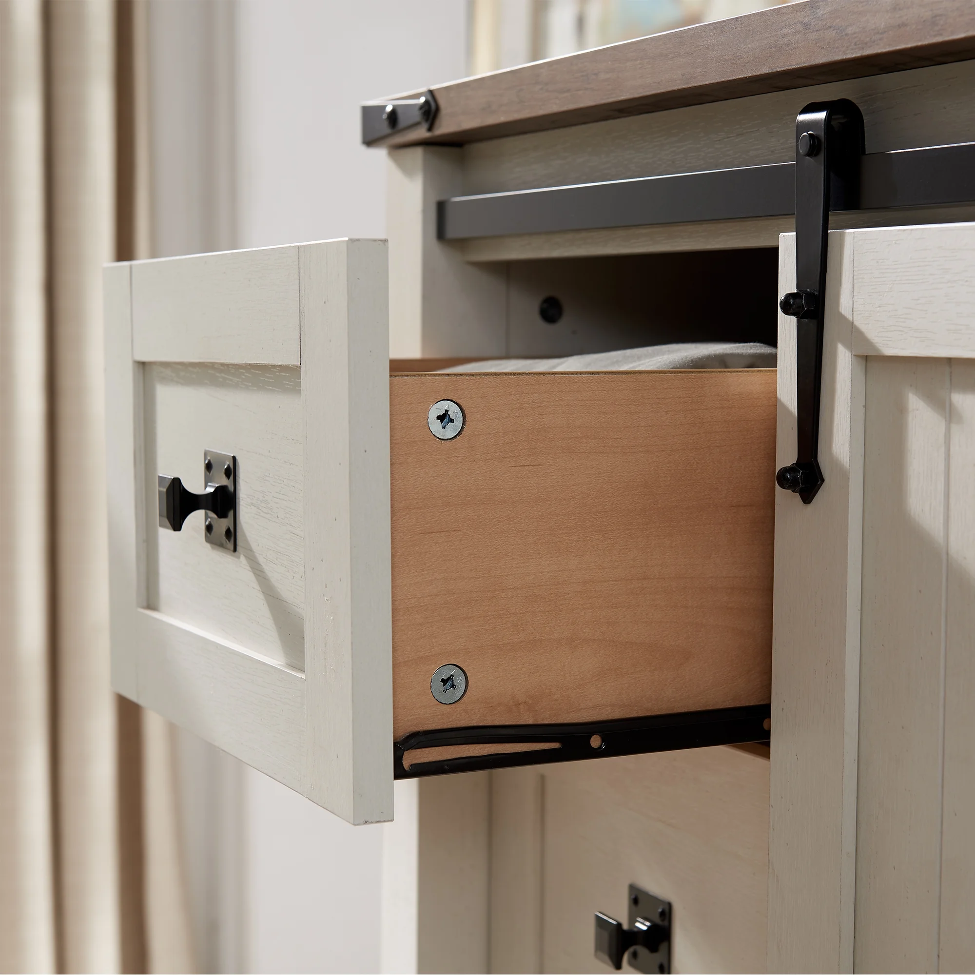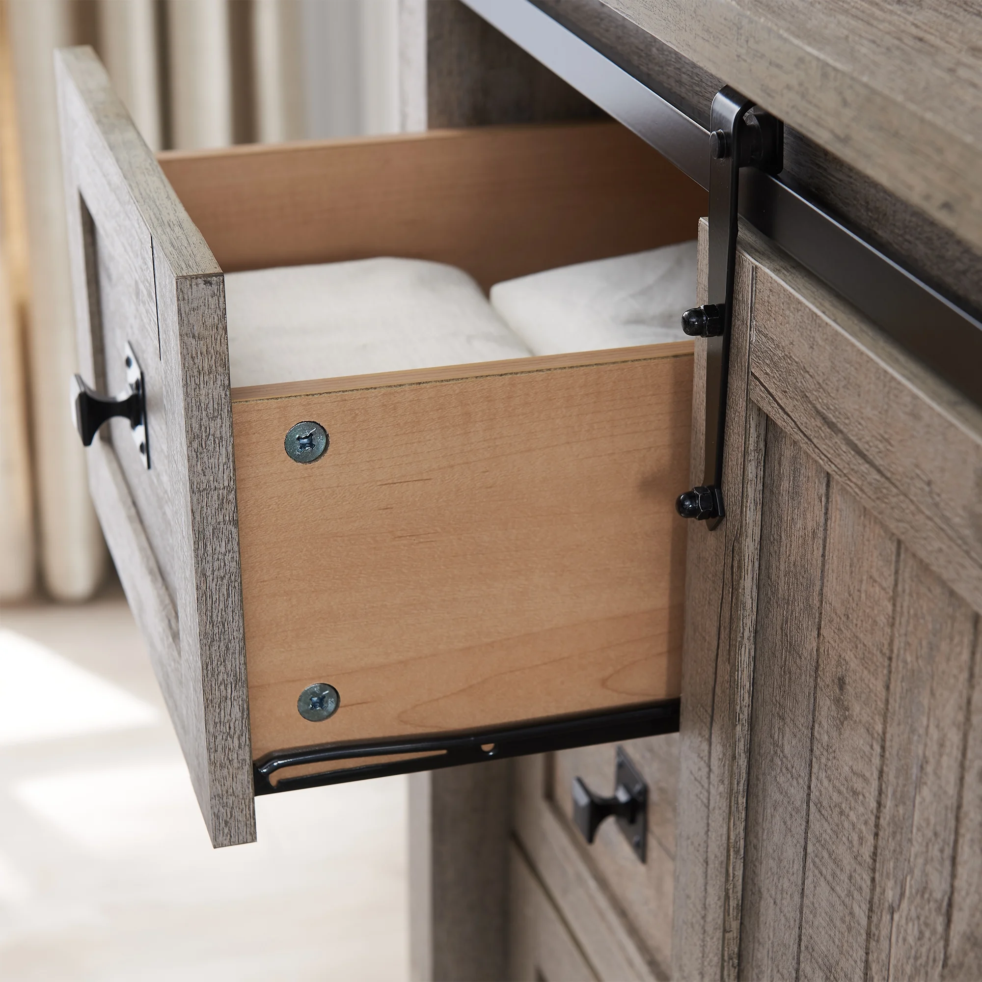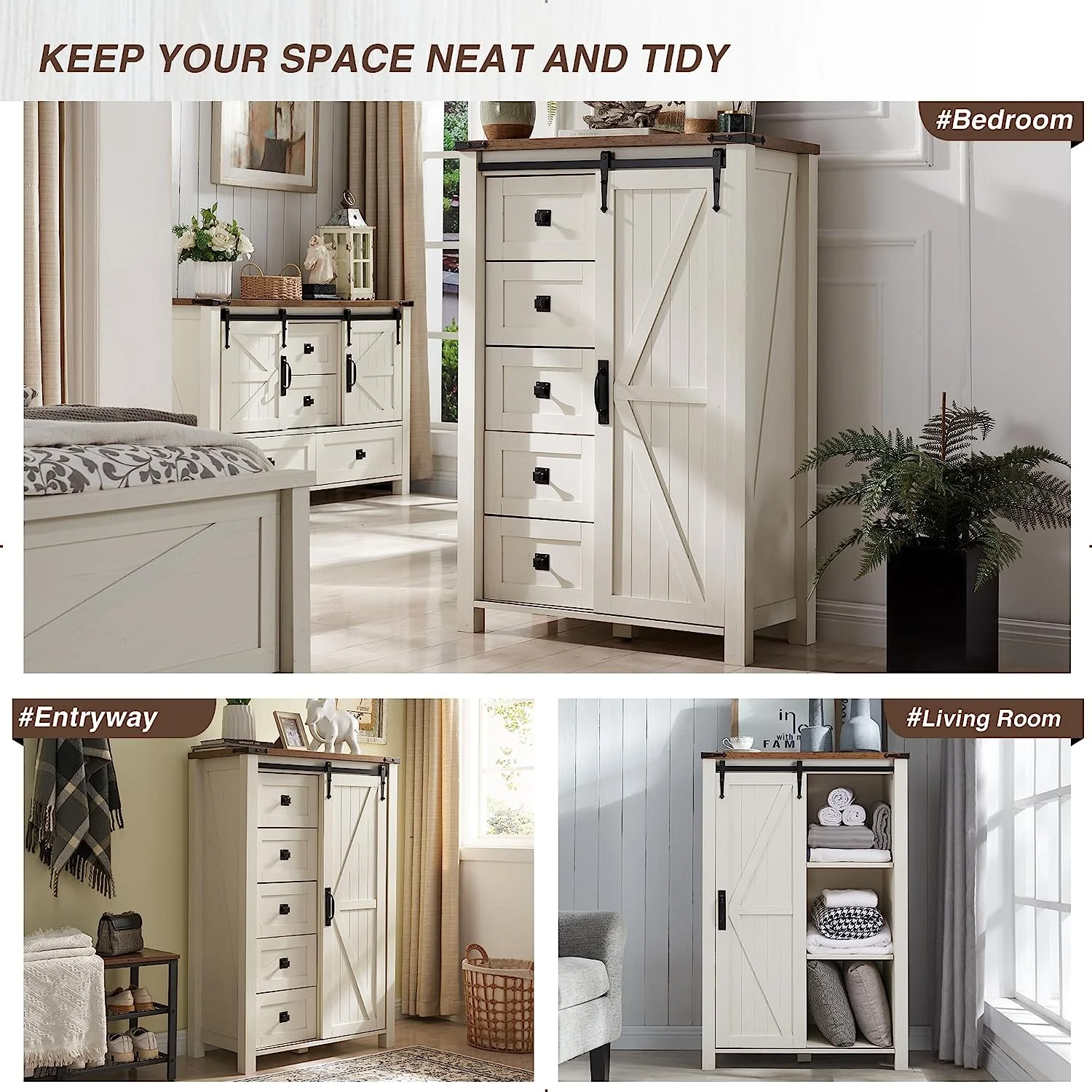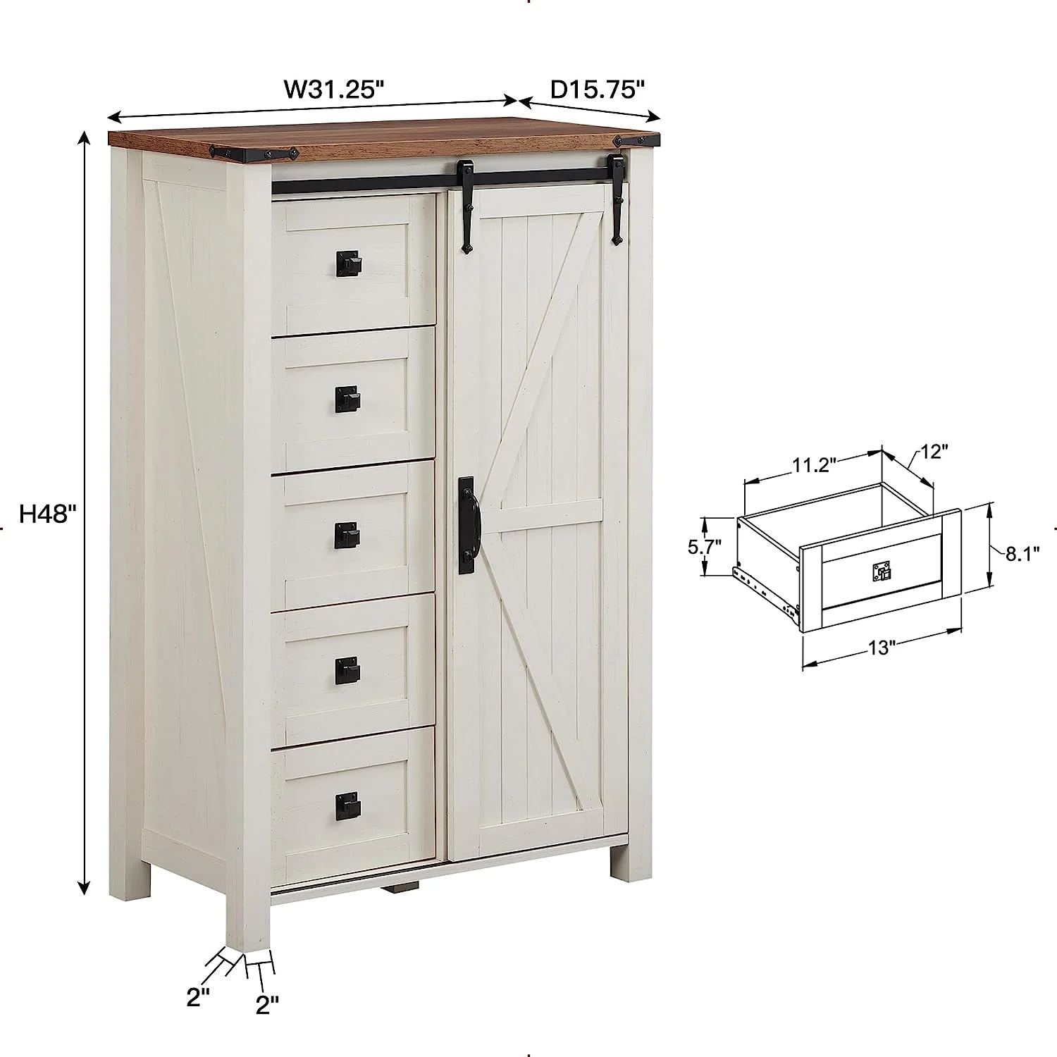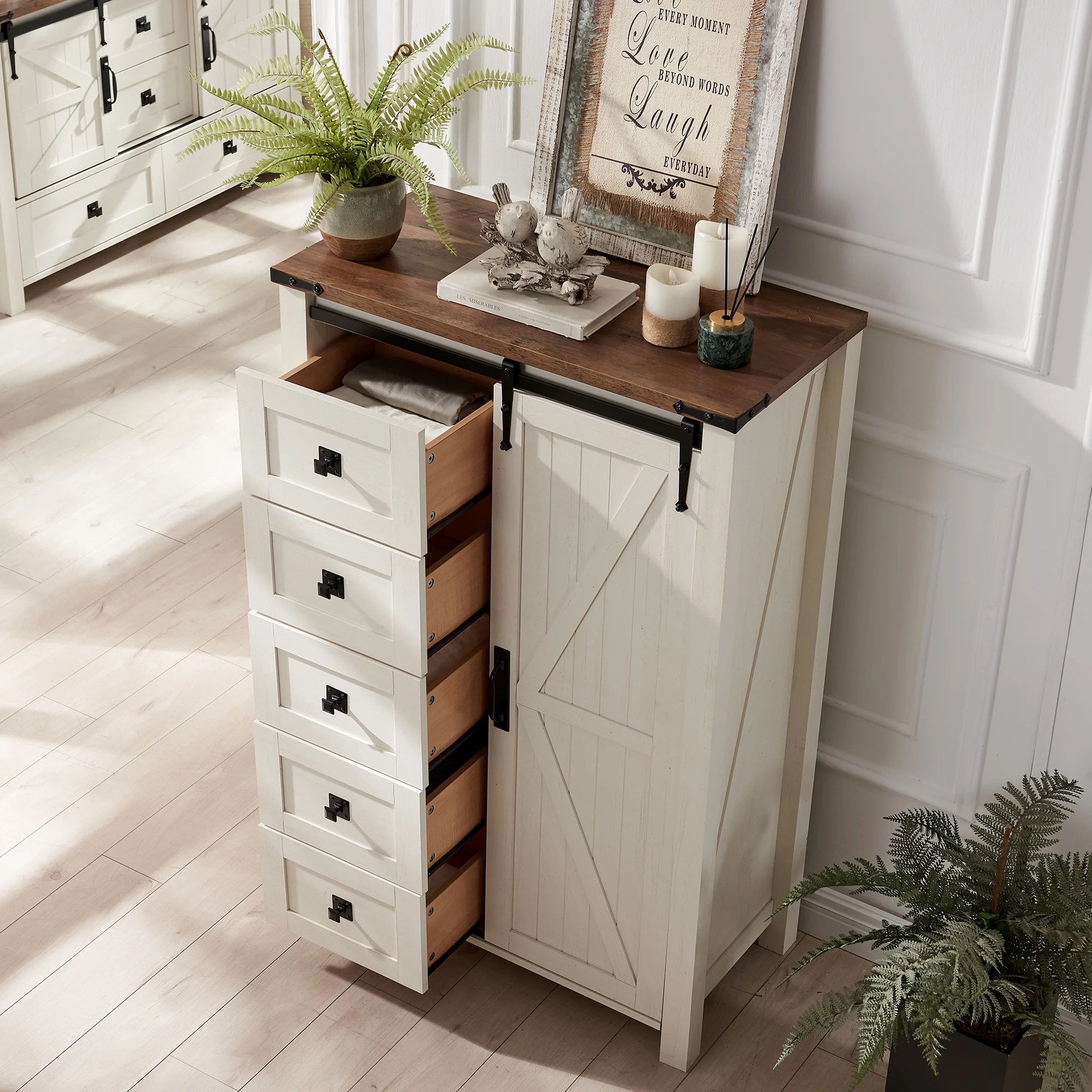 OKD Modern Farmhouse 5-Drawer Dresser with Barn Door, Adjustable Storage Cabinet for Bedroom Living Room, Light Rustic Oak