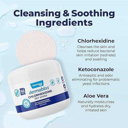 Vetnique Labs Dermabliss Medicated Skin Wipes Anti-Bacterial & Anti-Fungal Medicated Hot Spot & Skin Fold Dog & Cat Wipes