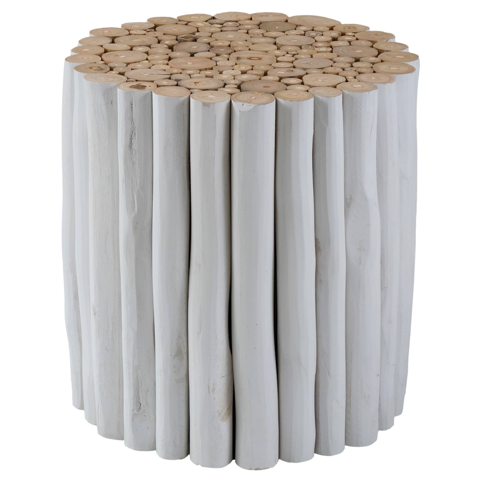 East at Main Stanley White Round Teakwood Side End Accent Table Foot Stool (15x15x16) - Megean