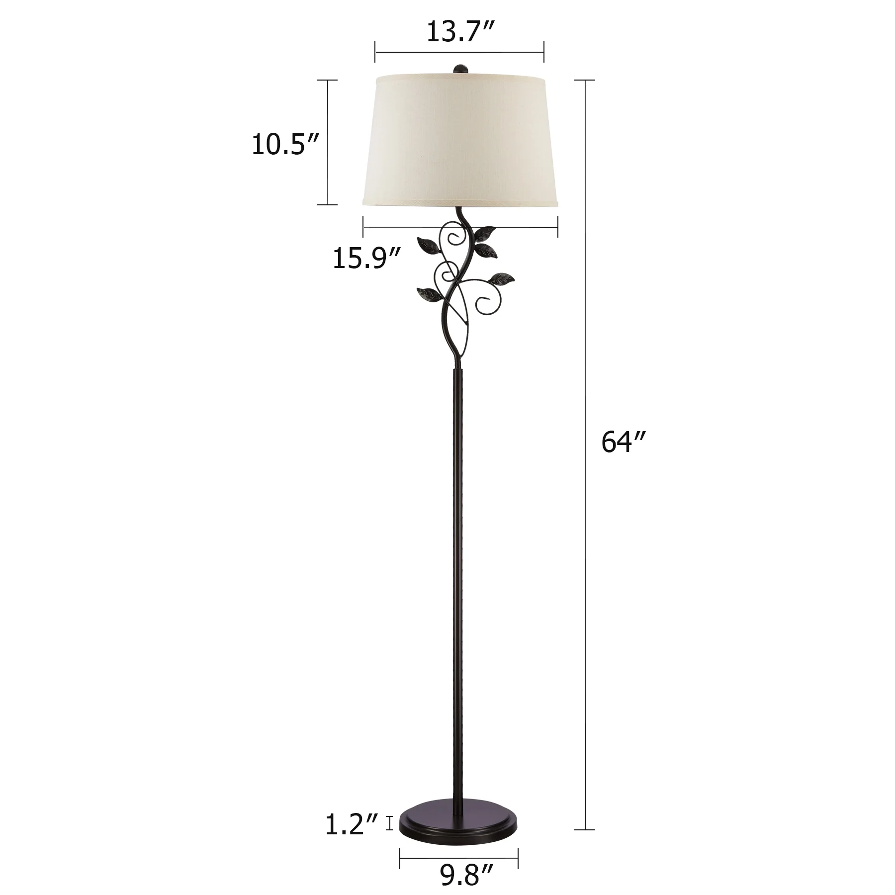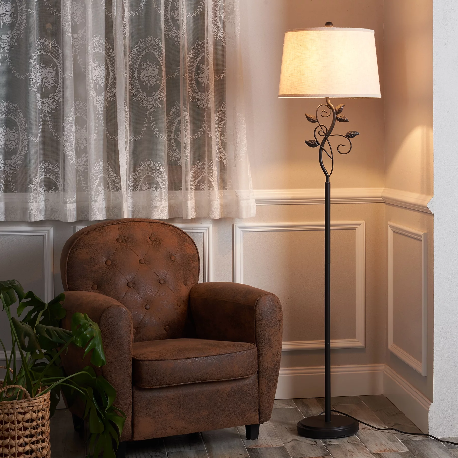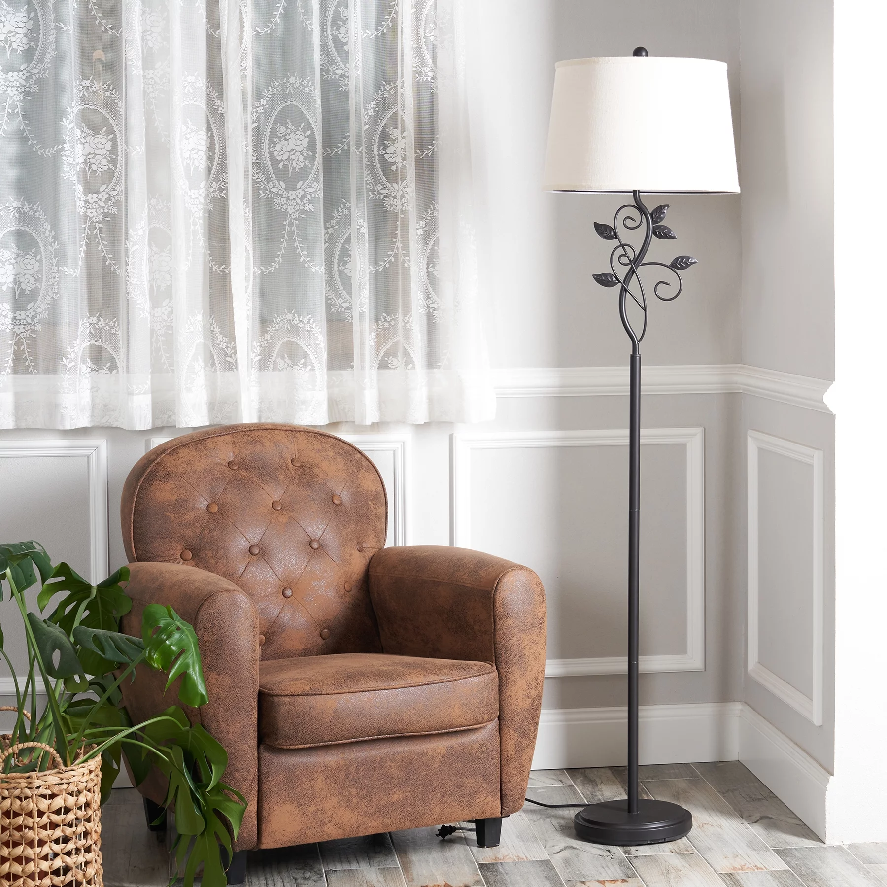 64" Modern Organic Floor Lamp Home Standing Lamp with Metal Vines & Leaves - Curated Treasures Market