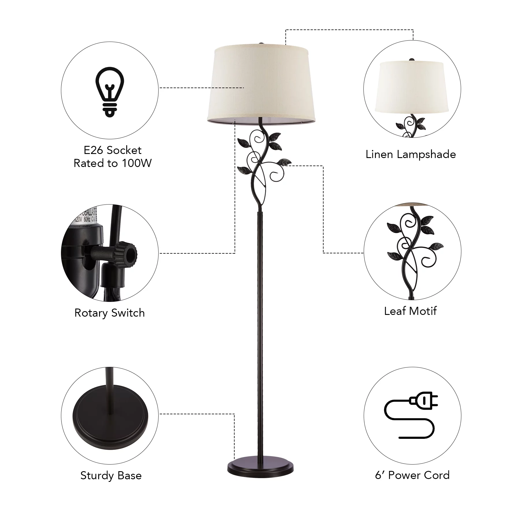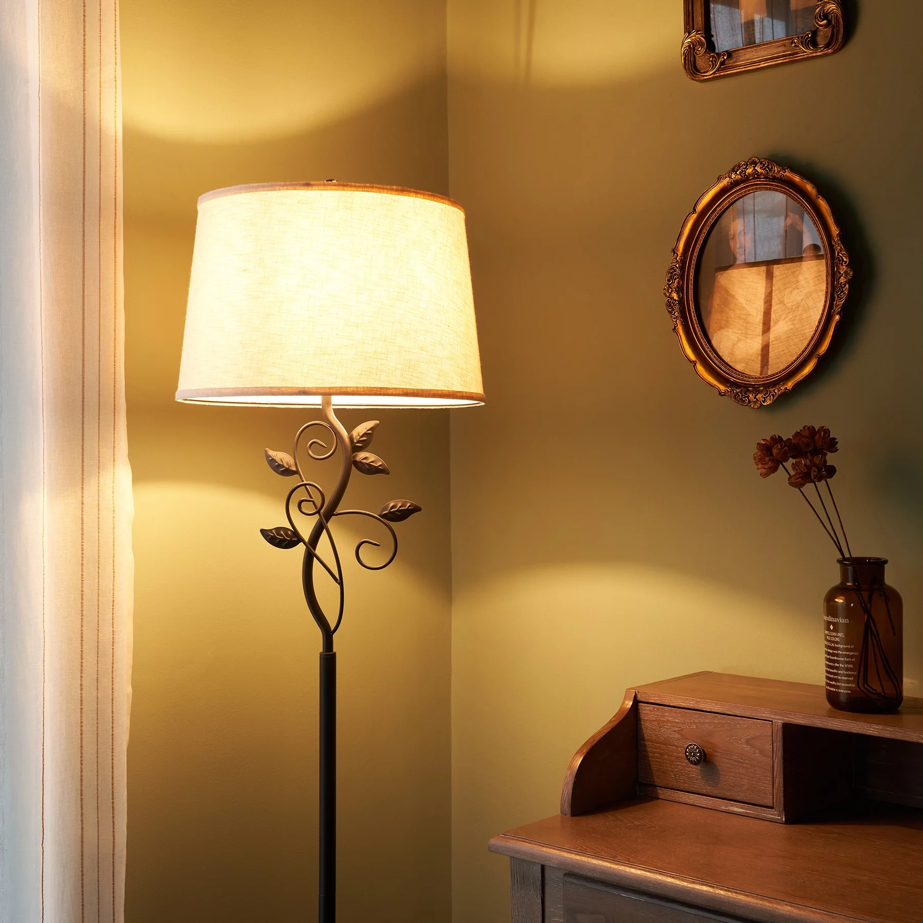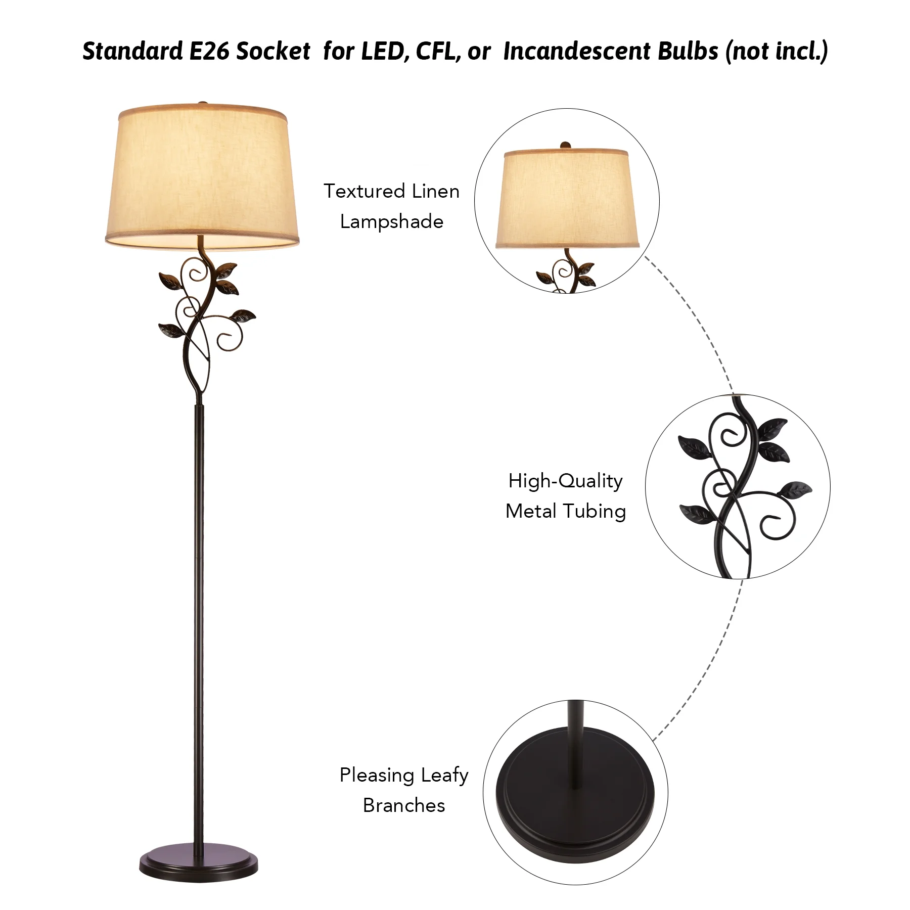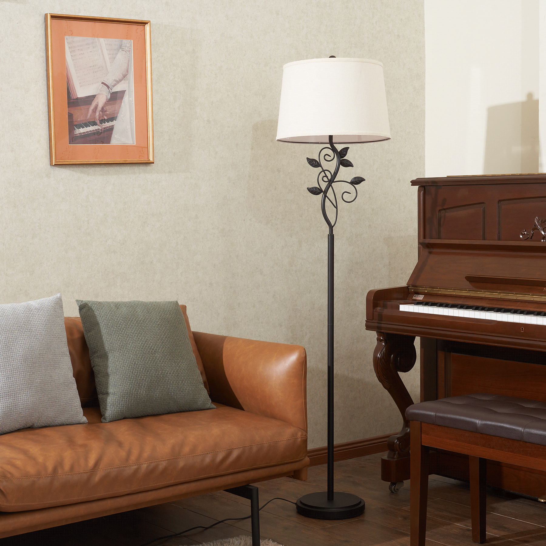 64" Modern Organic Floor Lamp Home Standing Lamp with Metal Vines & Leaves - Curated Treasures Market