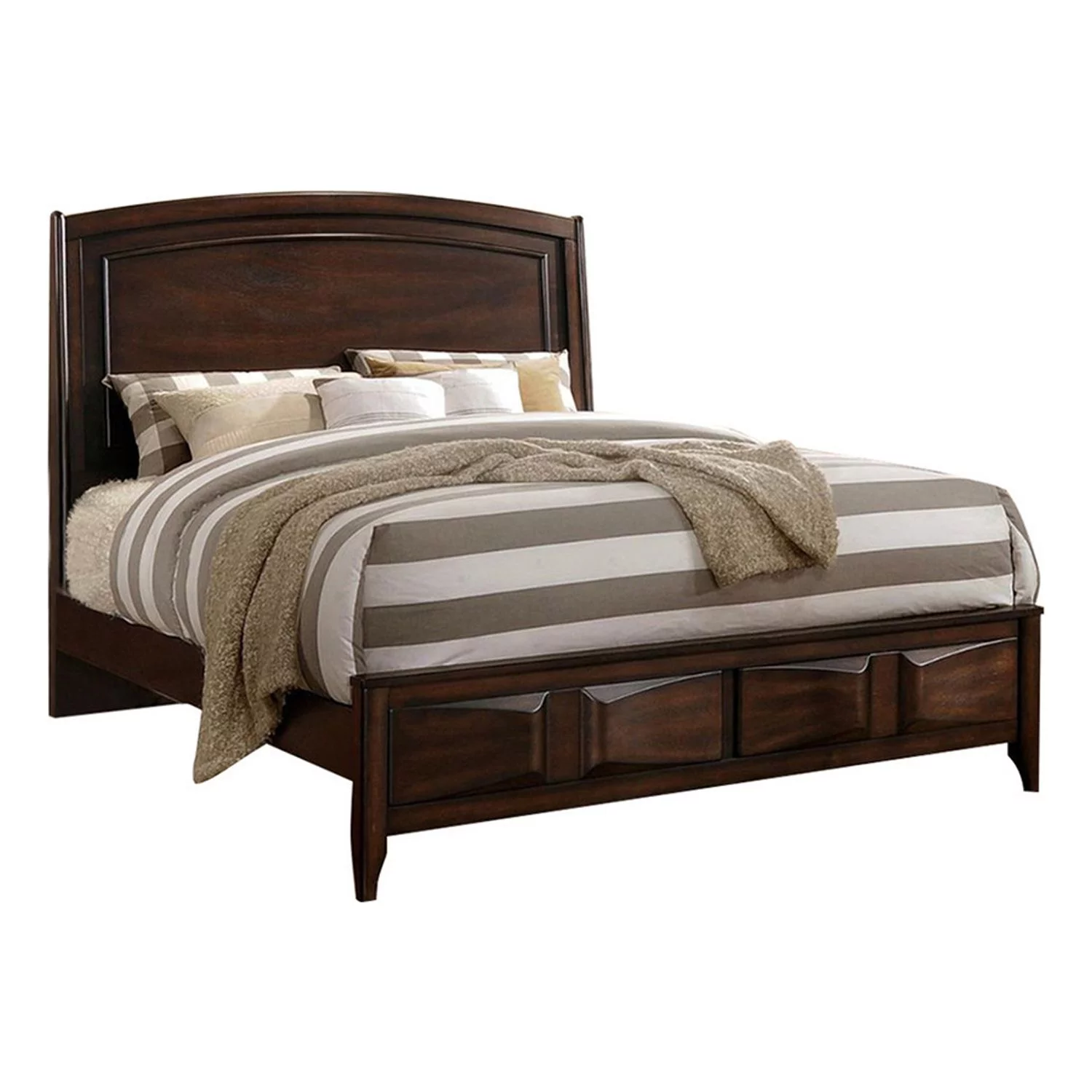 BenJara Crisp And Fine Lined Wooden C.King Bed With 3D Design on Front Board. Oak-Color:Oak Brown