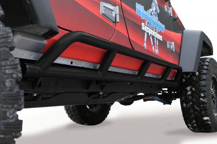 Steinjager J0043899 Rock Sliders Wrangler JK 2007-2018 4 Door Bare Knuckles Style Black - Megean