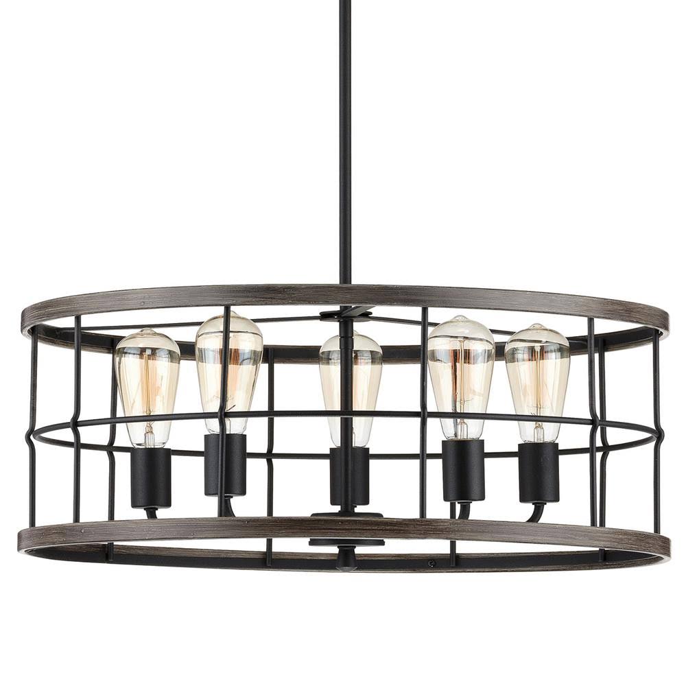 Progress Lighting Fairforest 5-Light Matte Black with Aged Oak Accents Chandelier - Avayadevconnect
