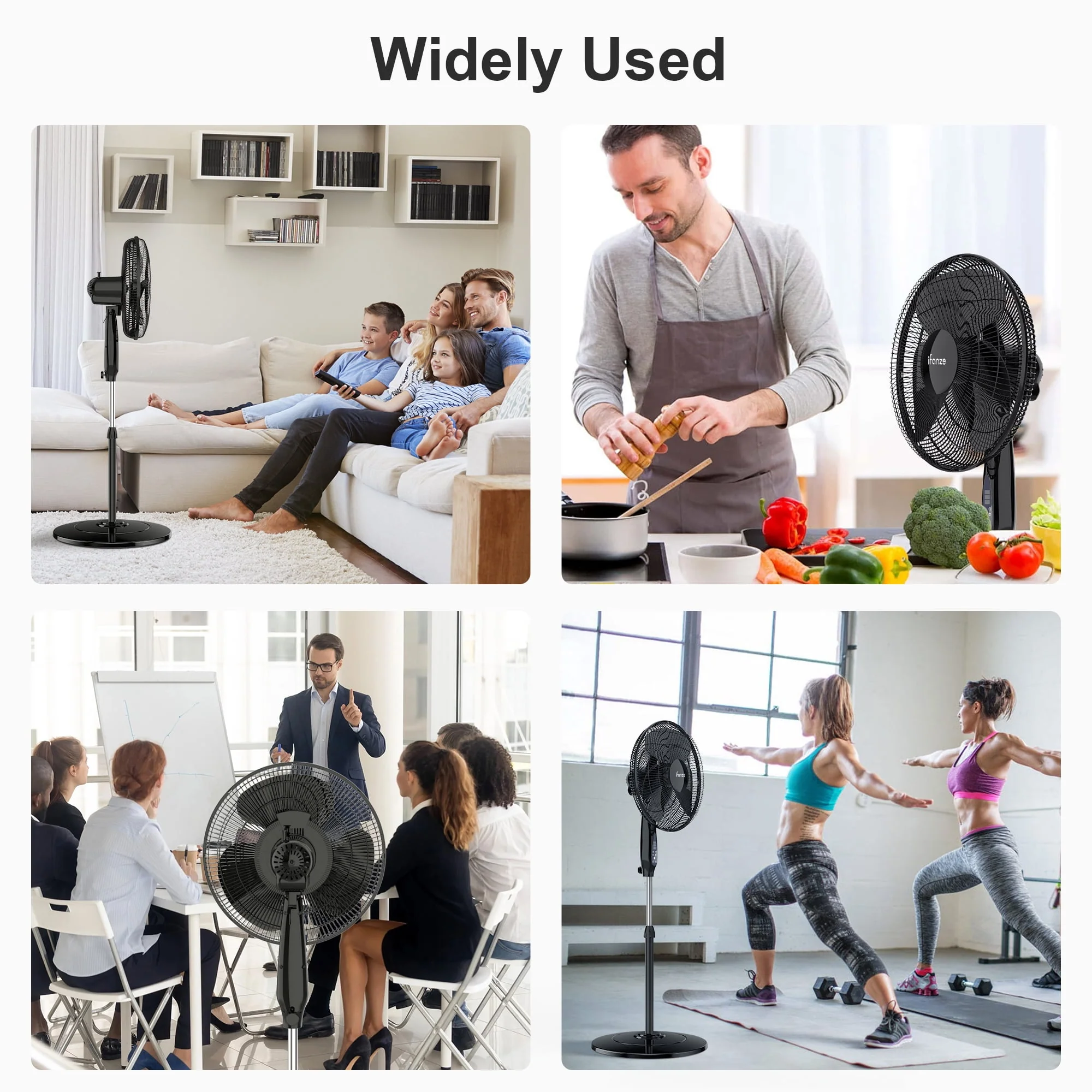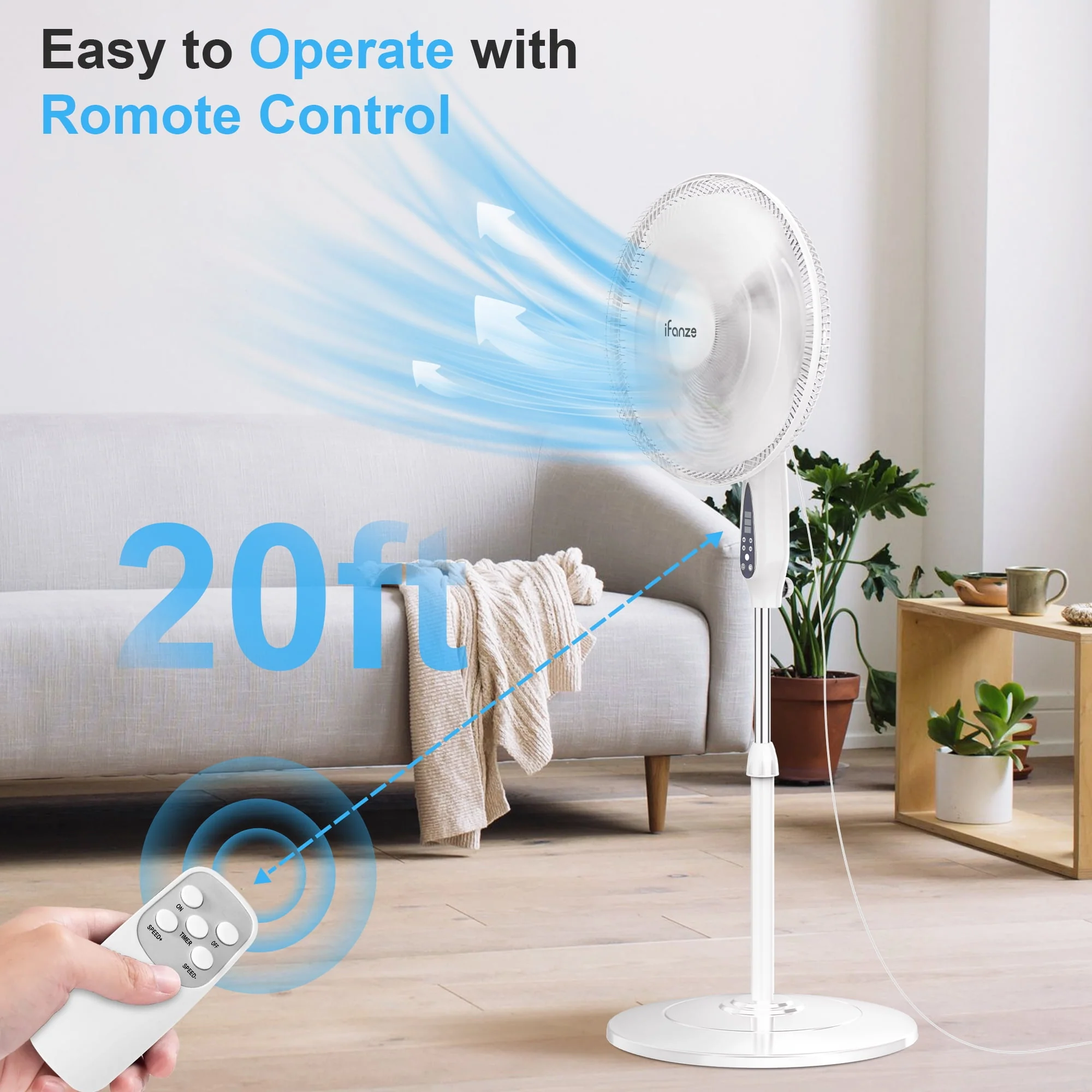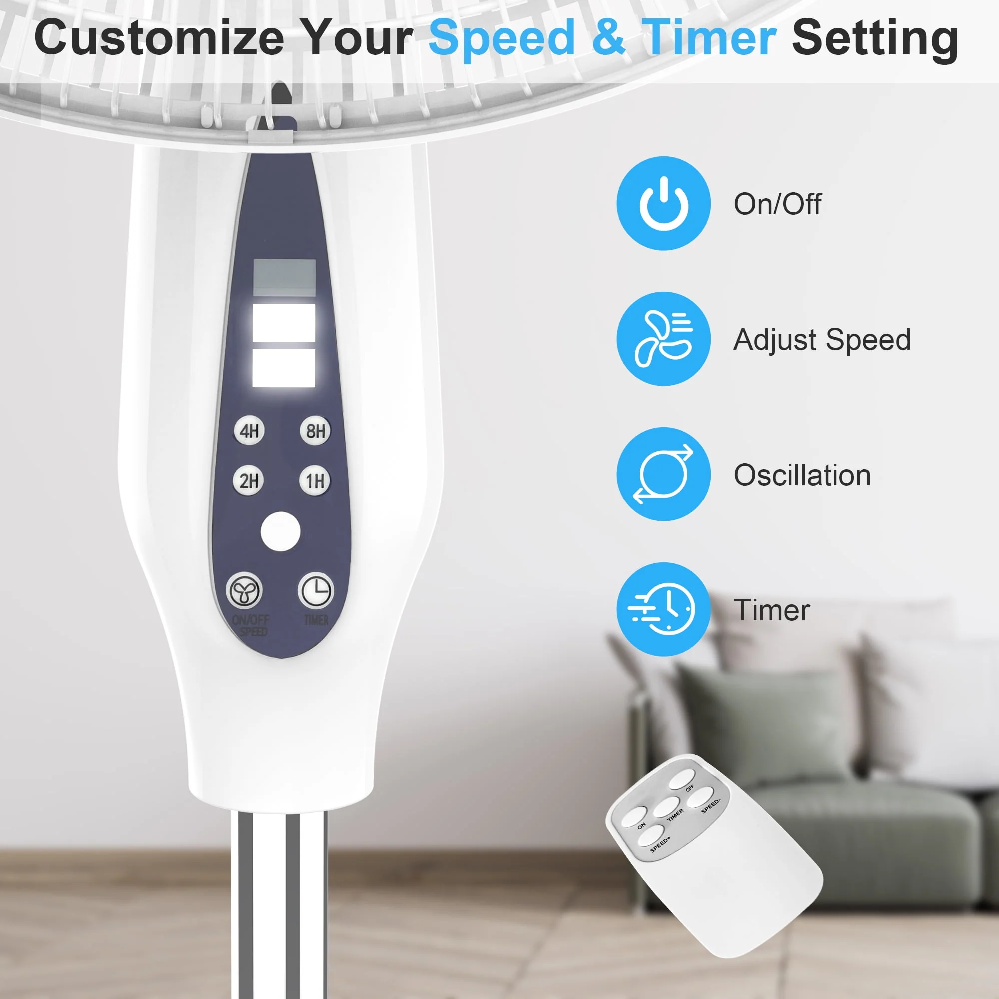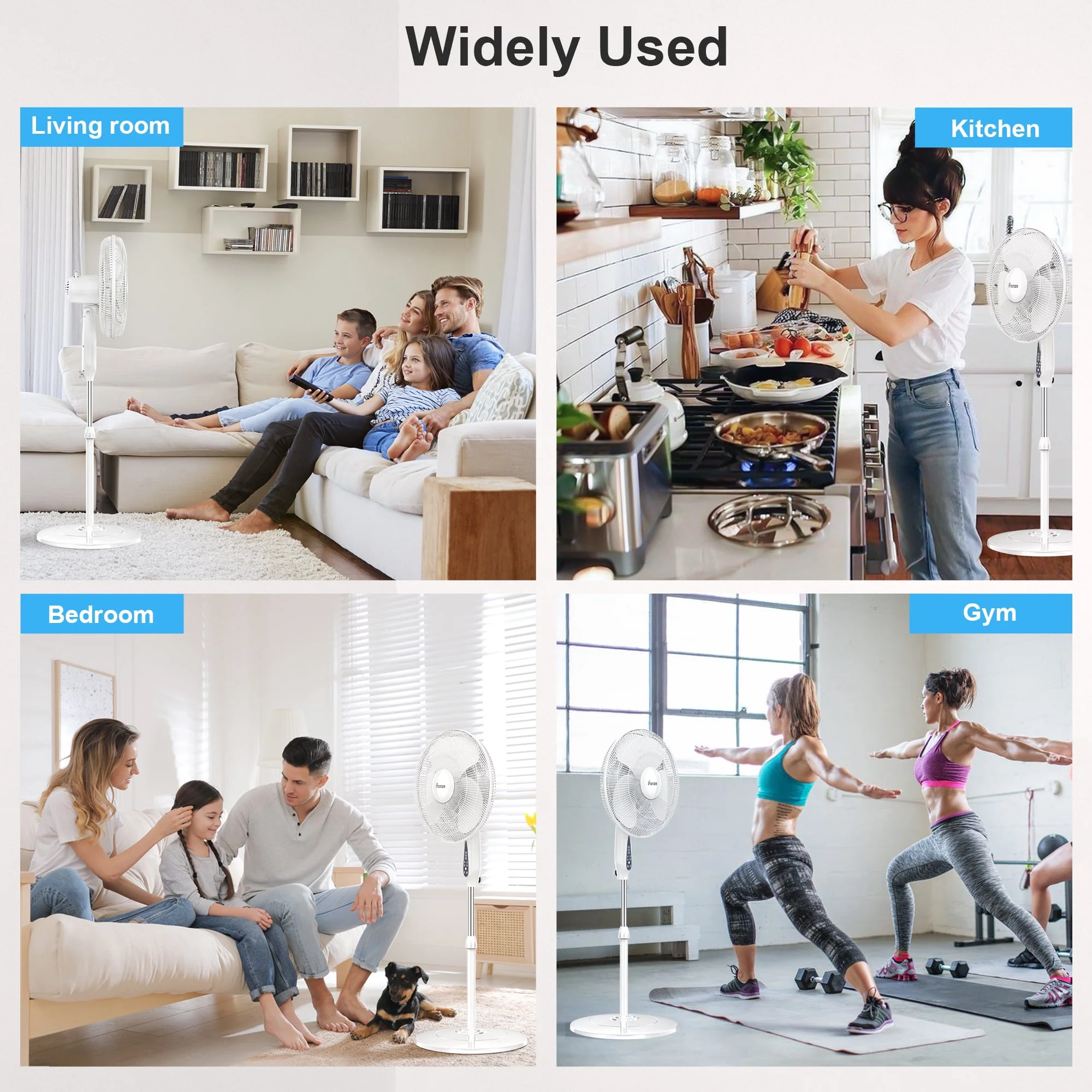 16'' Pedestal Oscillating Fan with Remote Control, Stand Up Fan Adjustable Height, 3-Speed, Electric Cooling Fans for Bedroom Home Office Use