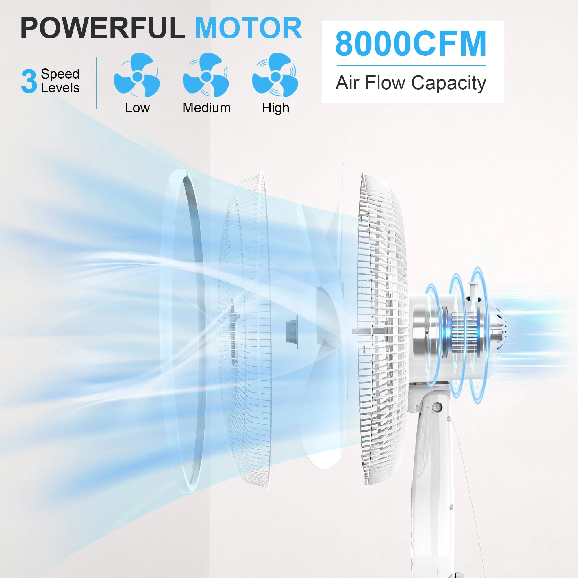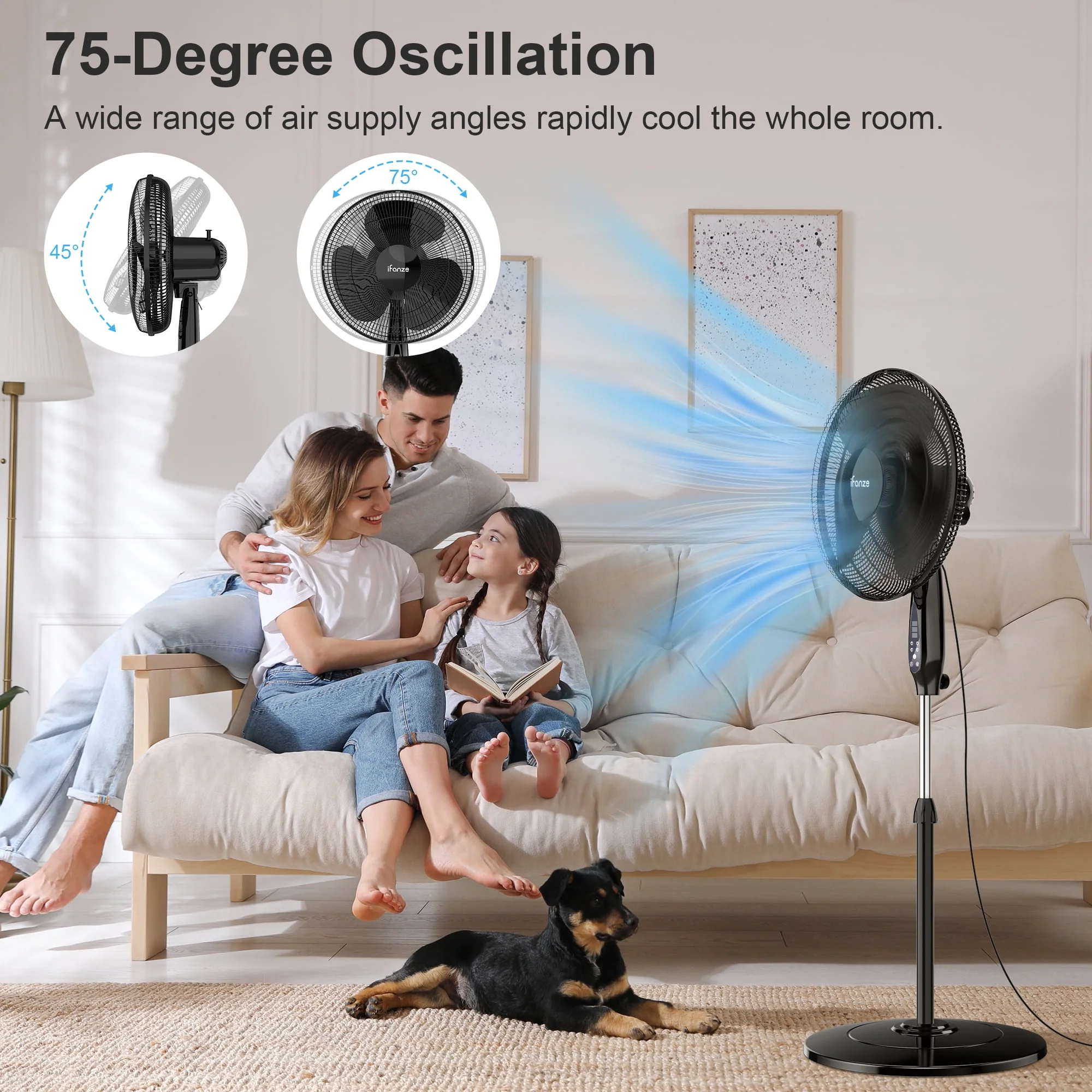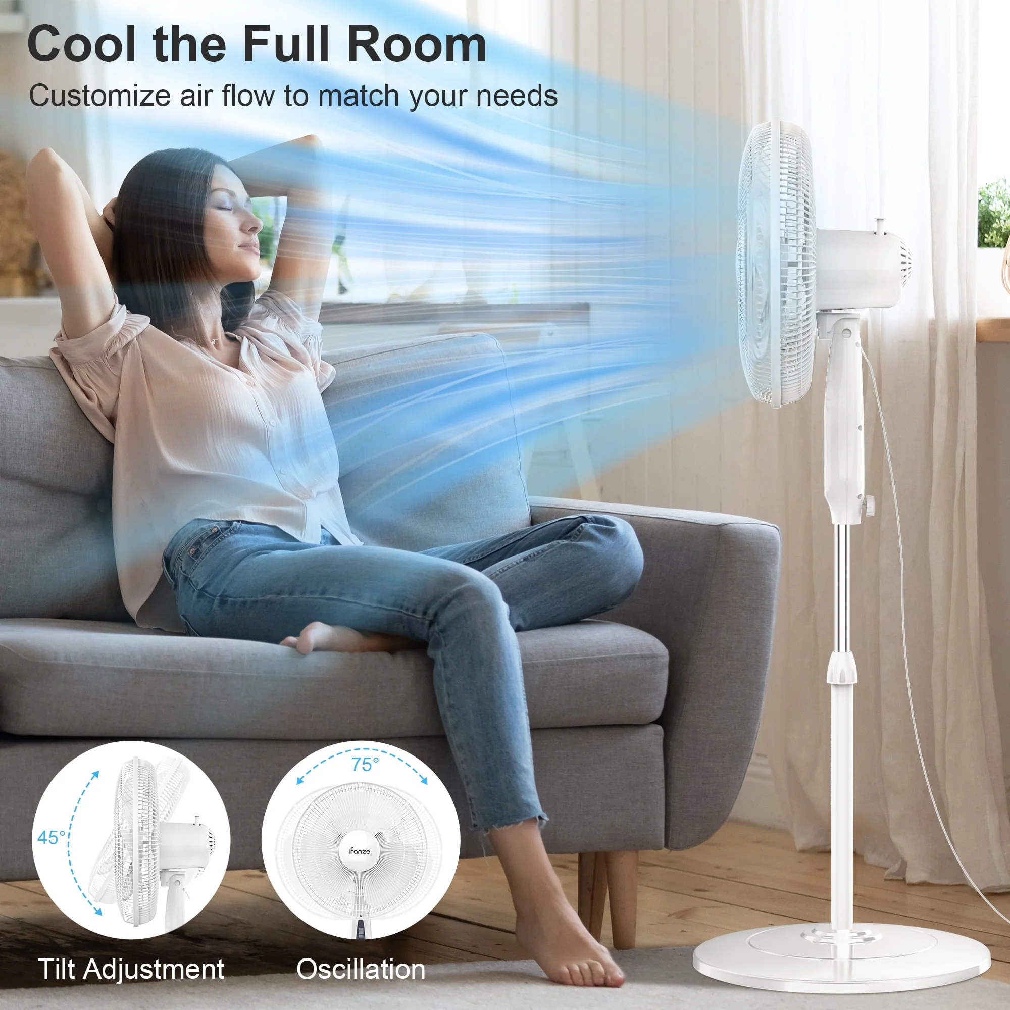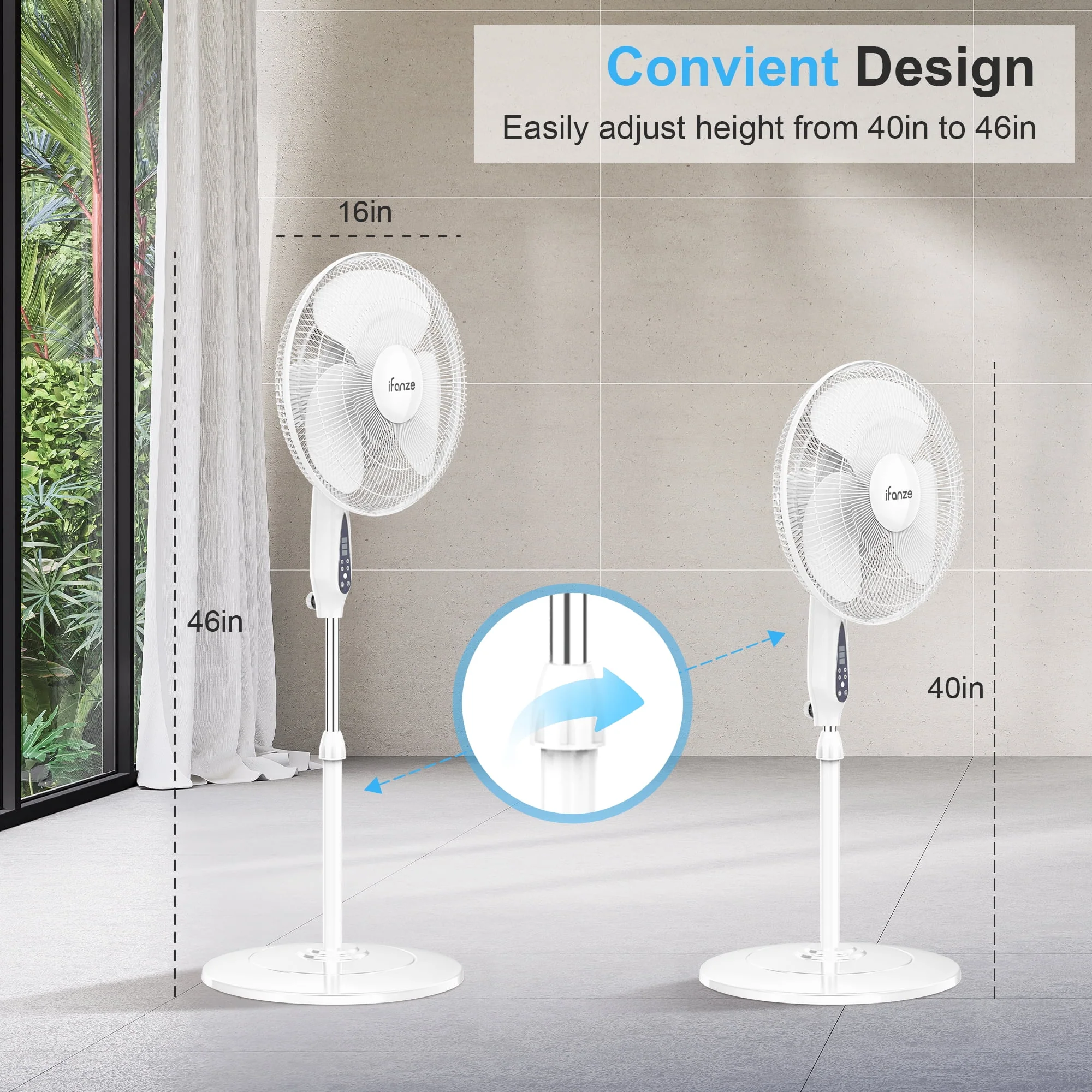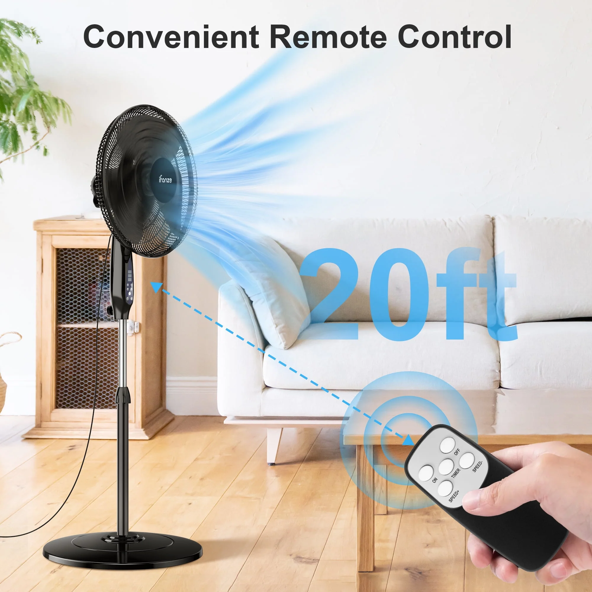16'' Pedestal Oscillating Fan with Remote Control, Stand Up Fan Adjustable Height, 3-Speed, Electric Cooling Fans for Bedroom Home Office Use