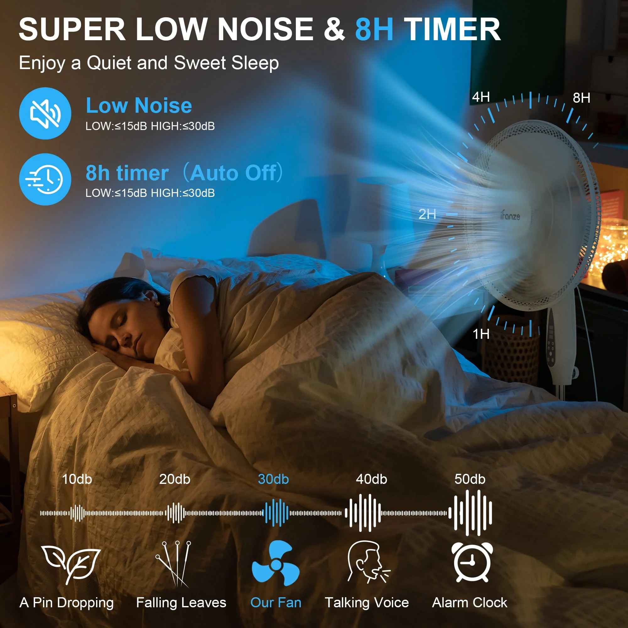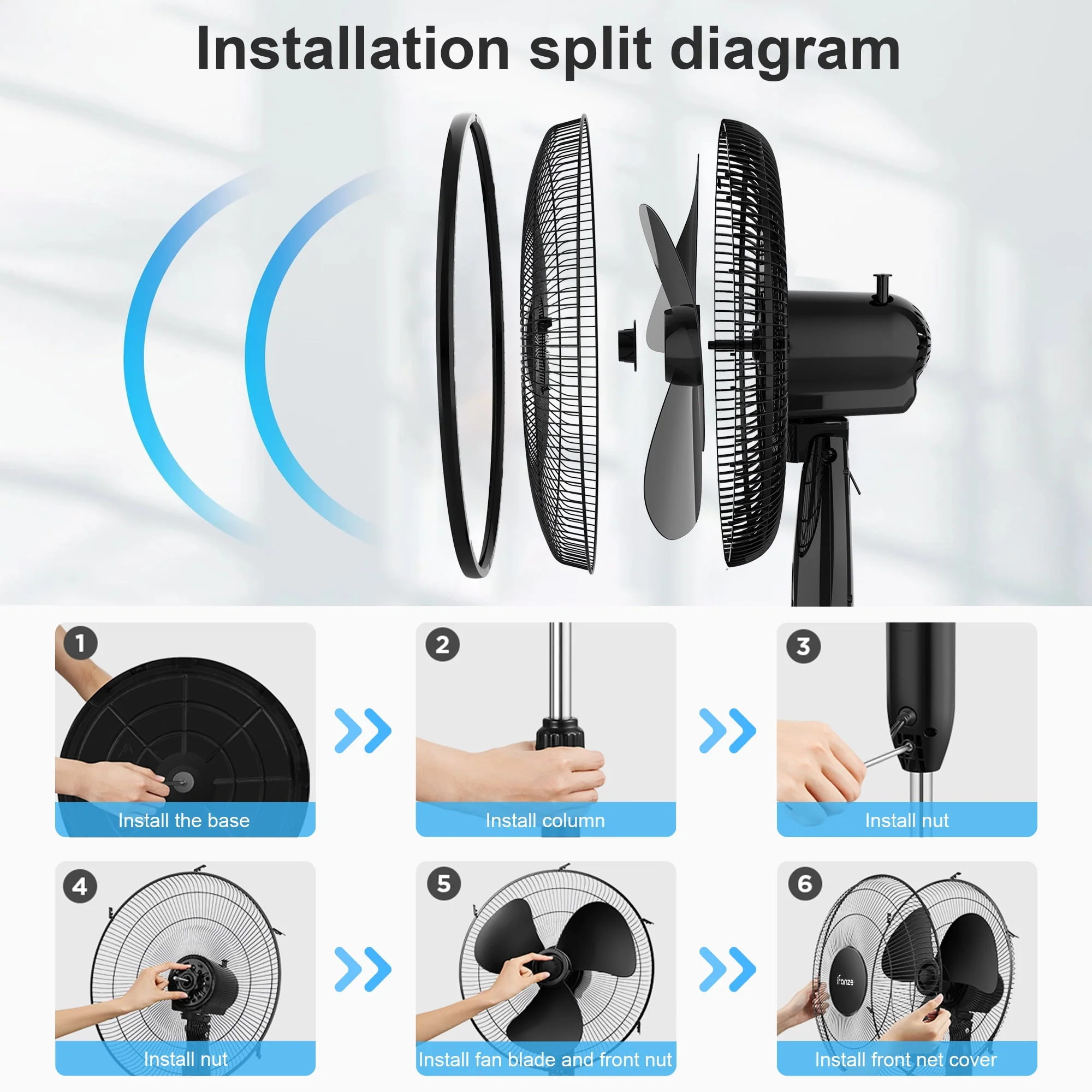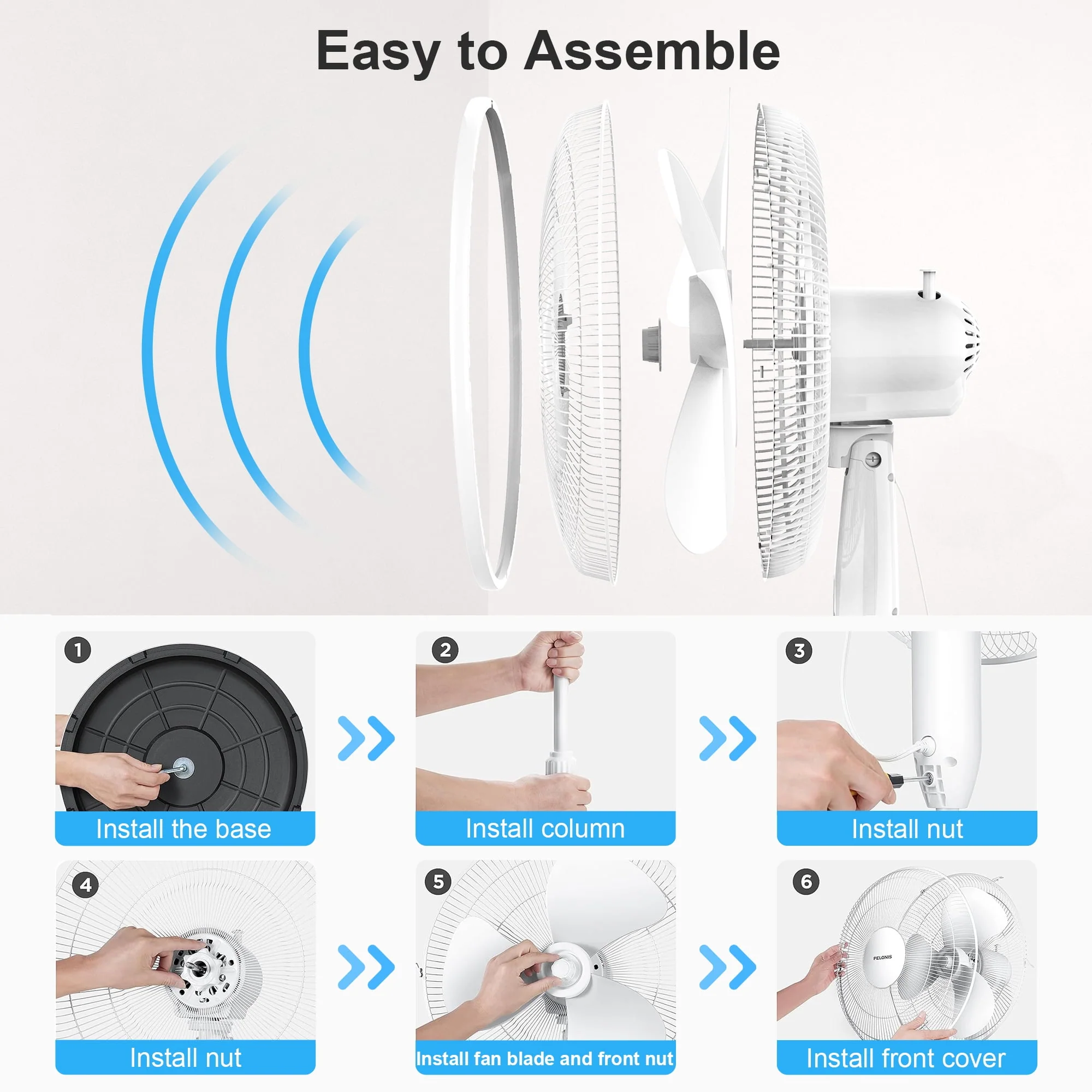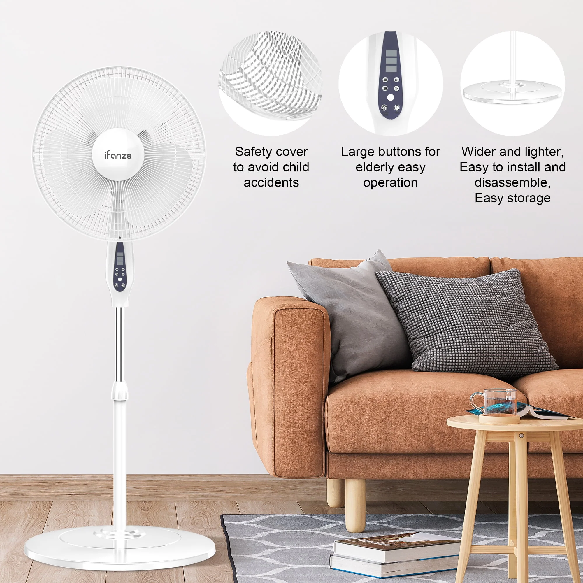 16'' Pedestal Oscillating Fan with Remote Control, Stand Up Fan Adjustable Height, 3-Speed, Electric Cooling Fans for Bedroom Home Office Use