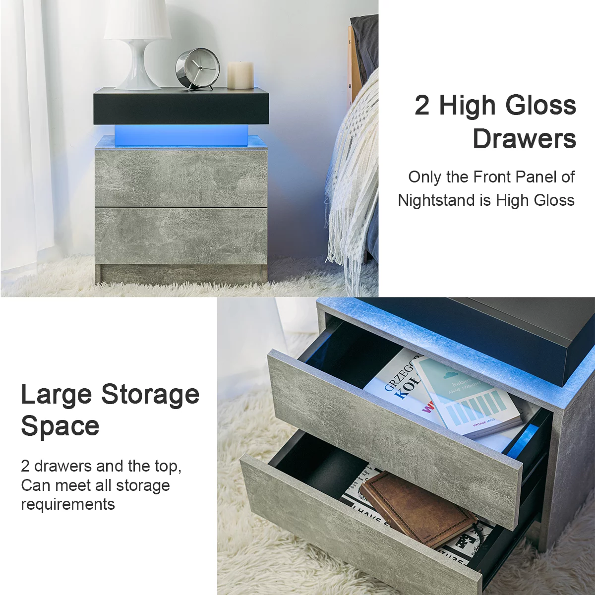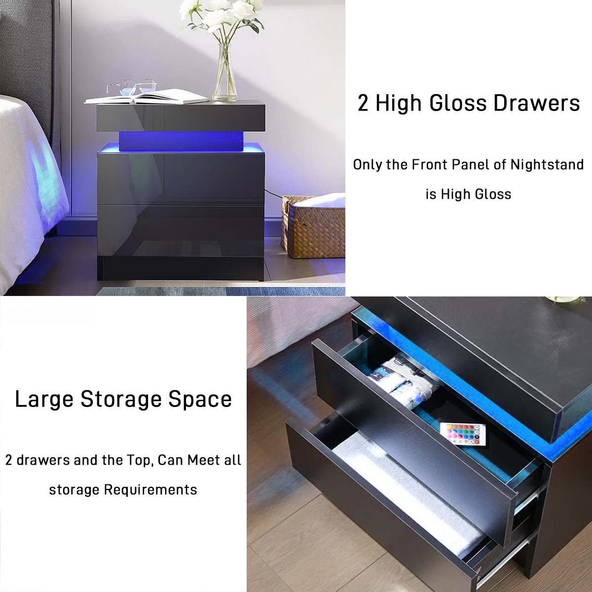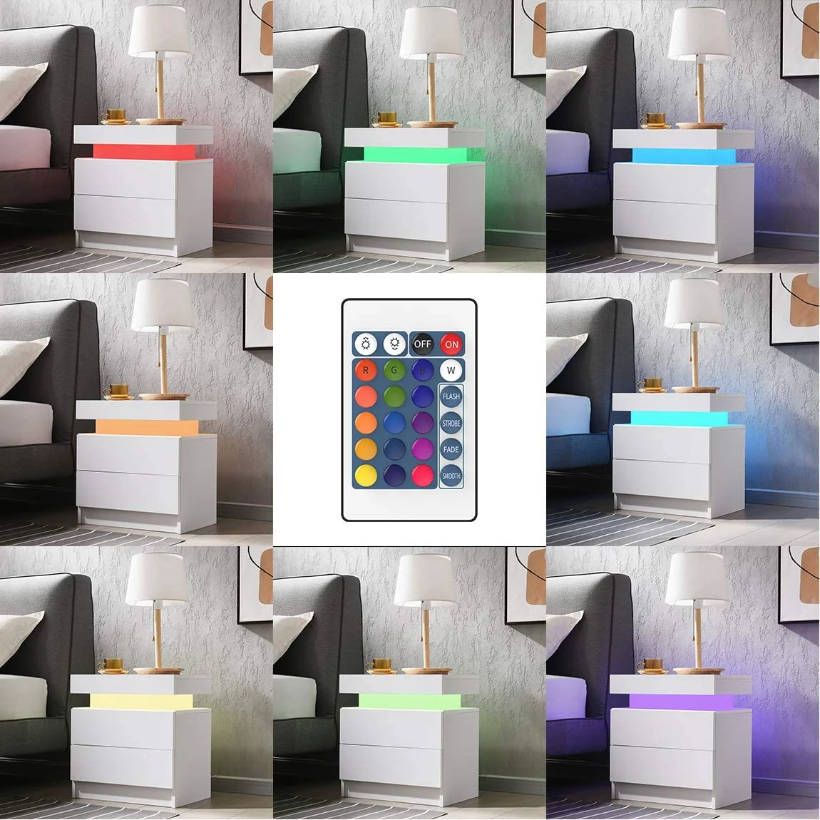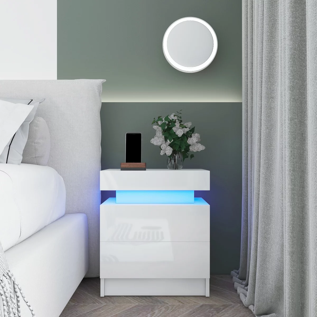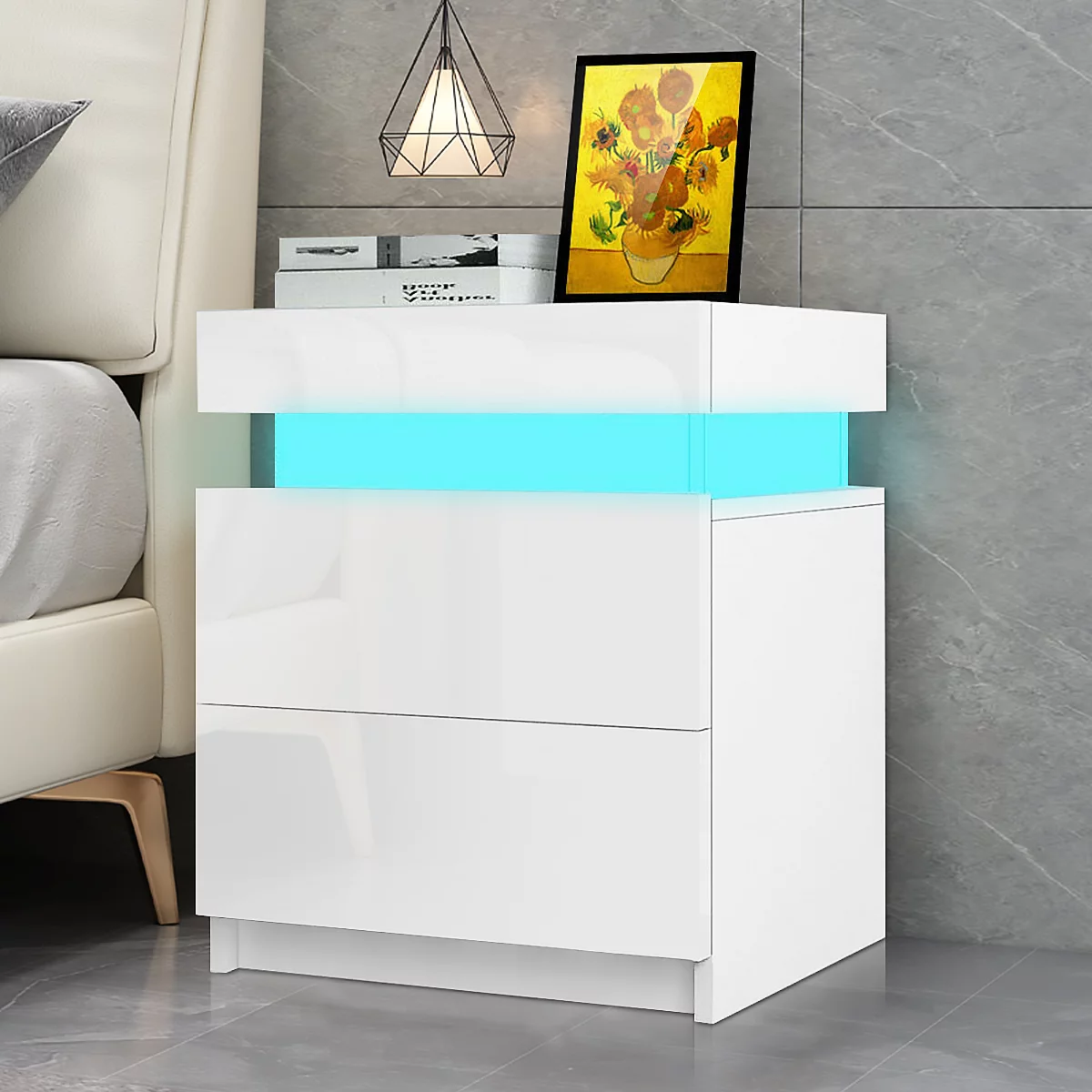 Hommpa 2 Drawer Modern Nightstand with RGB LED Light High Gloss Bedside Tables for Bedroom White