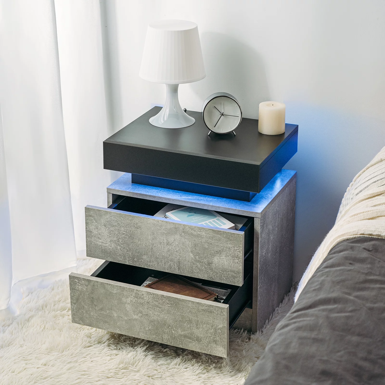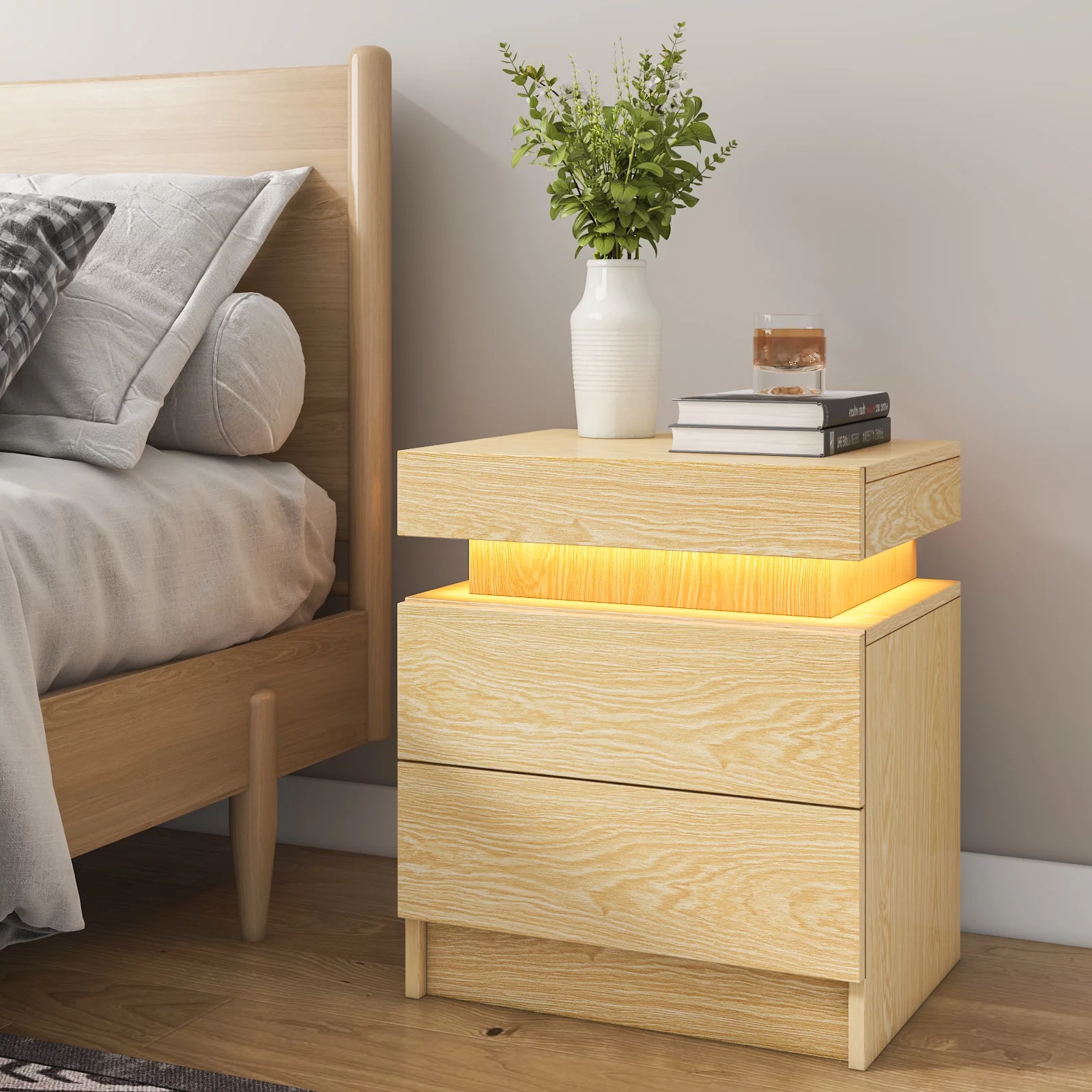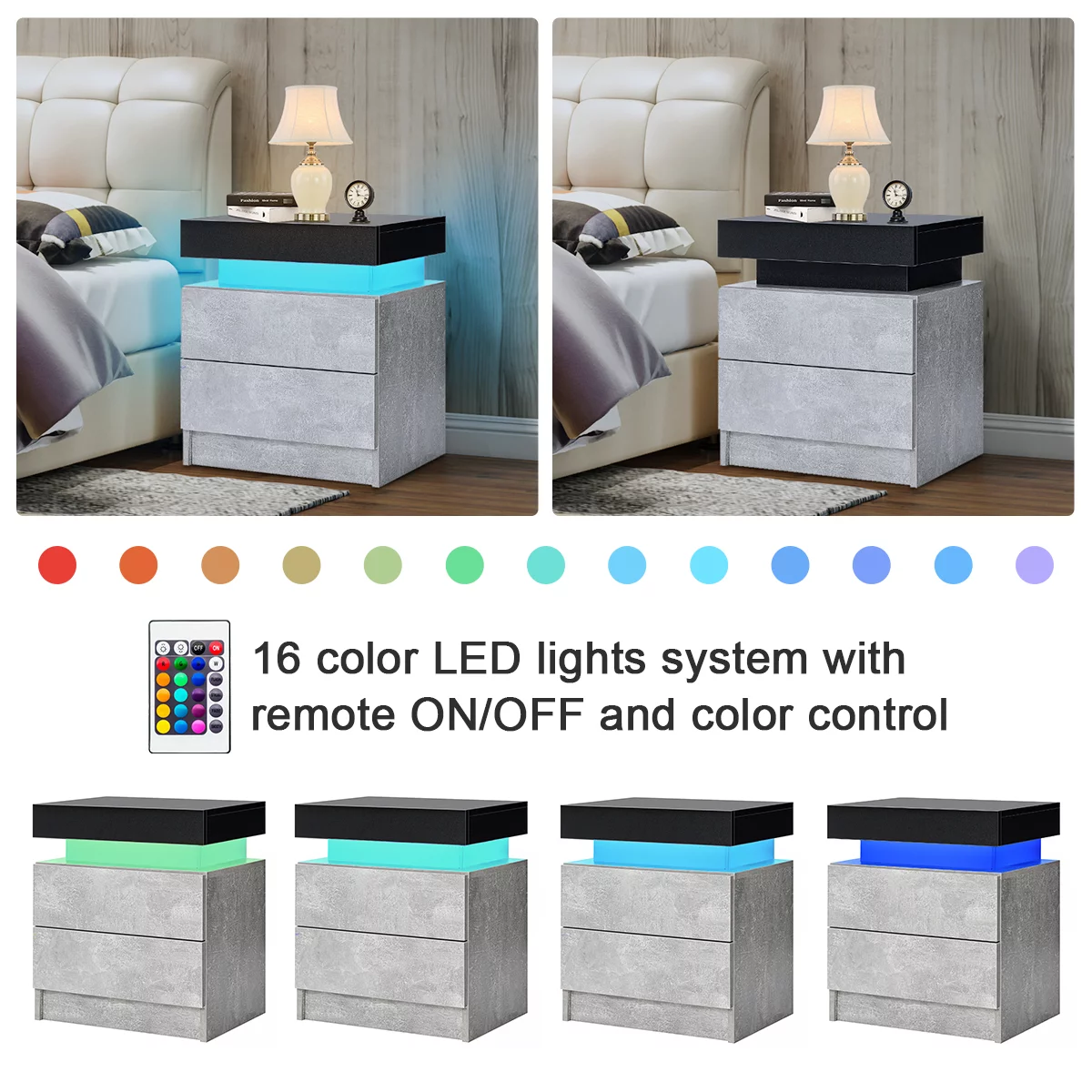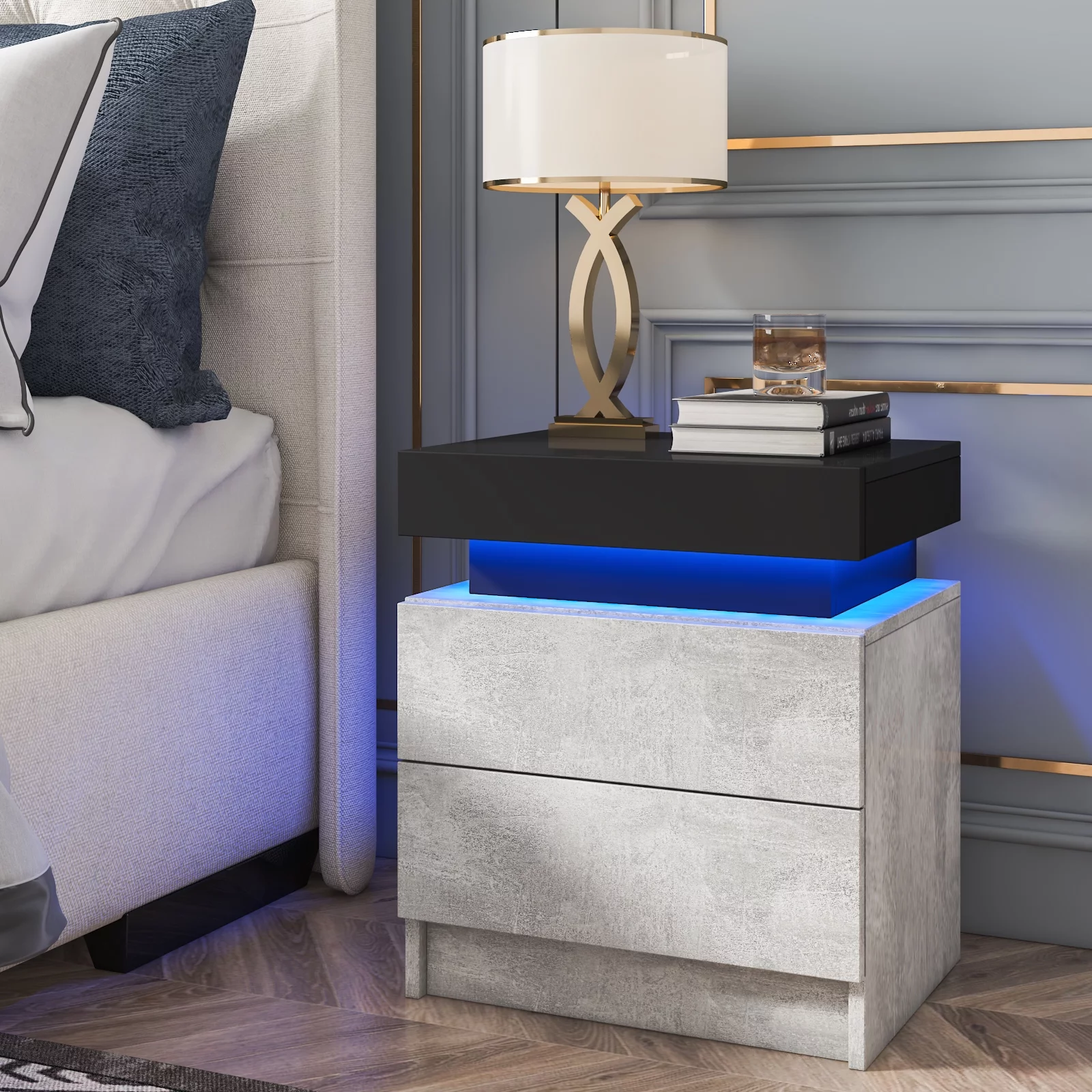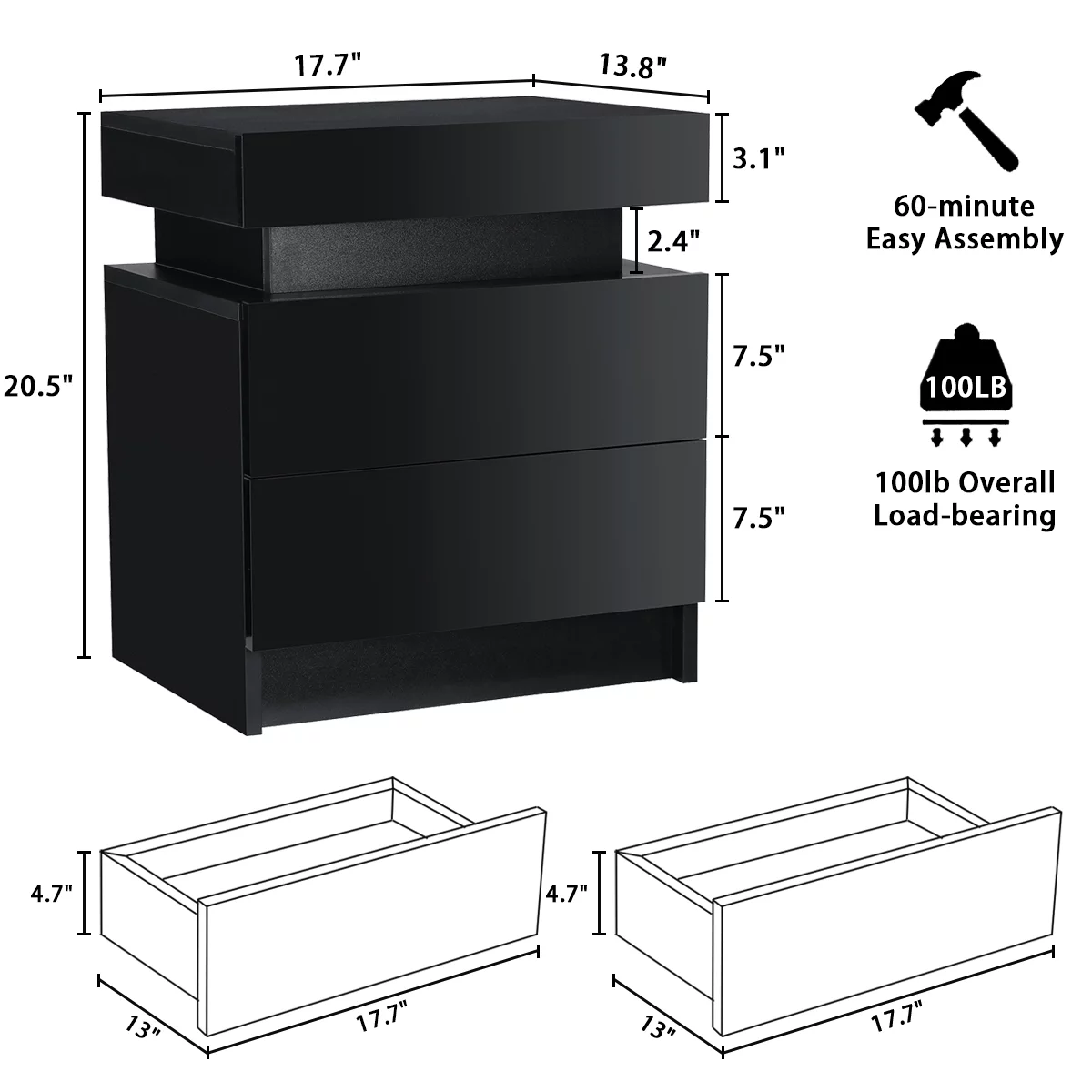 Hommpa 2 Drawer Modern Nightstand with RGB LED Light High Gloss Bedside Tables for Bedroom White