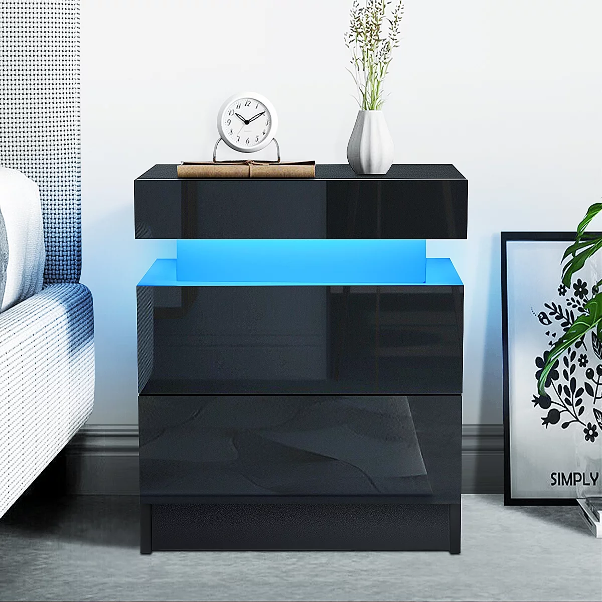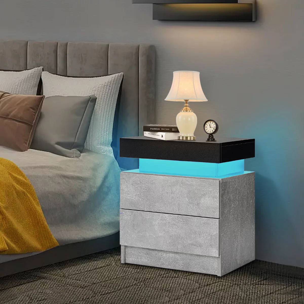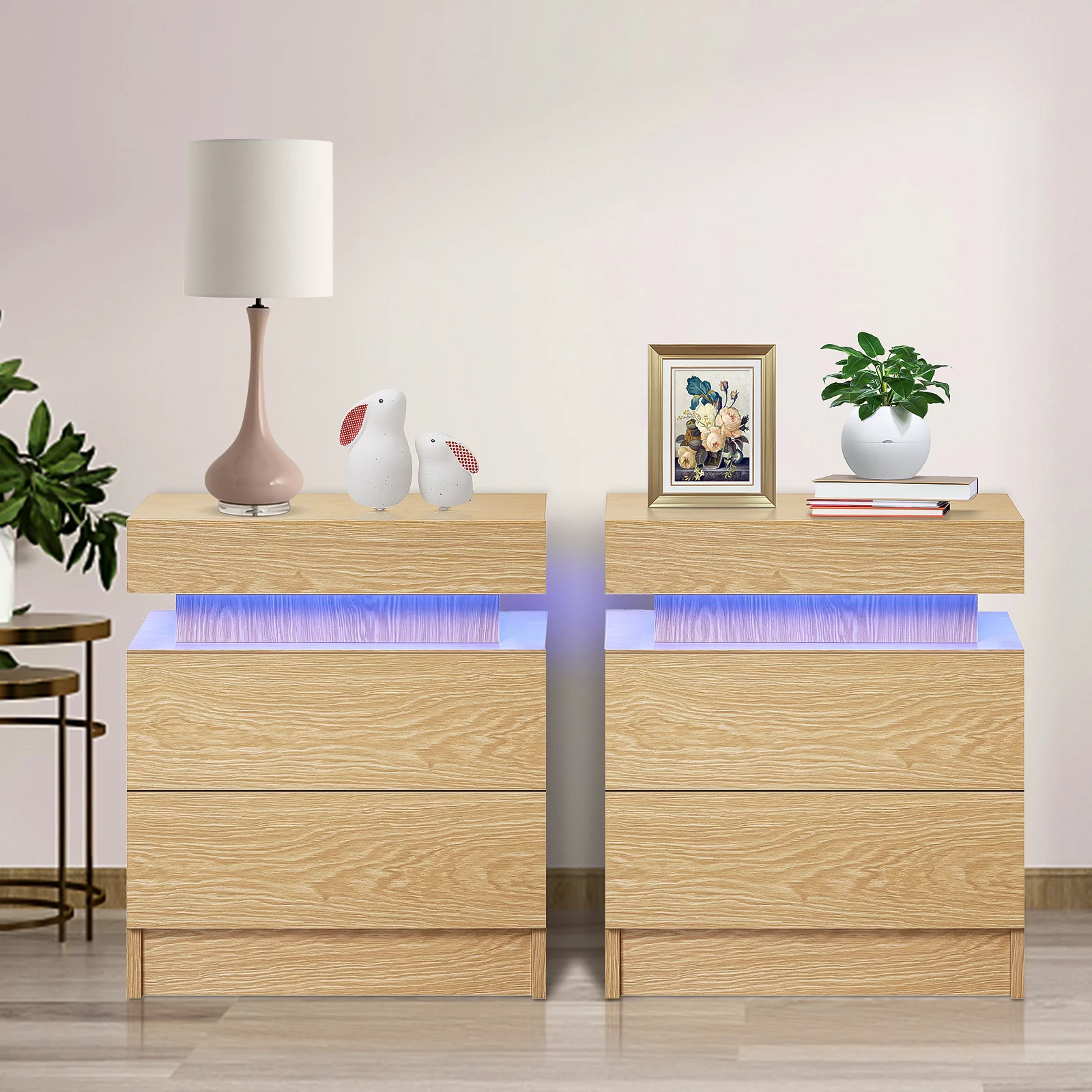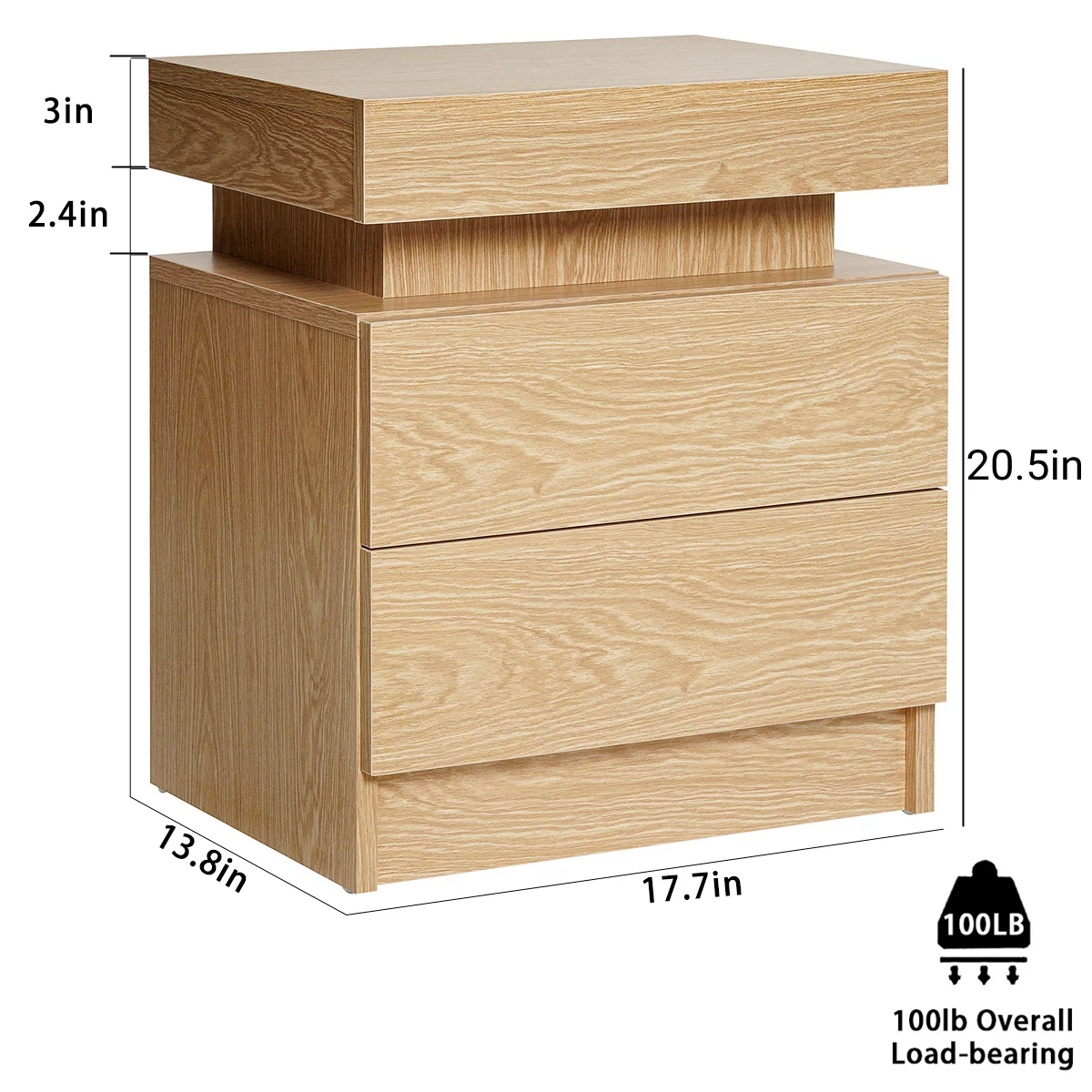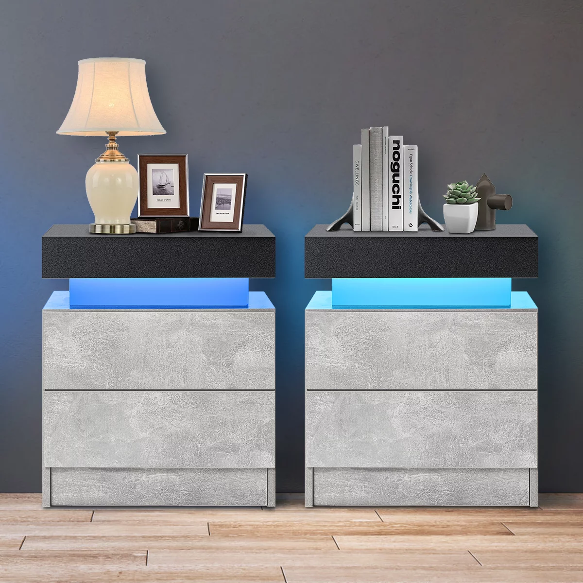 Hommpa 2 Drawer Modern Nightstand with RGB LED Light High Gloss Bedside Tables for Bedroom White