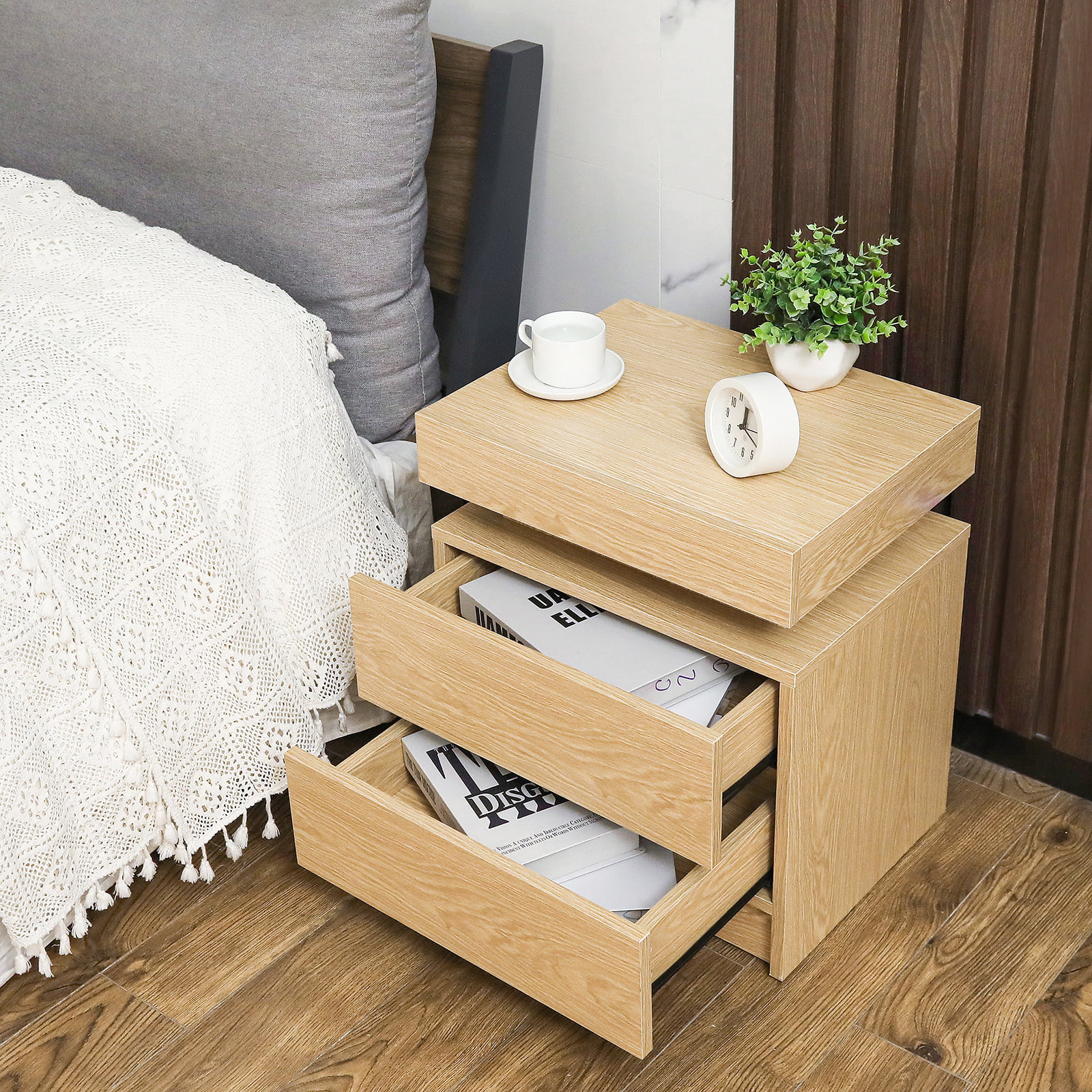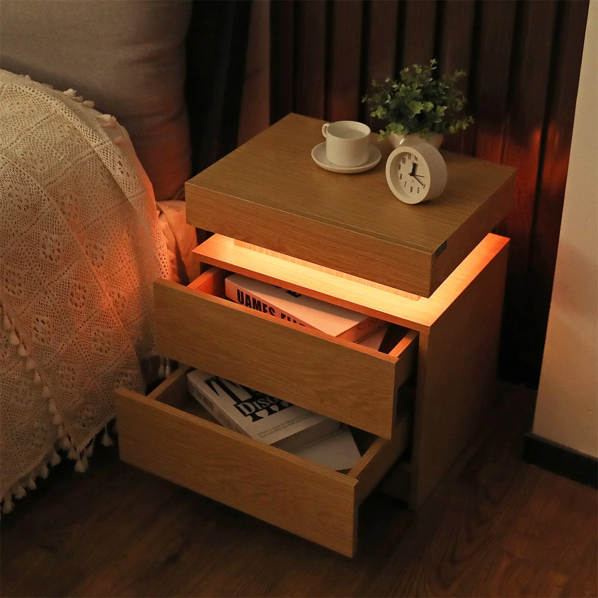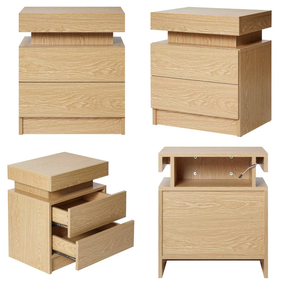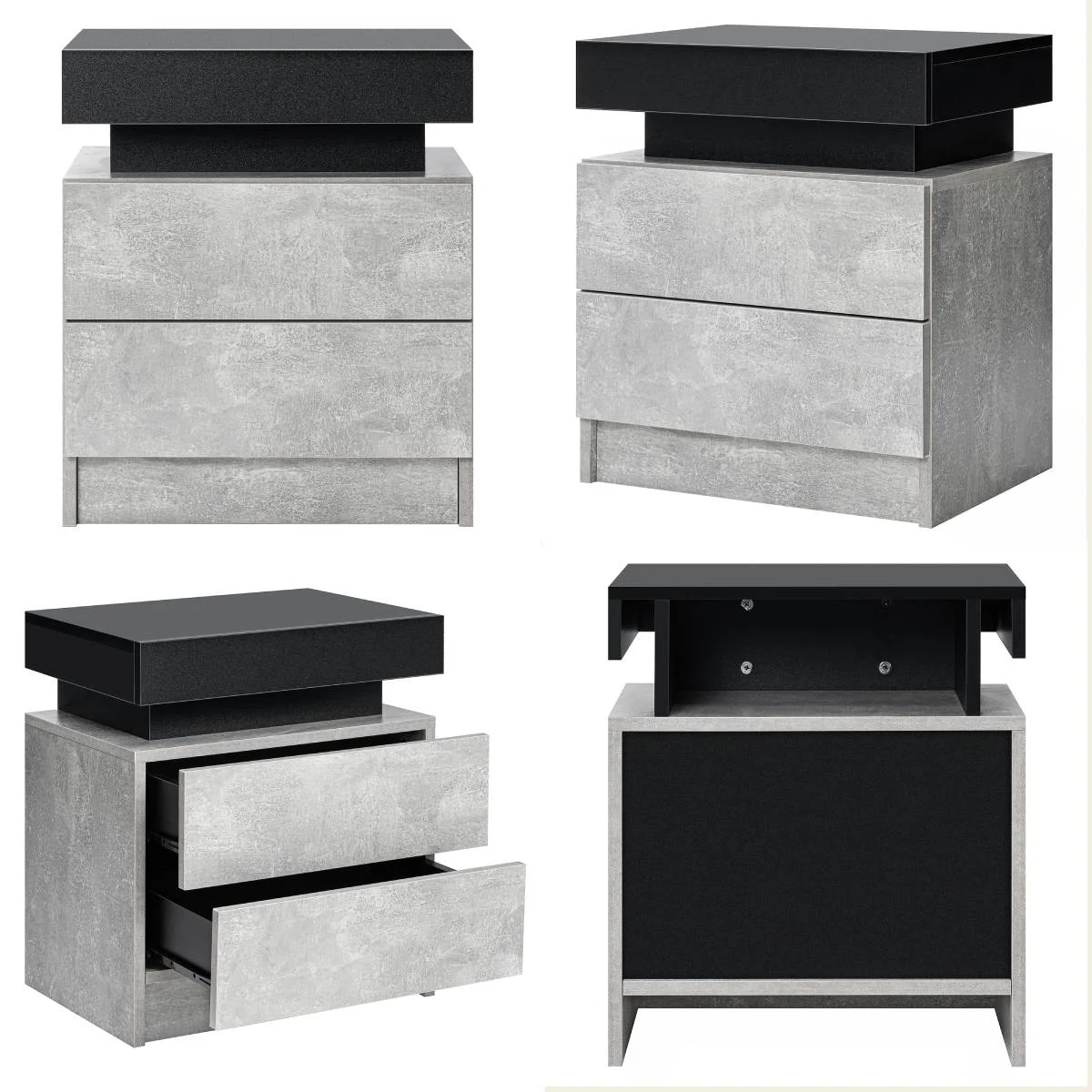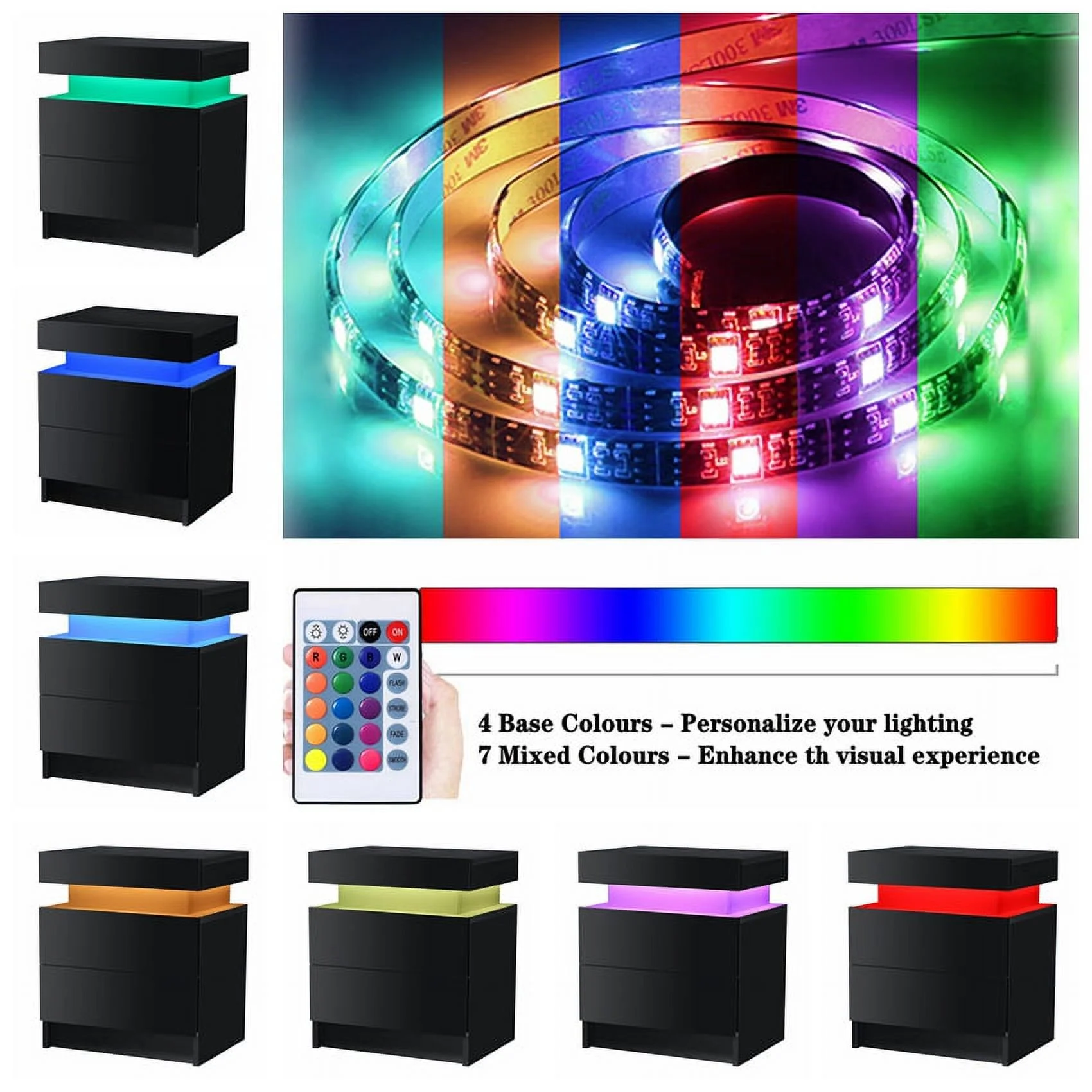 Hommpa 2 Drawer Modern Nightstand with RGB LED Light High Gloss Bedside Tables for Bedroom White
