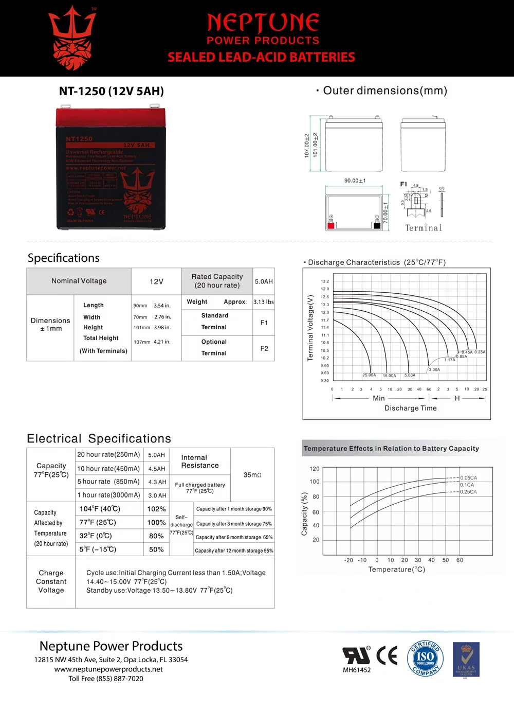 Ultra Tech IM-1240 12V 5Ah SLA Replacement Lawn Mower Battery by Neptune