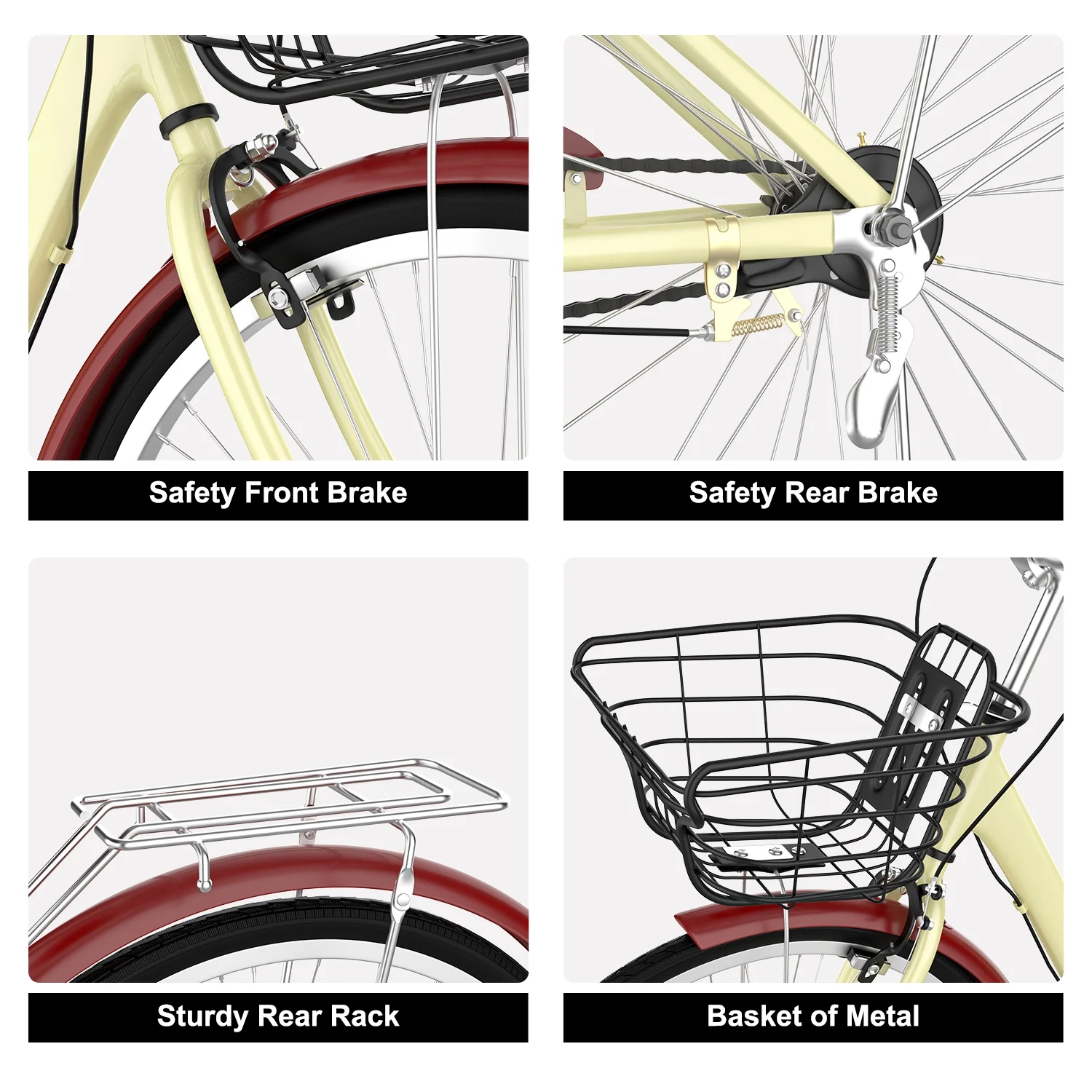 ARVAKOR 26 Inch Women Bike, Classic Bicycle Retro Bicycle, Cruiser Bike, Beige