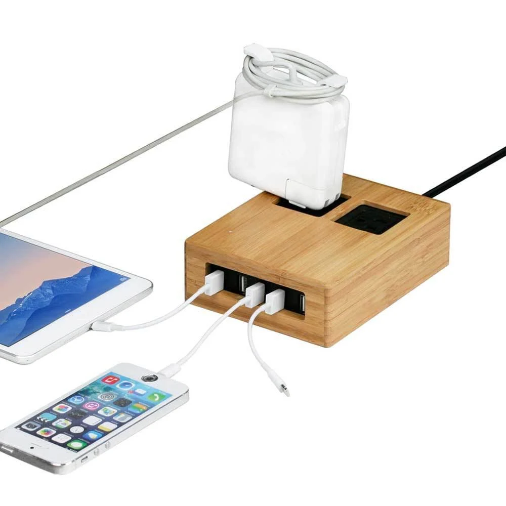 Usb+ac Power Hub with Eco-Friendly Bamboo Cover - Avayadevconnect