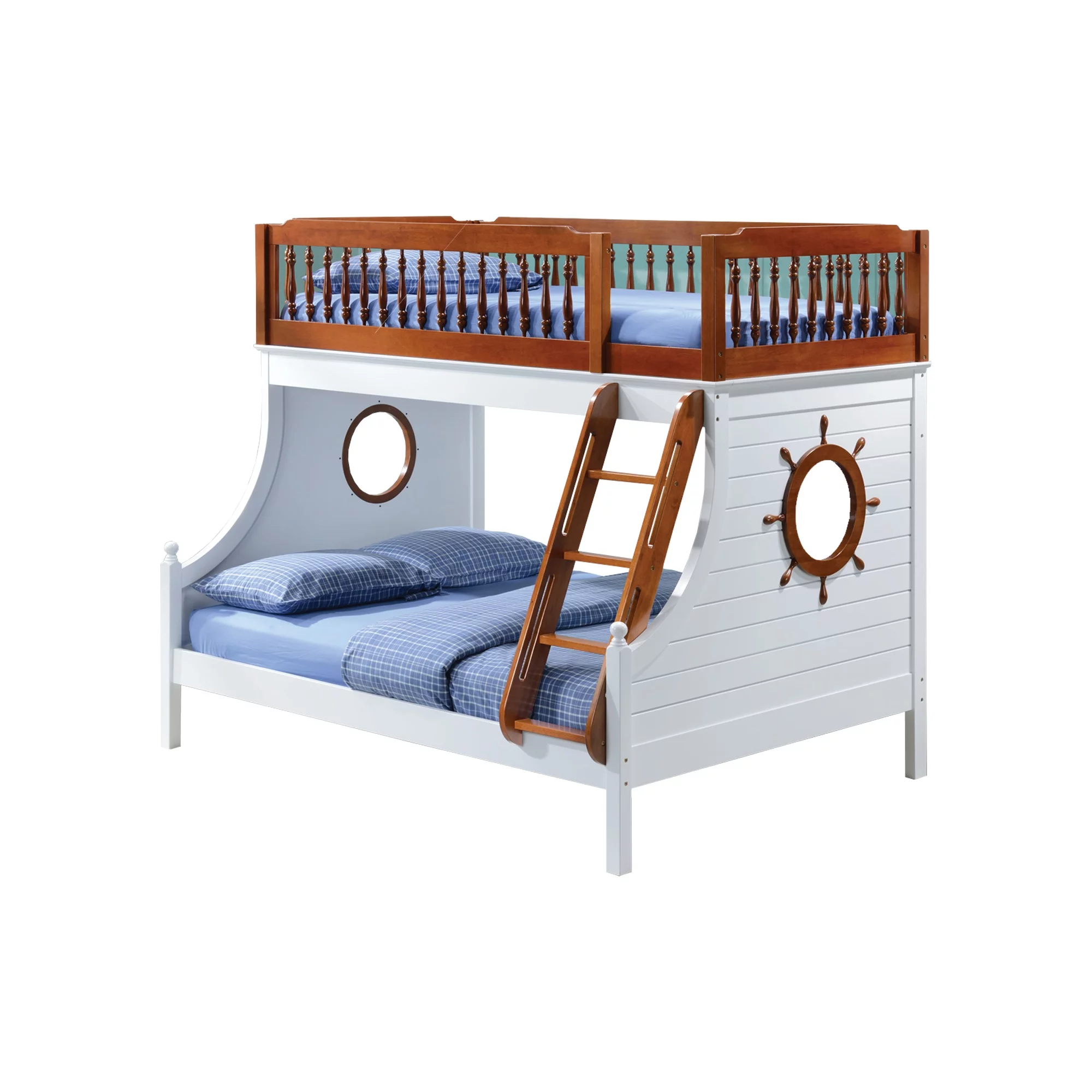 Nautical Wooden Twin/Full Bunk Bed. Oak Brown & White