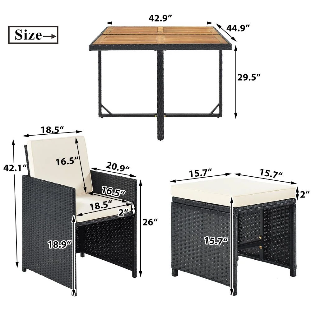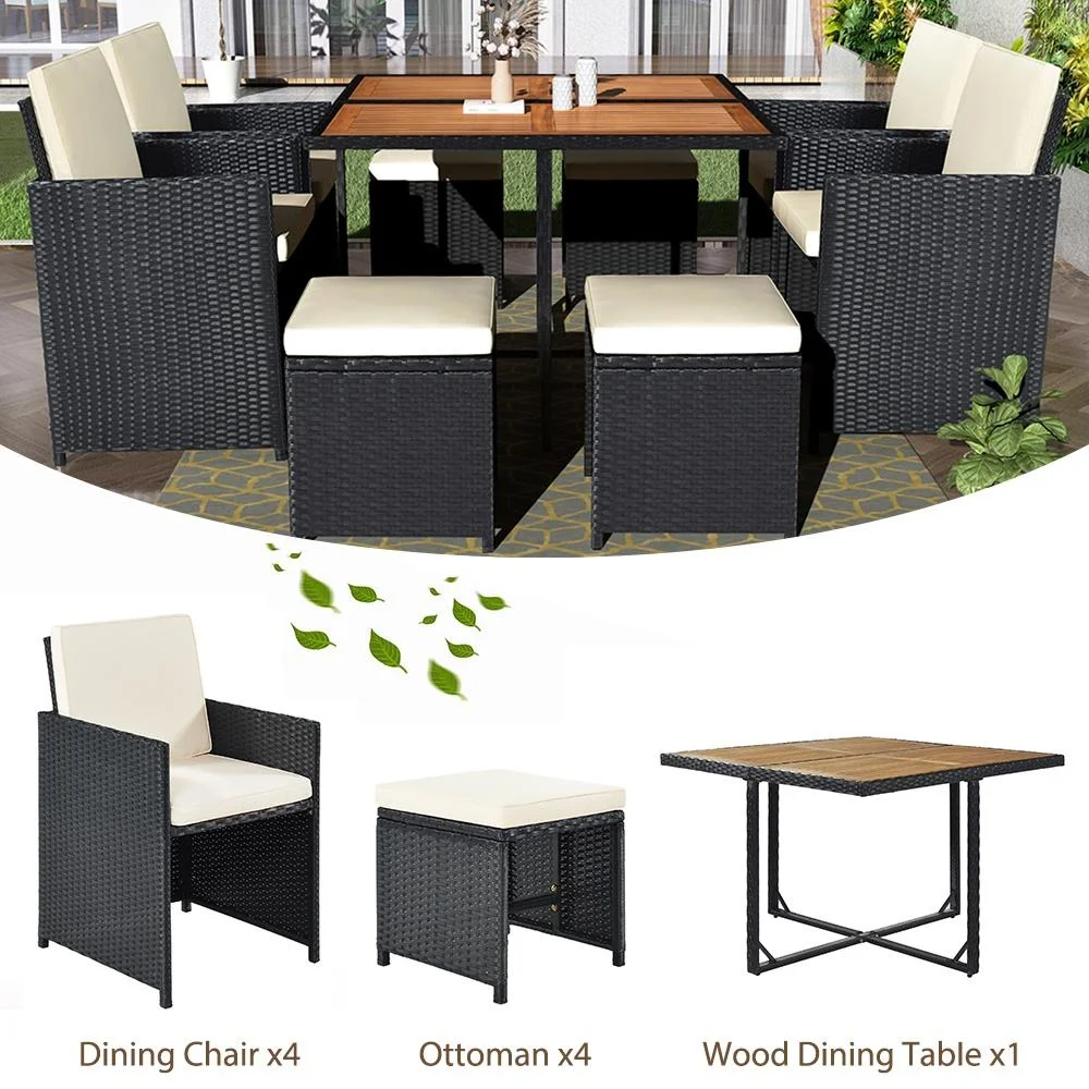 Clearance! 9 Piece Patio Furniture Dining Set, Outdoor Rattan Wicker Patio Dining Table Set, All-Weather Conversation Set with Ottoman for Garden Poolside Balcony, B177
