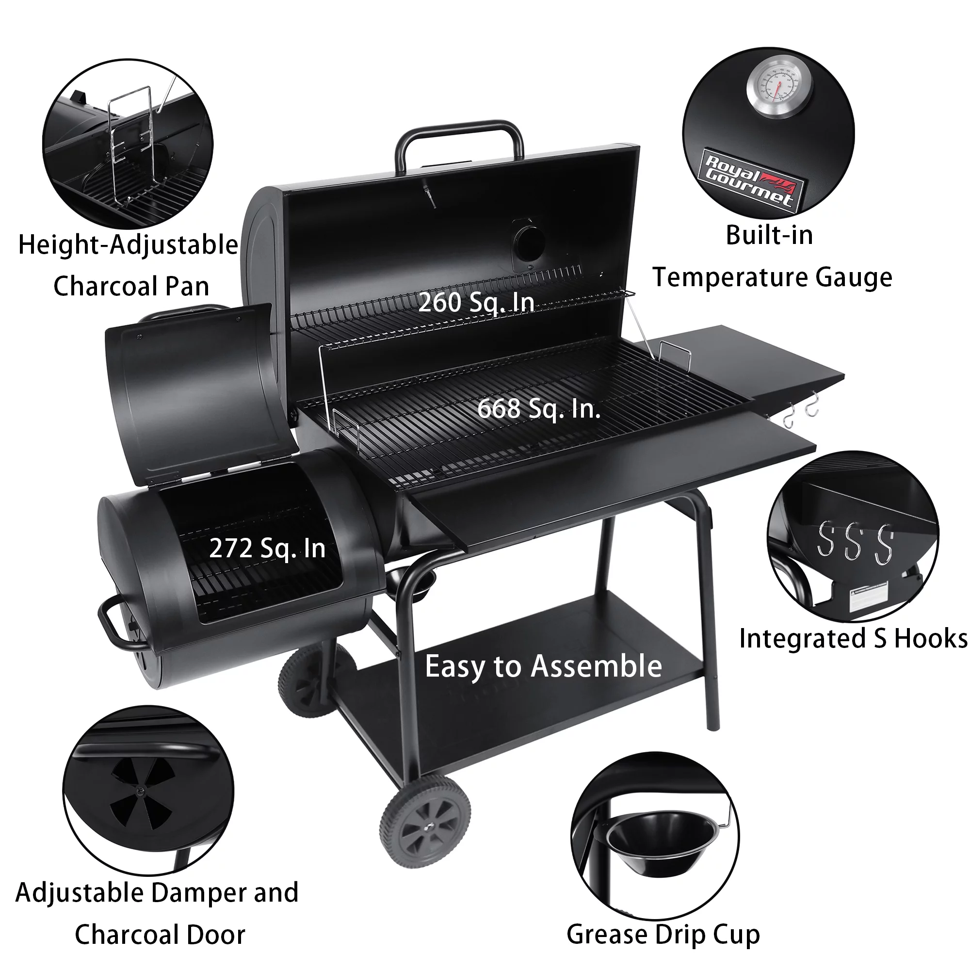 Royal Gourmet CC2036F 36 Charcoal Barrel Grill with Offset Smoker
