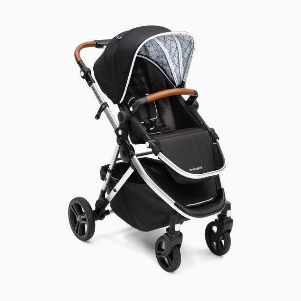 Mockingbird Single Stroller in Black/Windowpane Canopy/Brown Leather - Megean