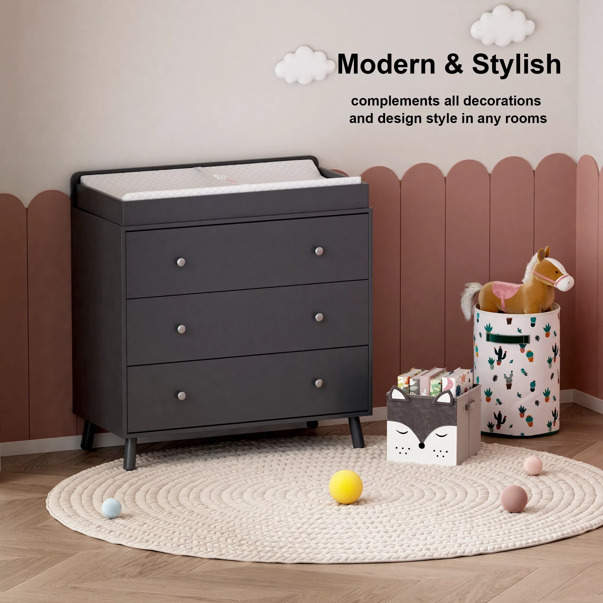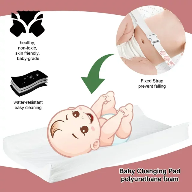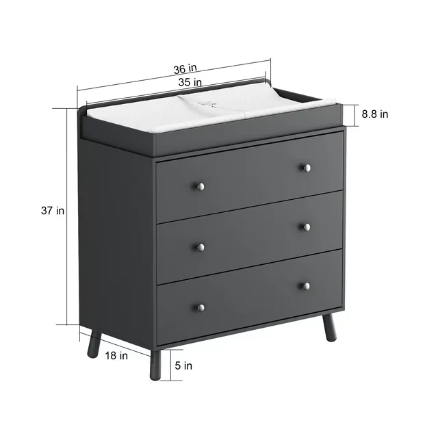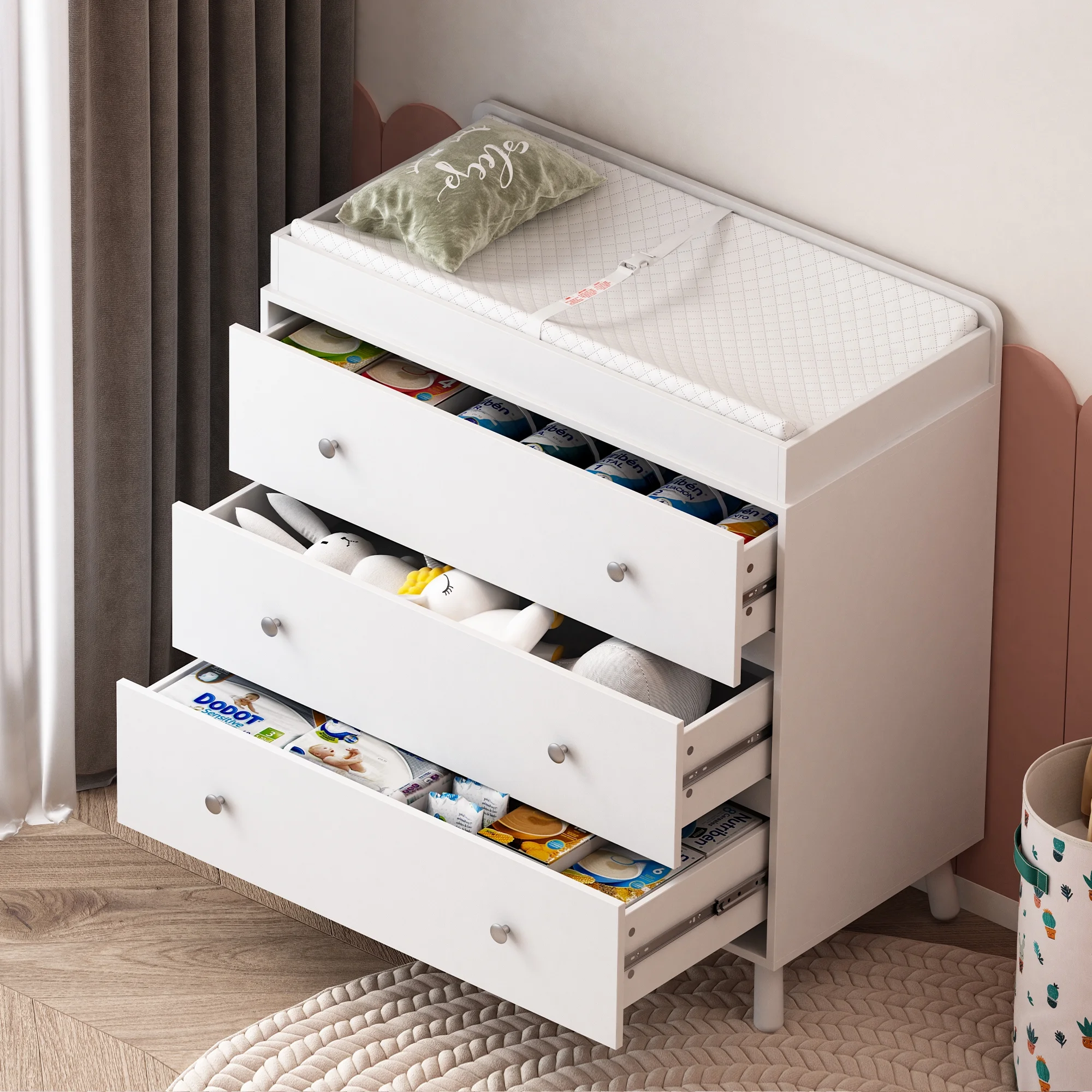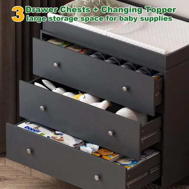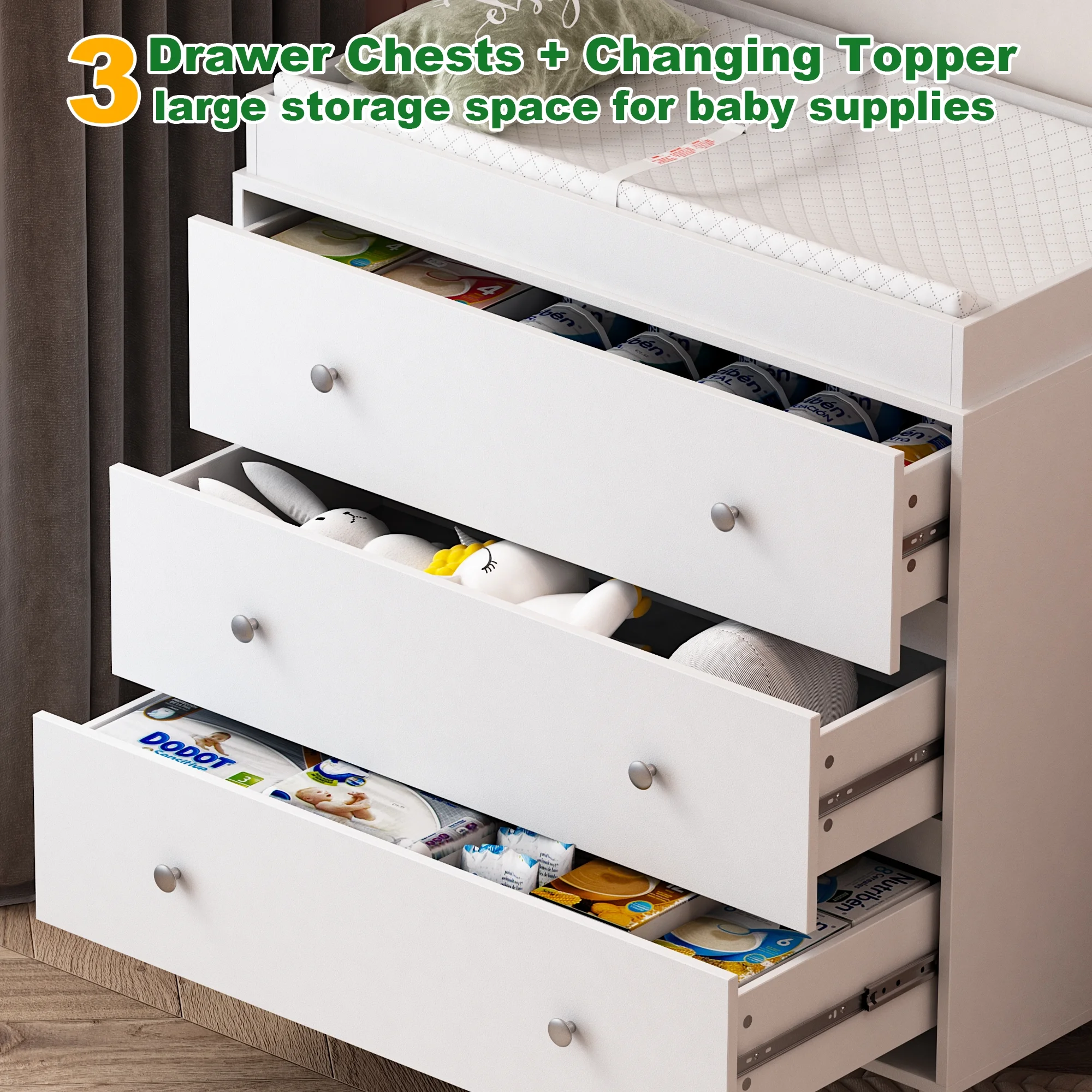 Changing Table,3 Drawers Storage Dresser with Removable Pad,Baby Changing Table Safety Rail and Strap for Bedroom, Nursery,White