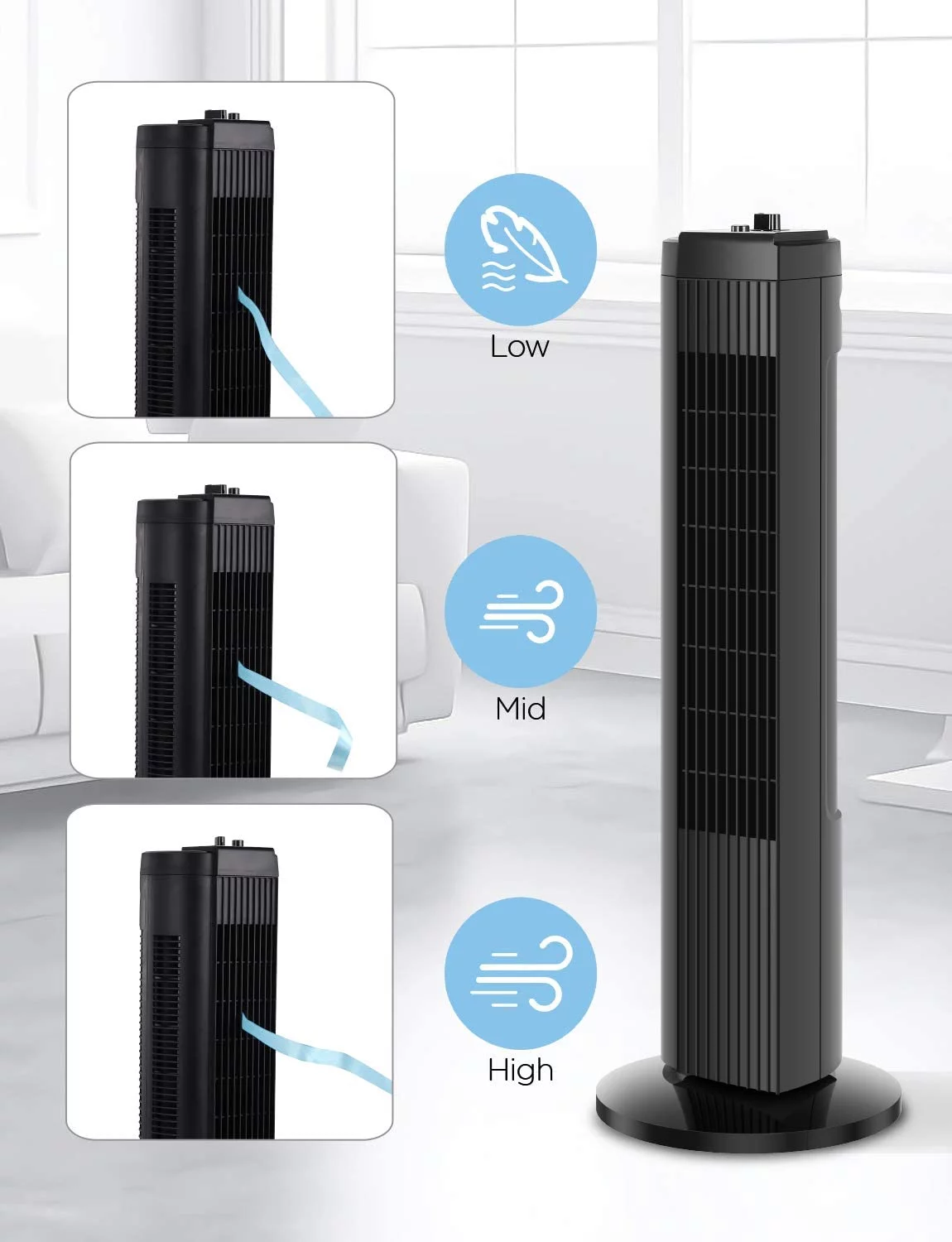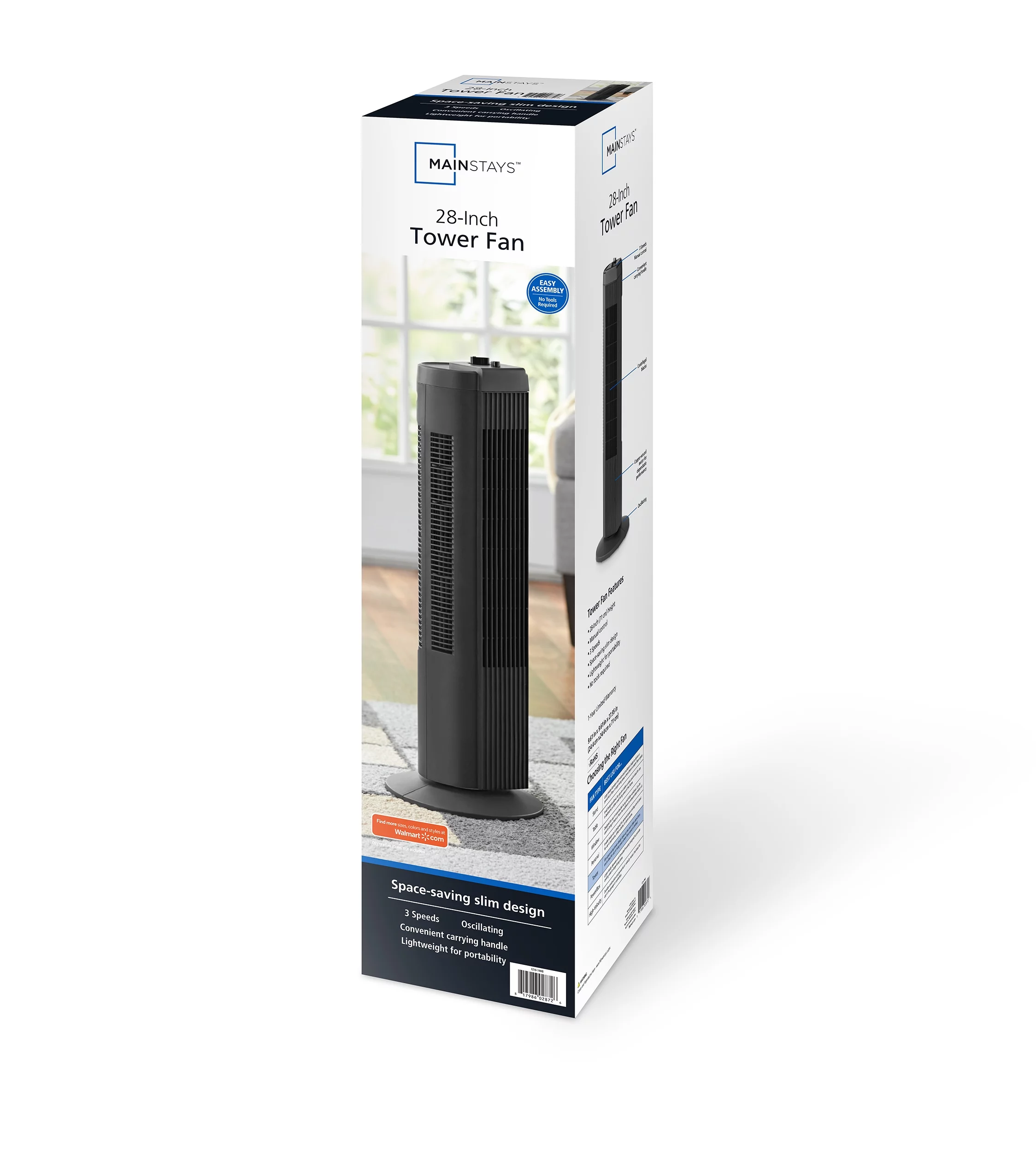 Mainstays 28-inch 3-Speed Oscillating Tower Fan, Black