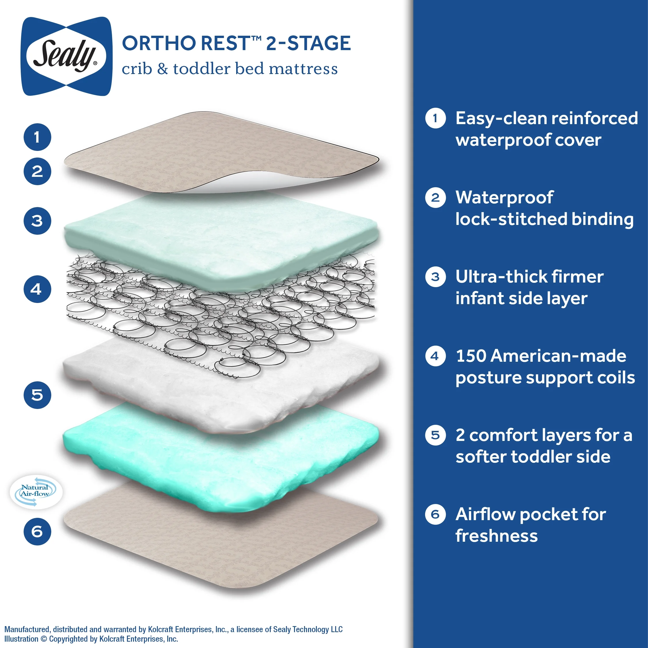 Sealy Ortho Rest Premium 2-Stage150 Coil Baby Crib and Toddler Mattress, Innerspring, Gray