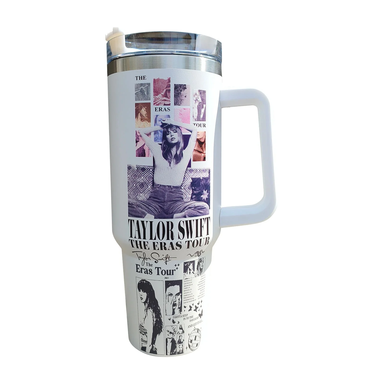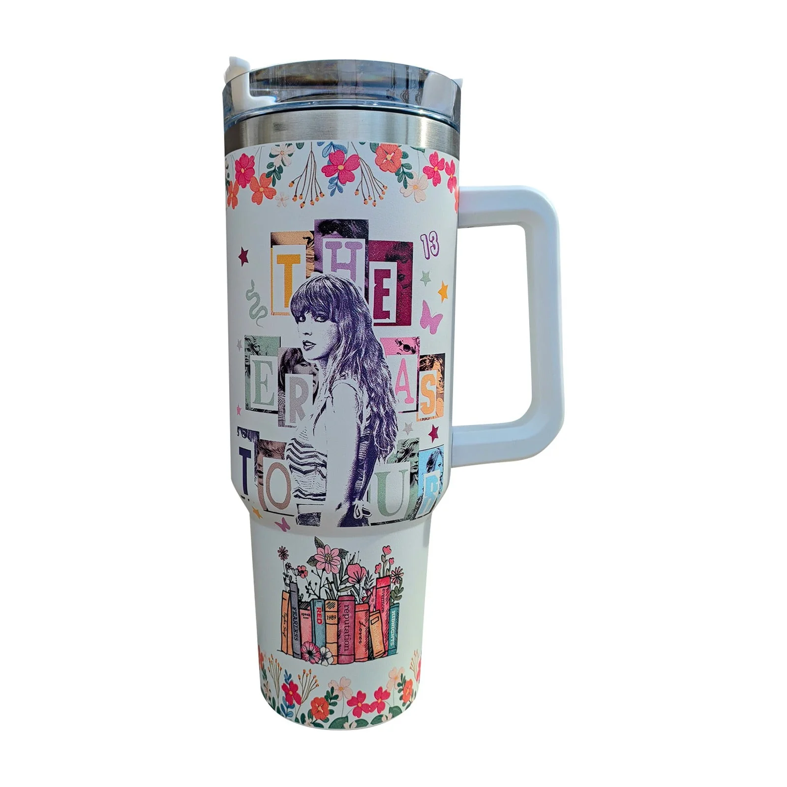 Taylor Swift Fans Gifts, Taylor Swift Cup, Stainless Steel 40 oz Taylor Tumbler Cup, Tumbler 40 Oz, Merry Tumbler with Handle, 40oz Tumbler Maintains Cold Heat and Ice for Hours