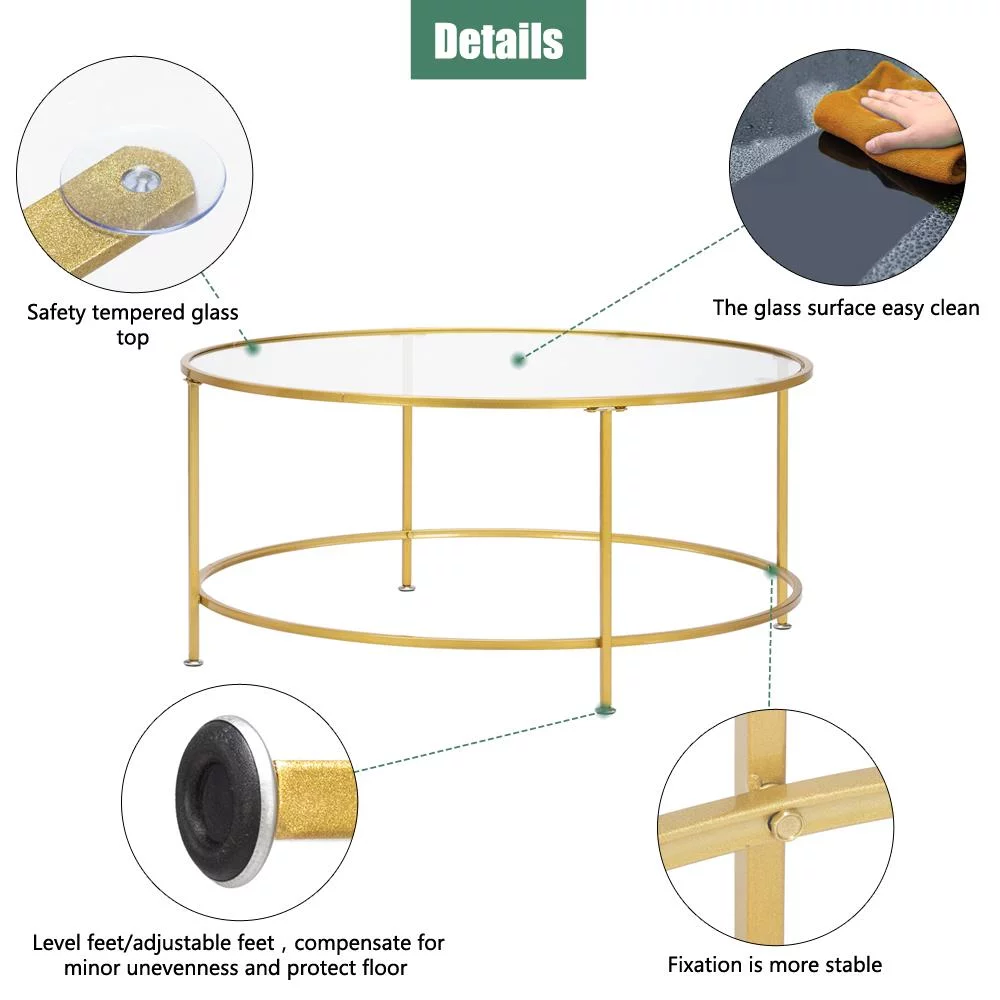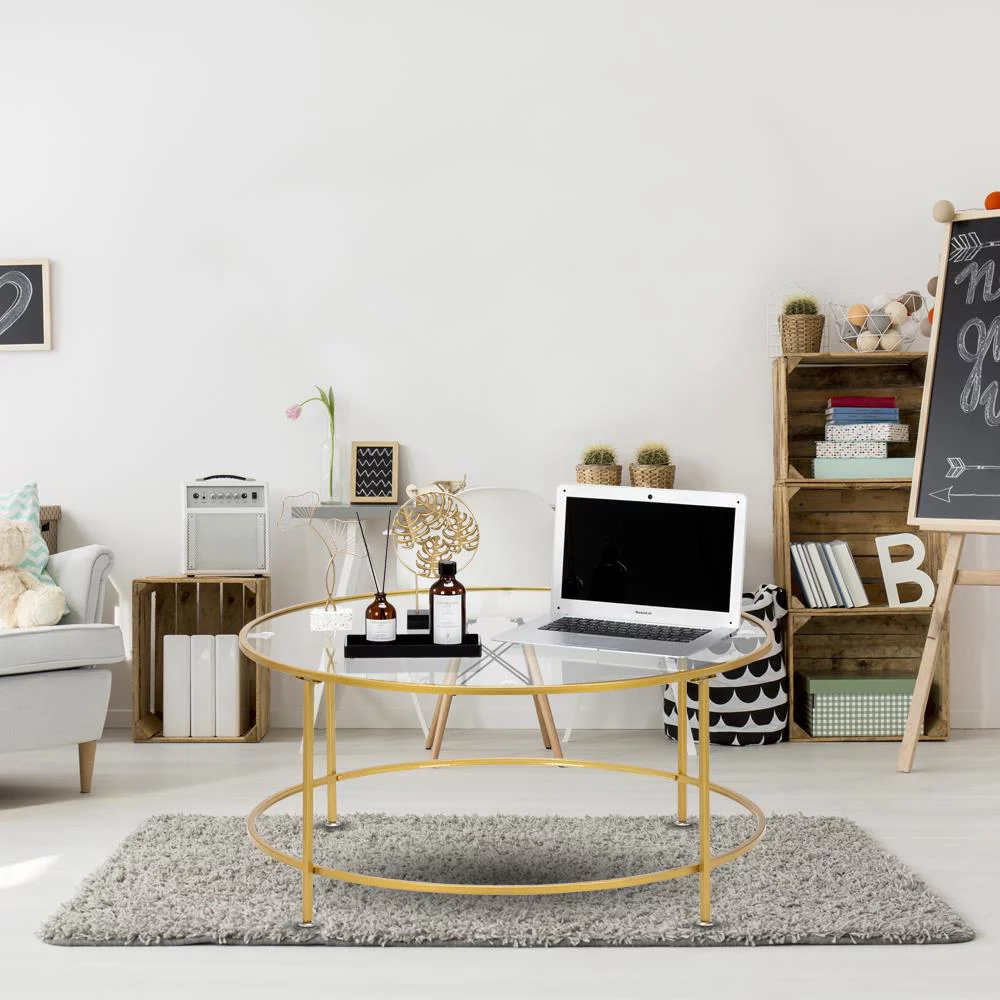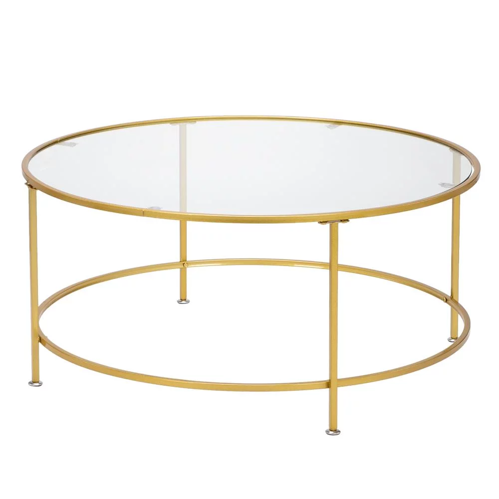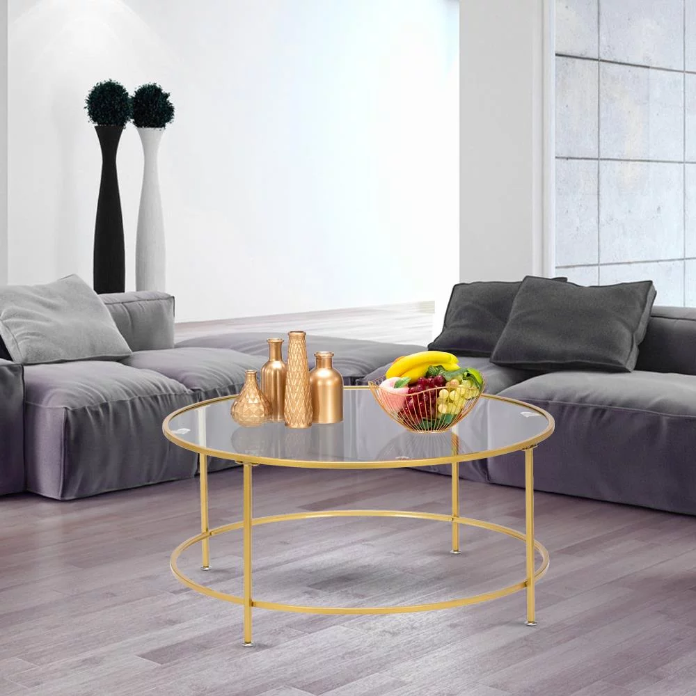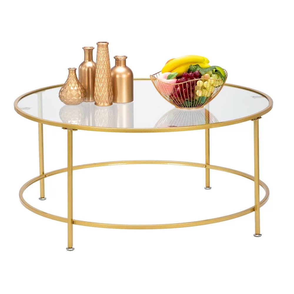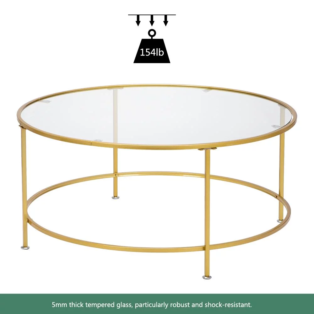 UBesGoo 36" Round Glass Coffee Table with Golden Iron Frame For Living Room Office - Curated Treasures Market