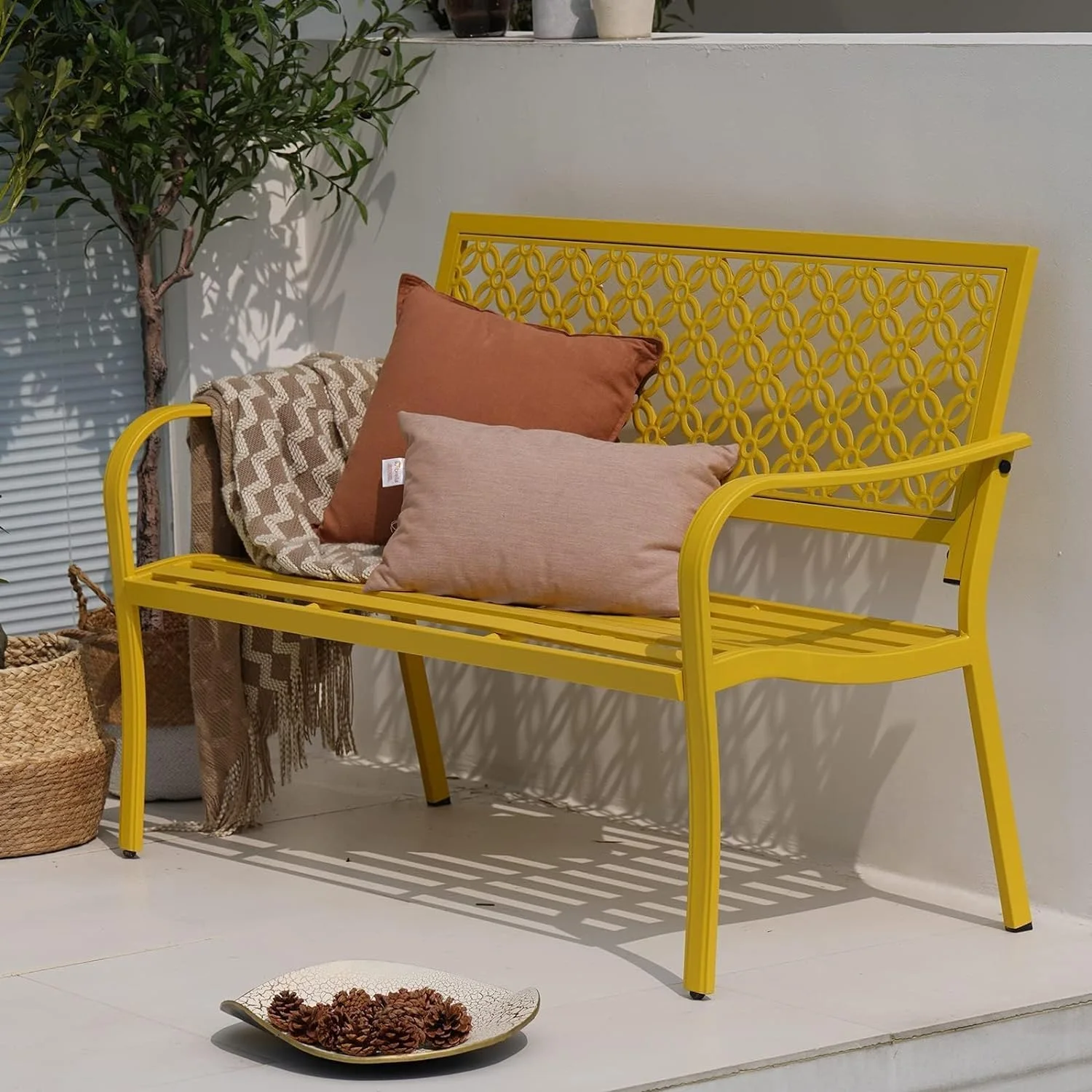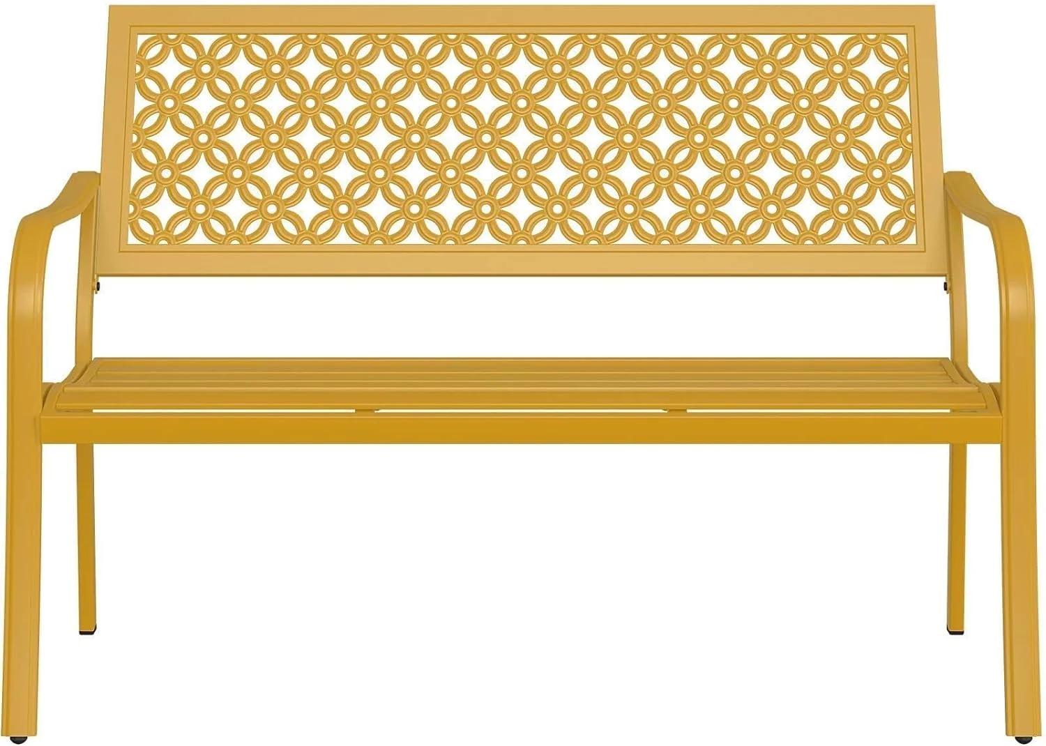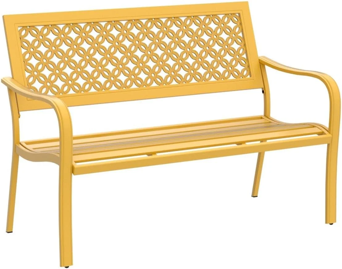 Outdoor Bench, Garden Benches with Anti-Rust Metal Powder Coated Frame, Patio Bench for Front Porch Park Outside Furniture Decor, Sunflower Yellow - Curated Treasures Market