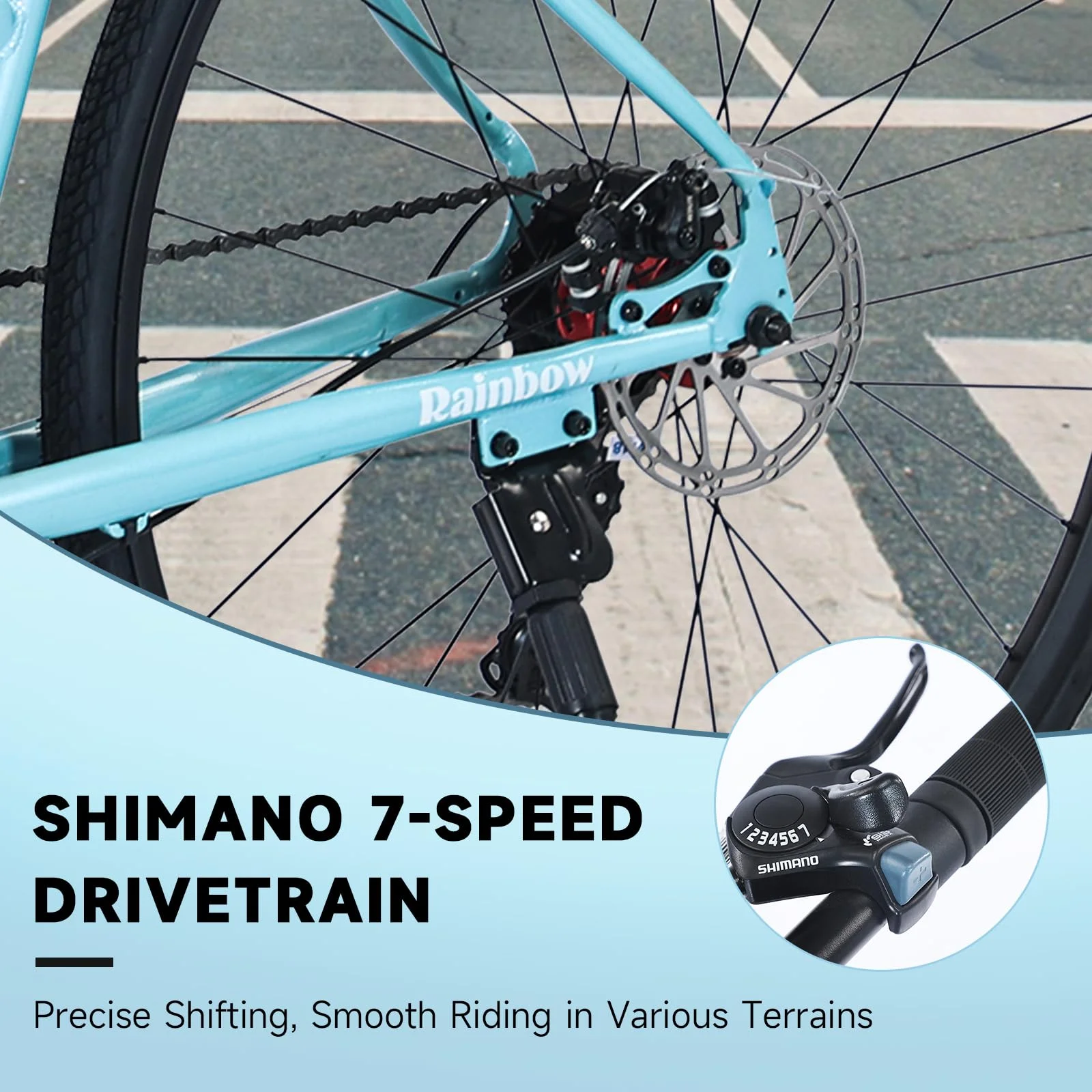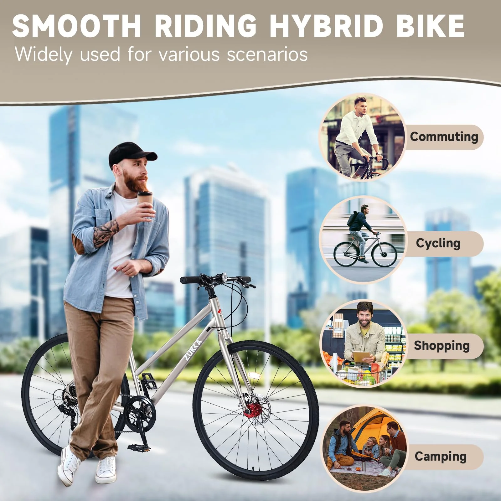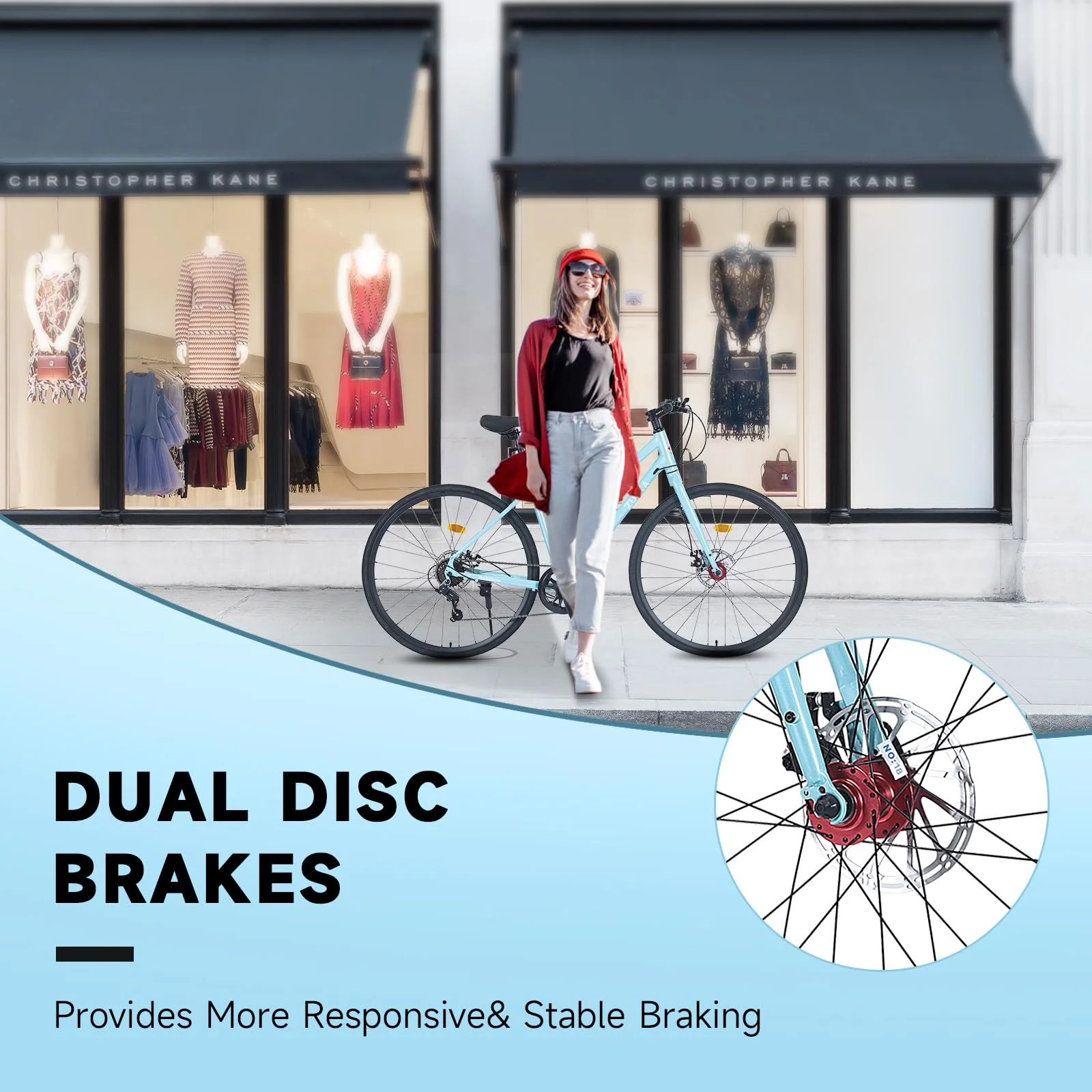 ADHINO Road Bike, 8 Speed Shimano Driven Flat Bar 800C Dual Disc Brake Hybrid Bike for Unisex Adult Women Men Senior Junior