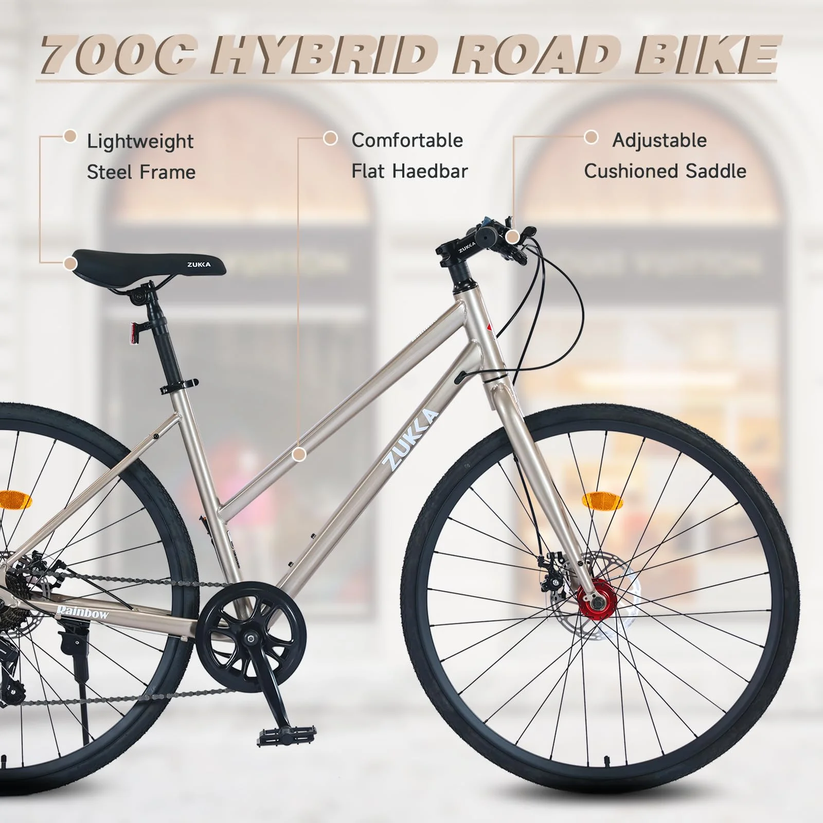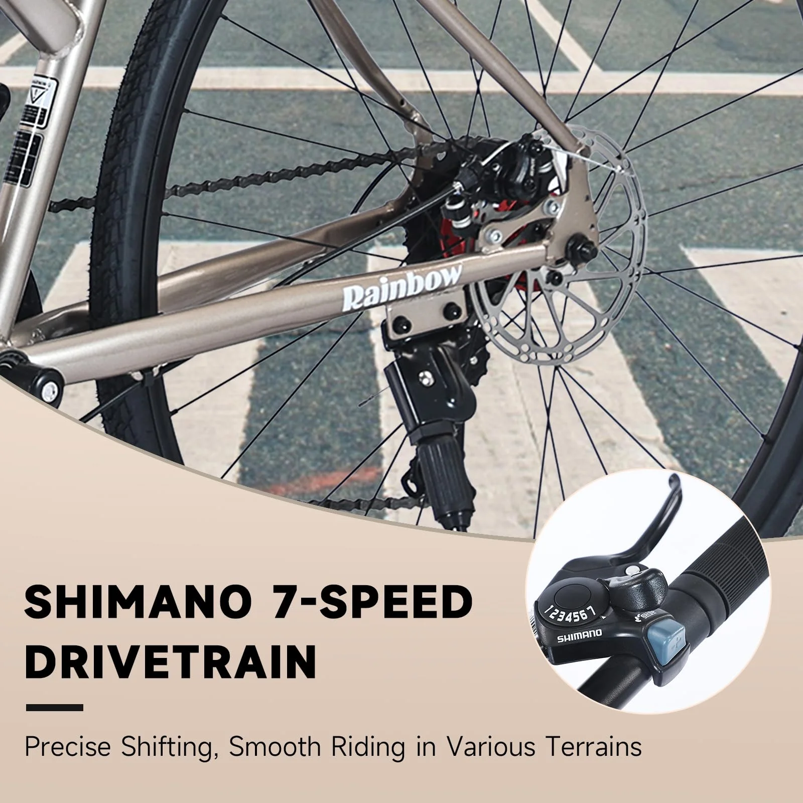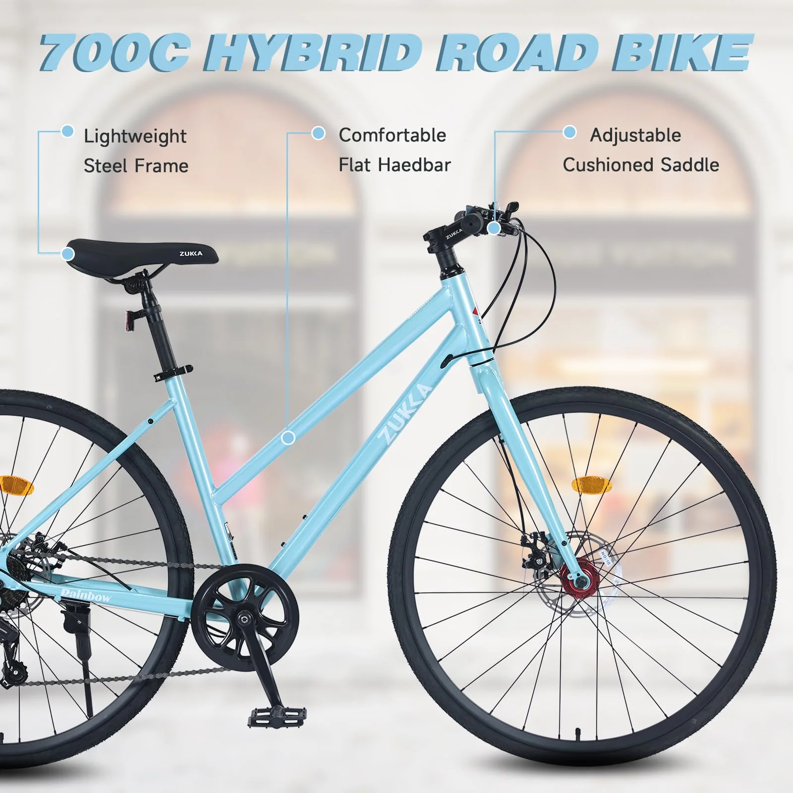 ADHINO Road Bike, 8 Speed Shimano Driven Flat Bar 800C Dual Disc Brake Hybrid Bike for Unisex Adult Women Men Senior Junior