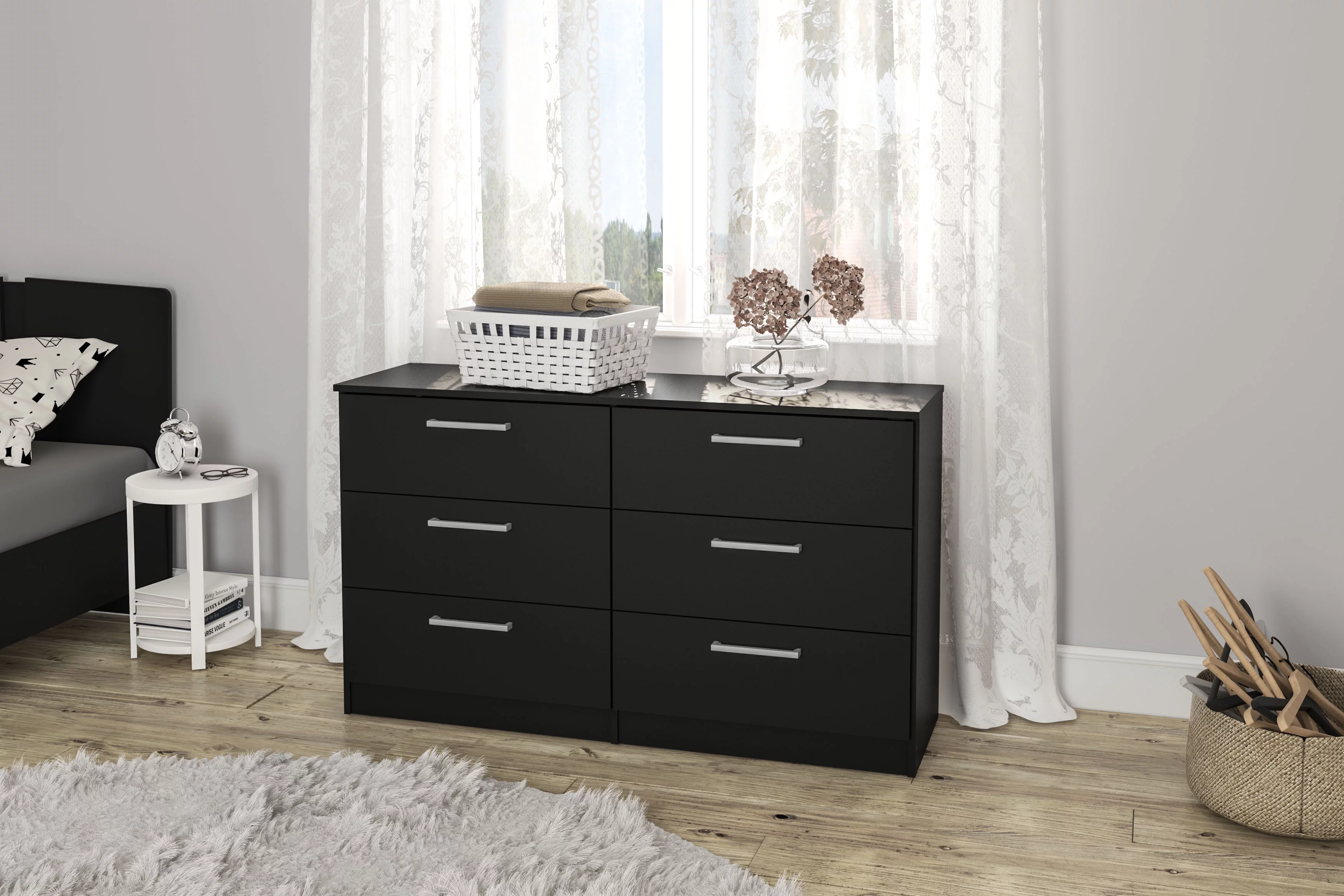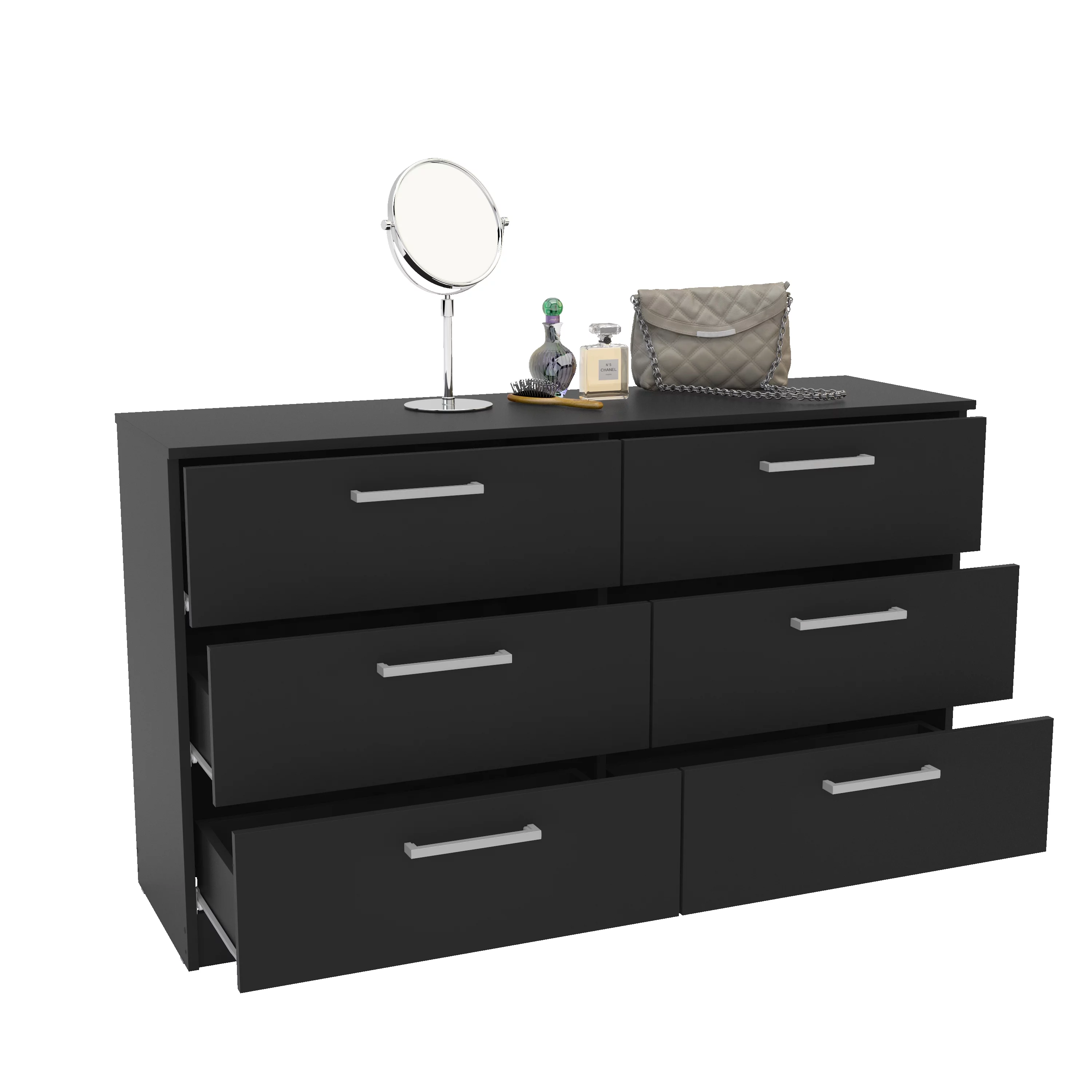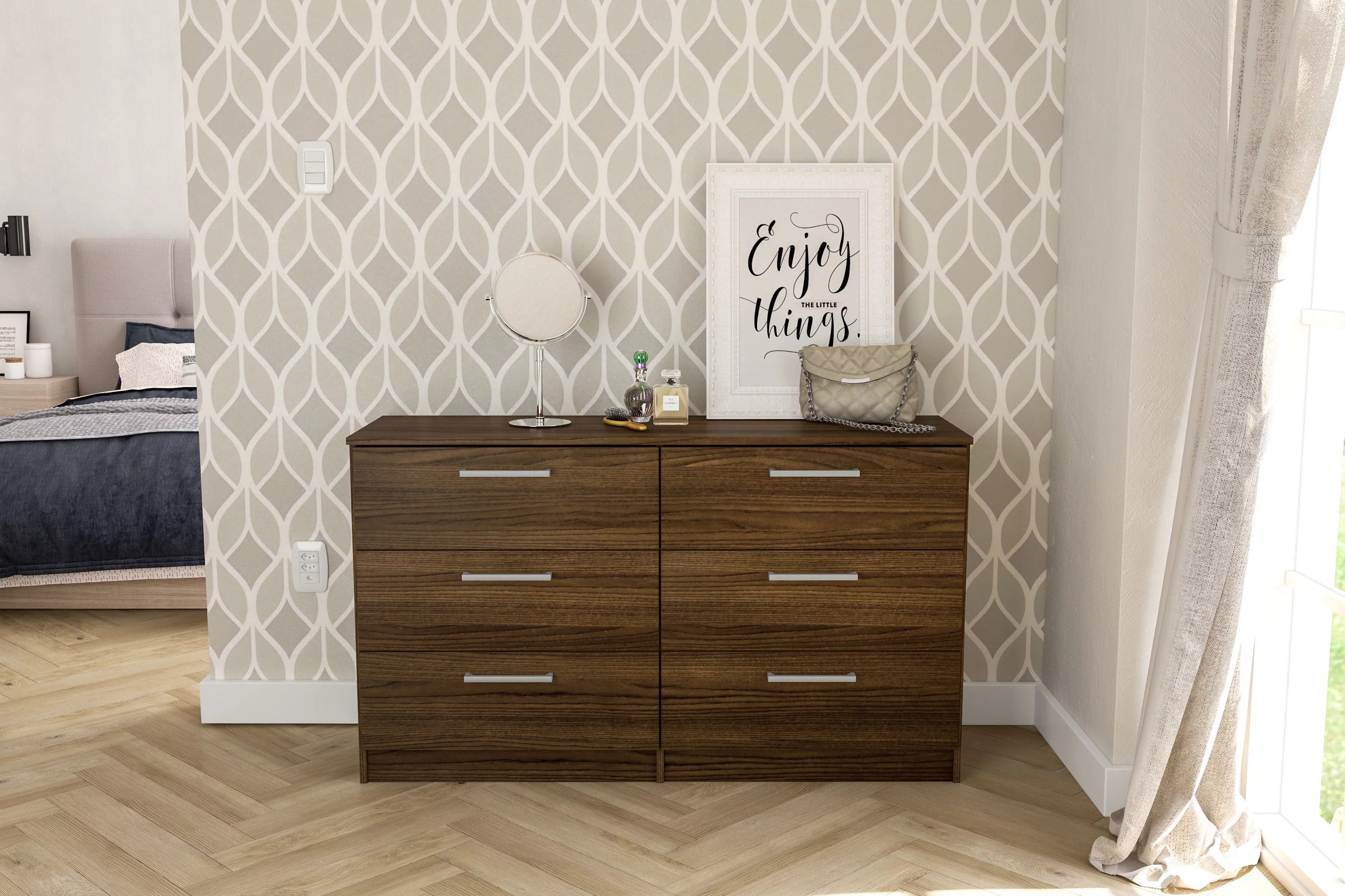 Polifurniture Juliette Modern 6 Drawer Wood Double Dresser with Metal Handles, White