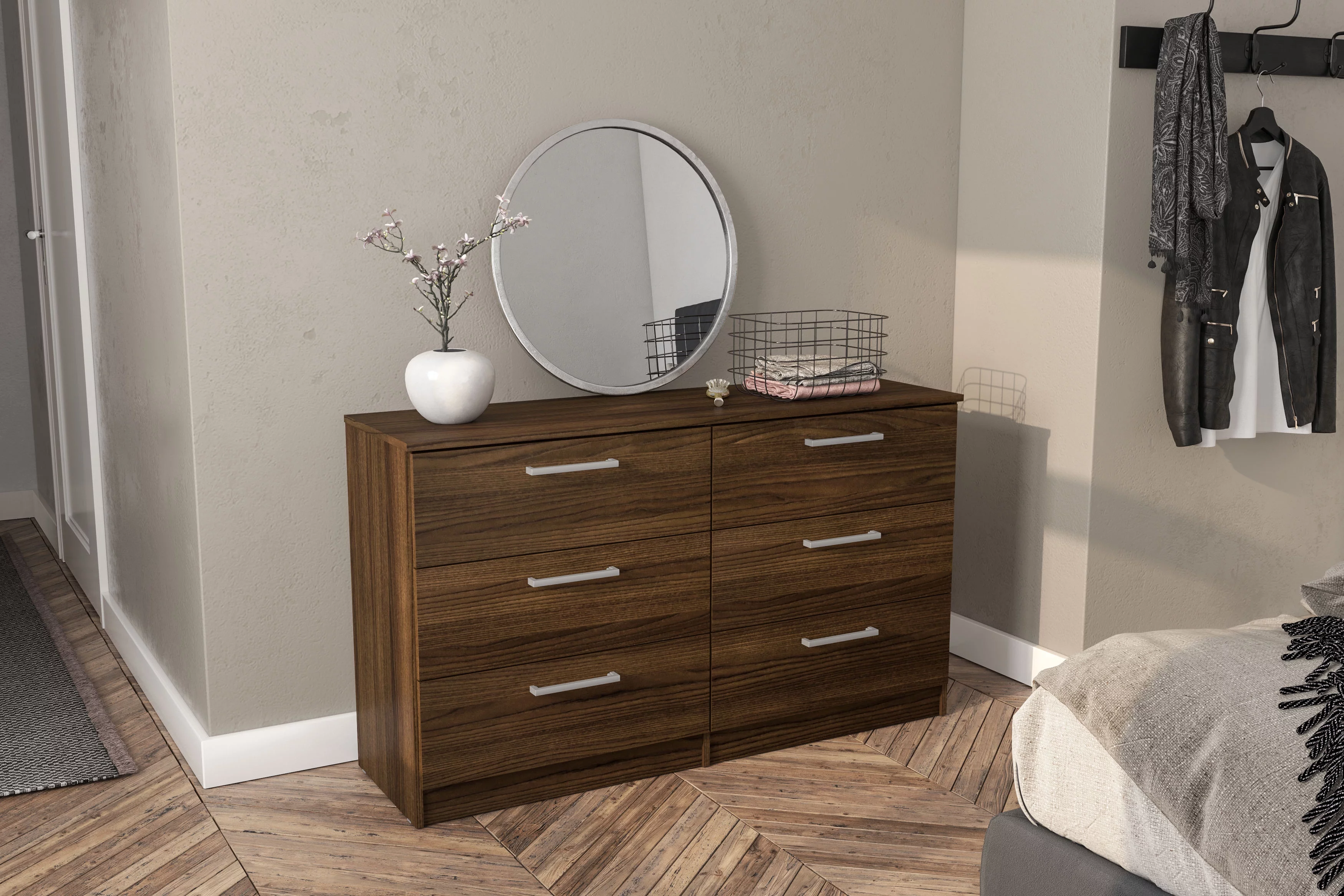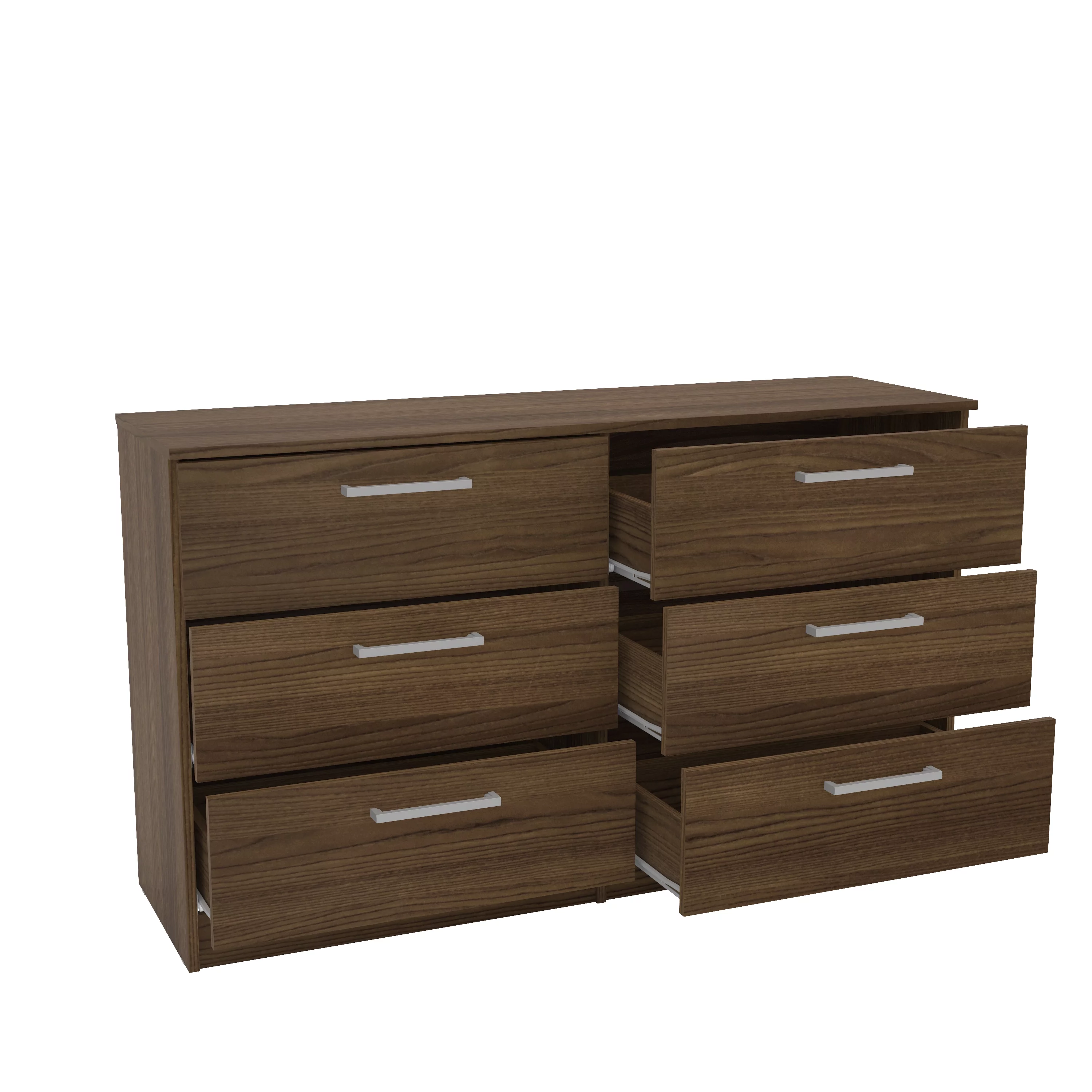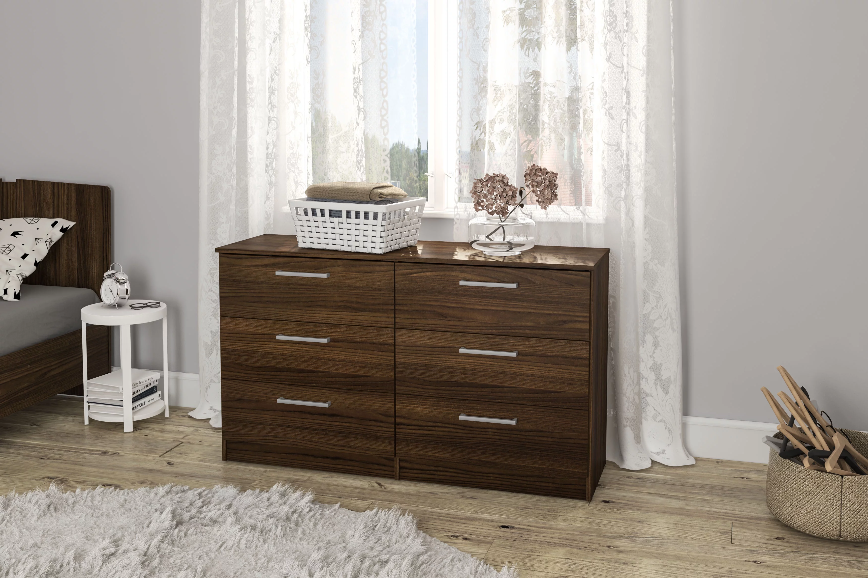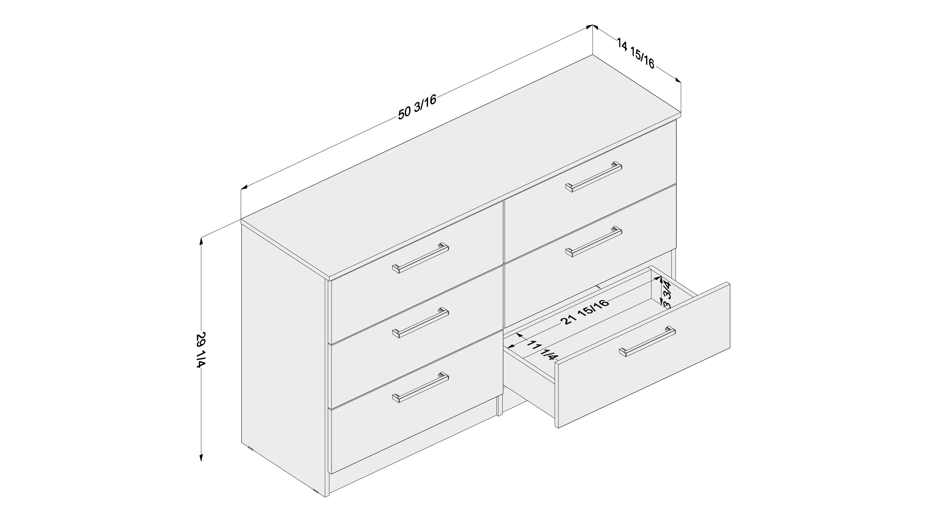 Polifurniture Juliette Modern 6 Drawer Wood Double Dresser with Metal Handles, White