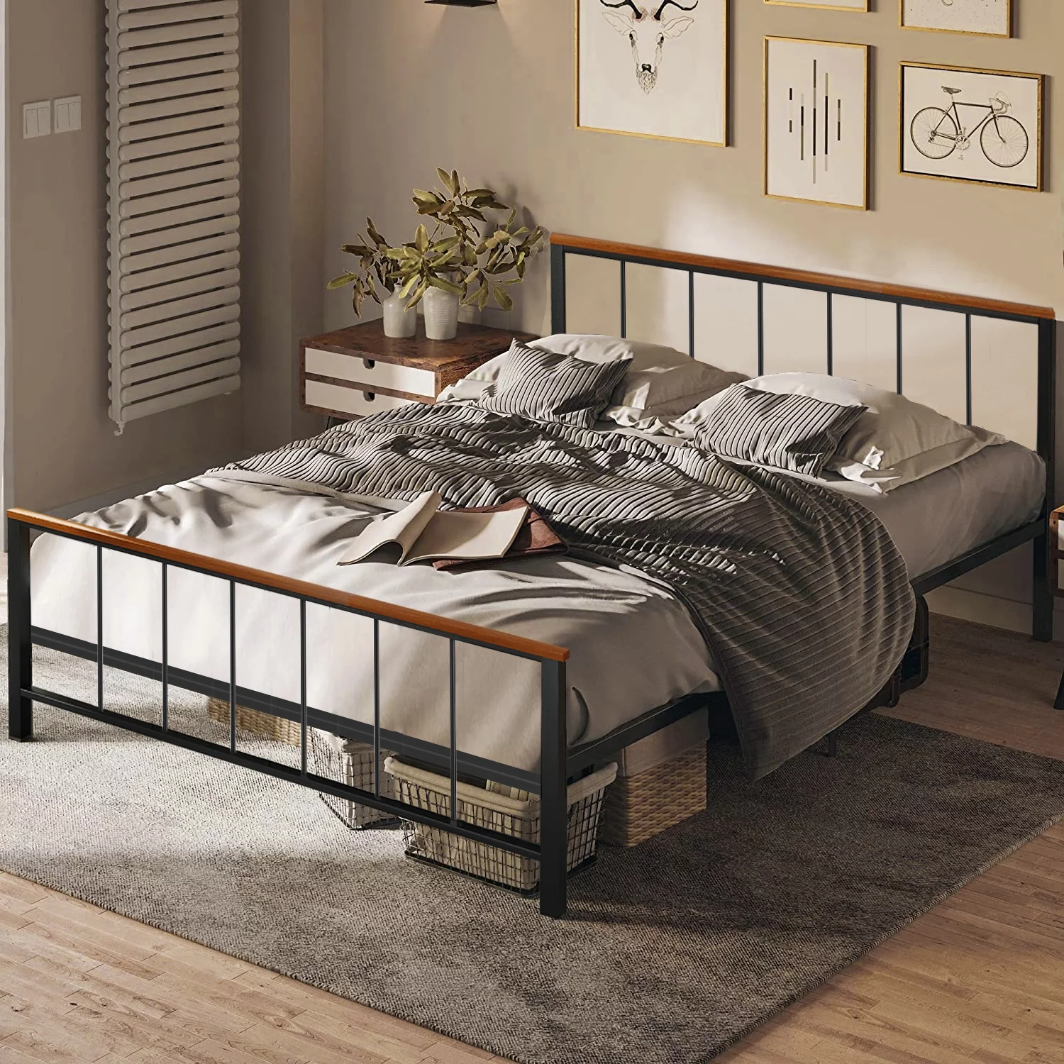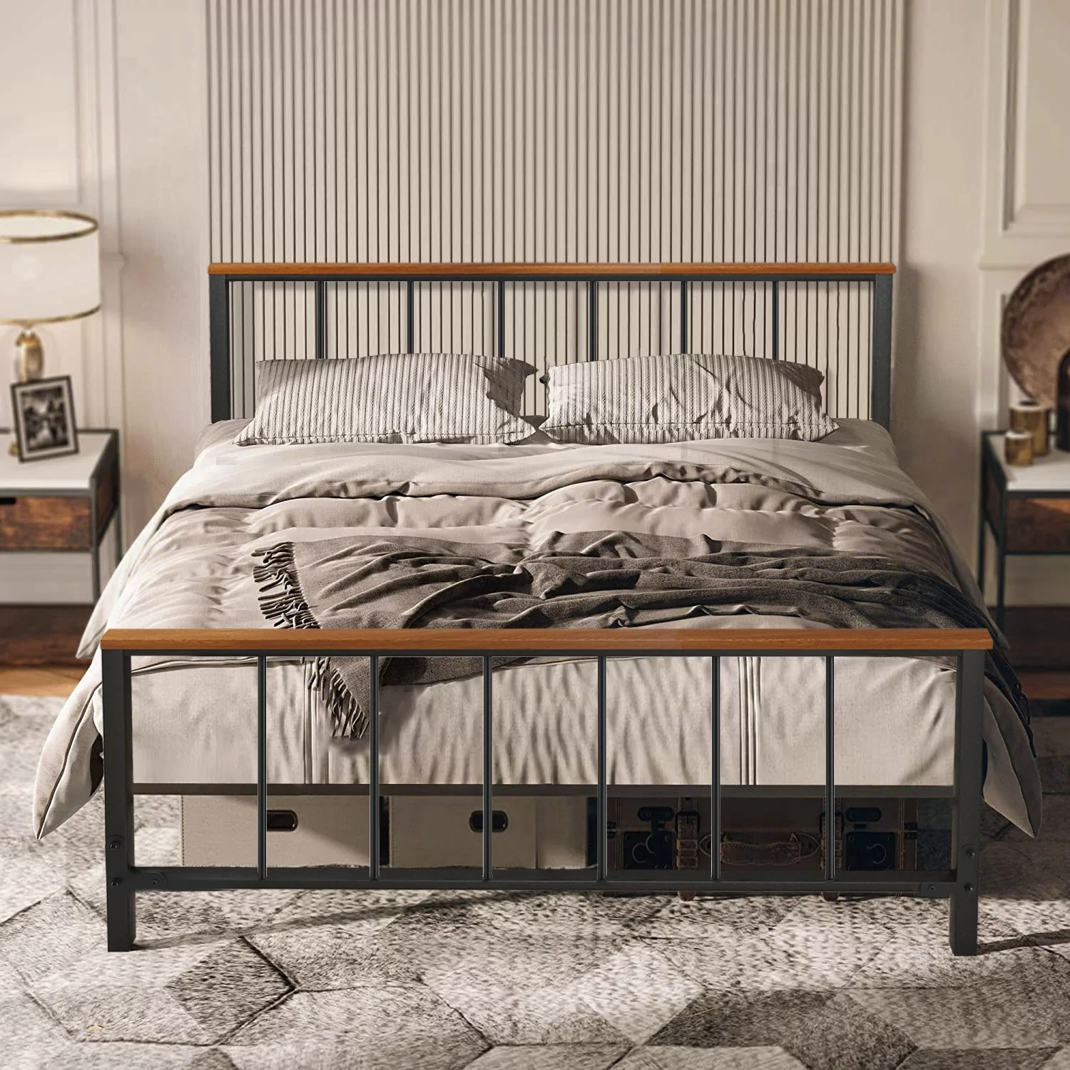 Metal Platform Bed Frame, UHOMEPRO Full Size Bed Frame with Headboard and Footboard, Bed Frame No Box Spring Needed, Full Bed Frame for Kids Adult, Iron Bed Frame for Bedroom Furniture, Black, W15306