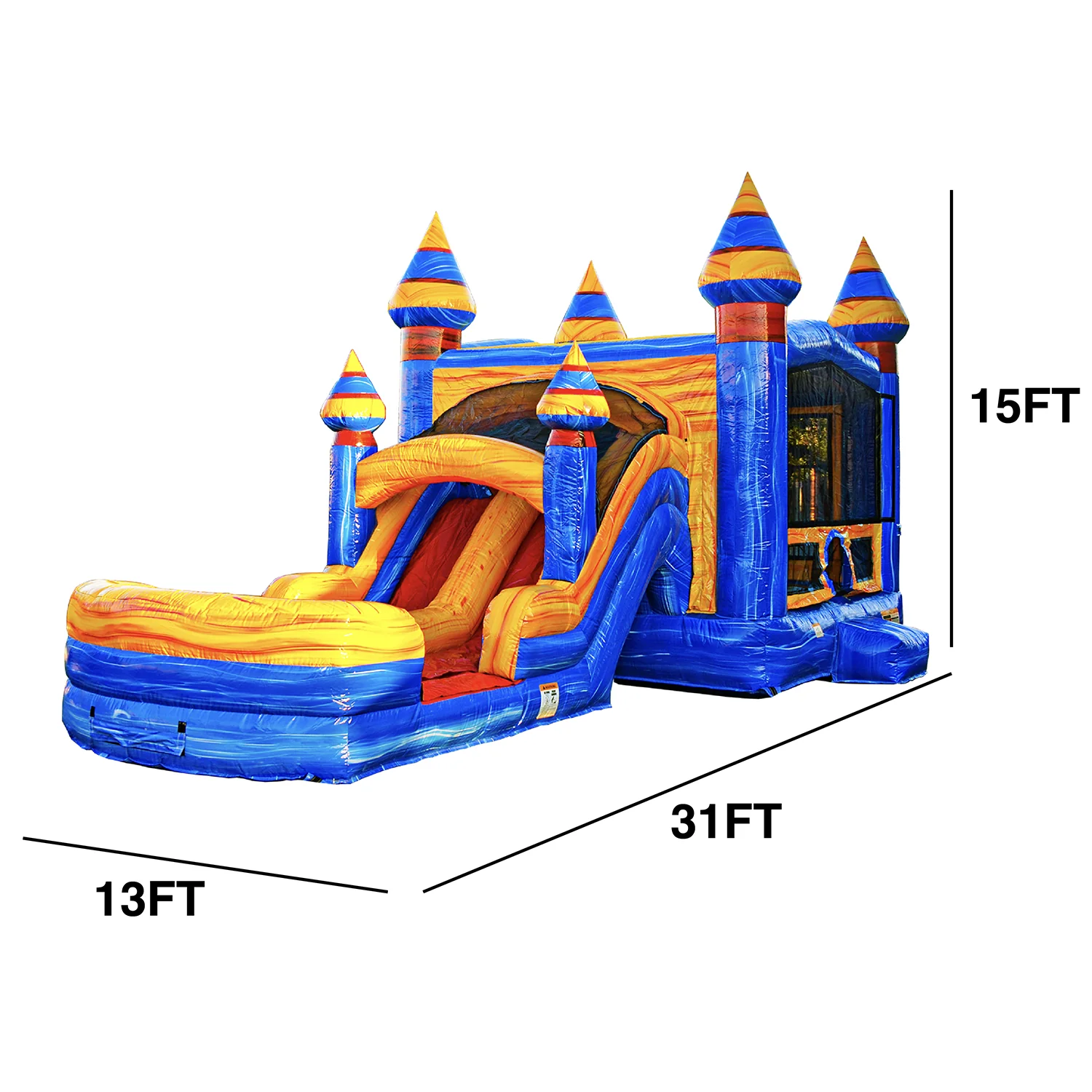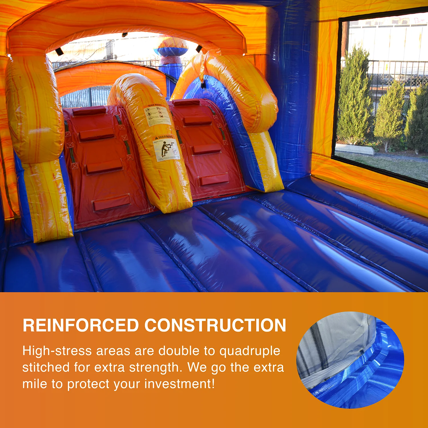 JumpOrange Commercial Grade Inflatable Jumpy Bounce with Two Slides, for Adults and Kids, Wet Dry Use, Includes Heavy Duty Blower, Stakes and Storage, Blowup Playset