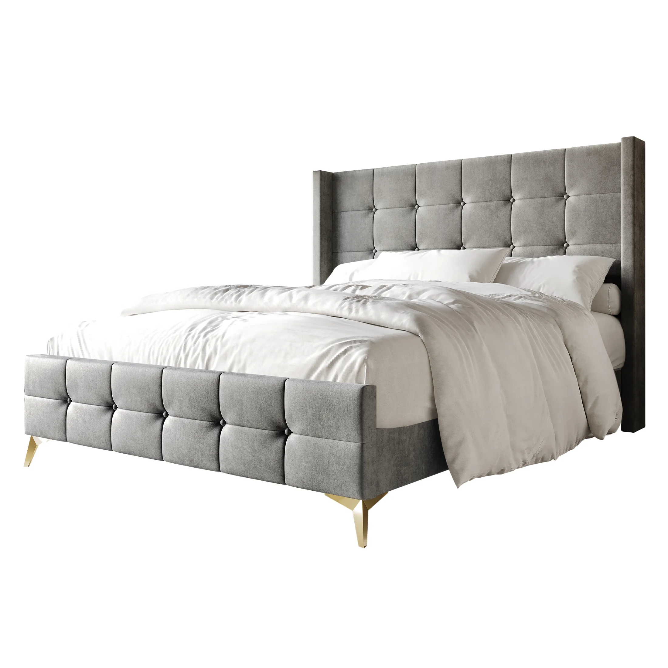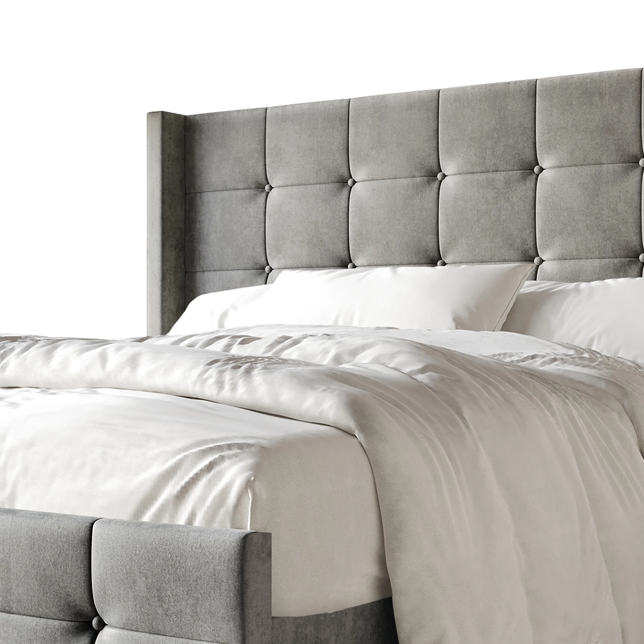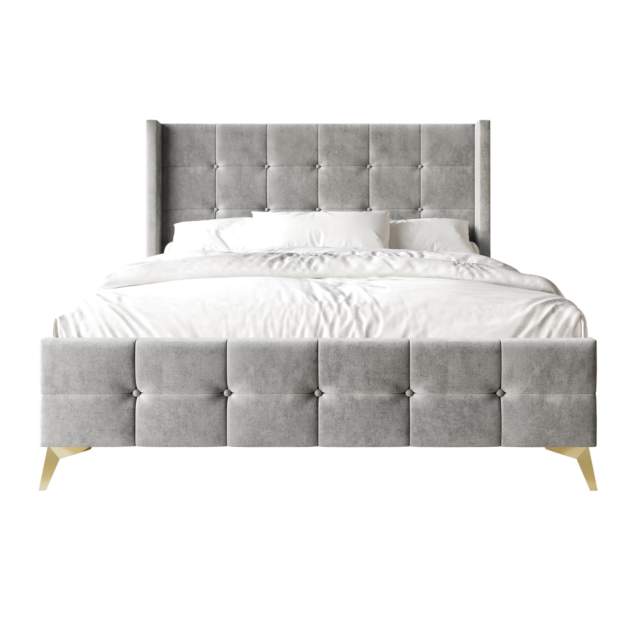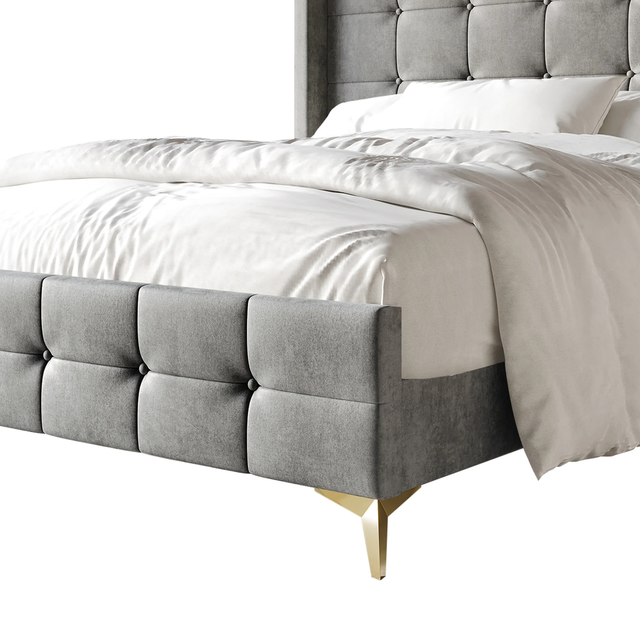 Castle Place Luxury Glam Twin Size Velvet Upholstered Bed, Silver Grey