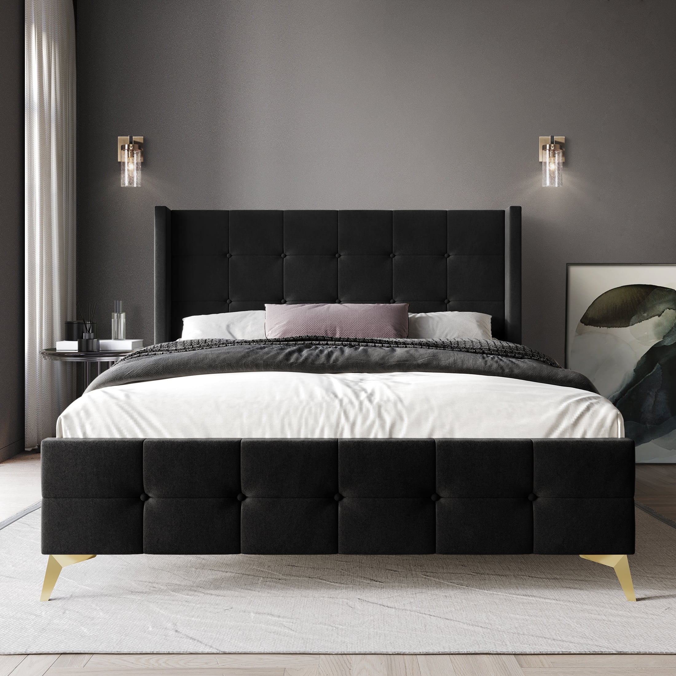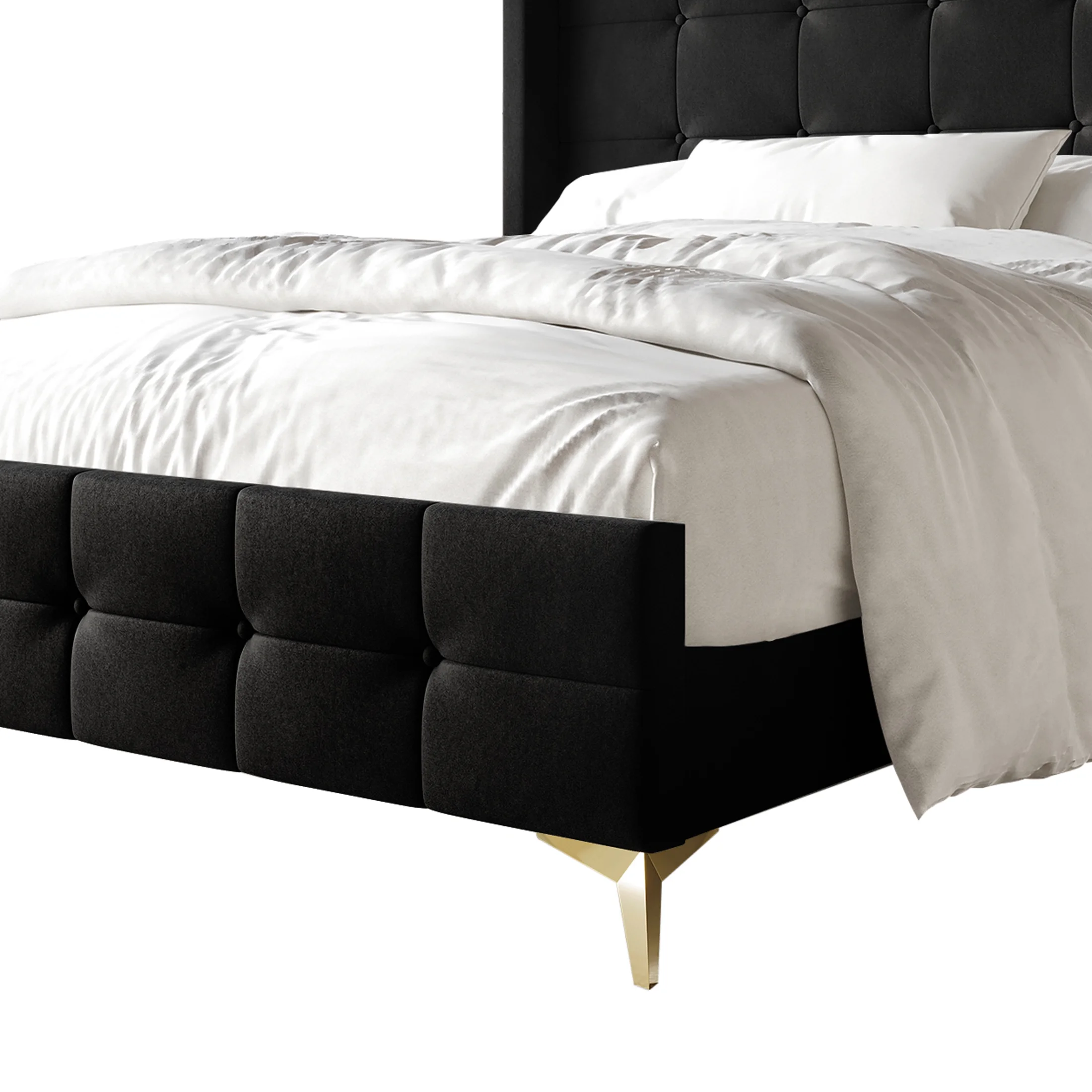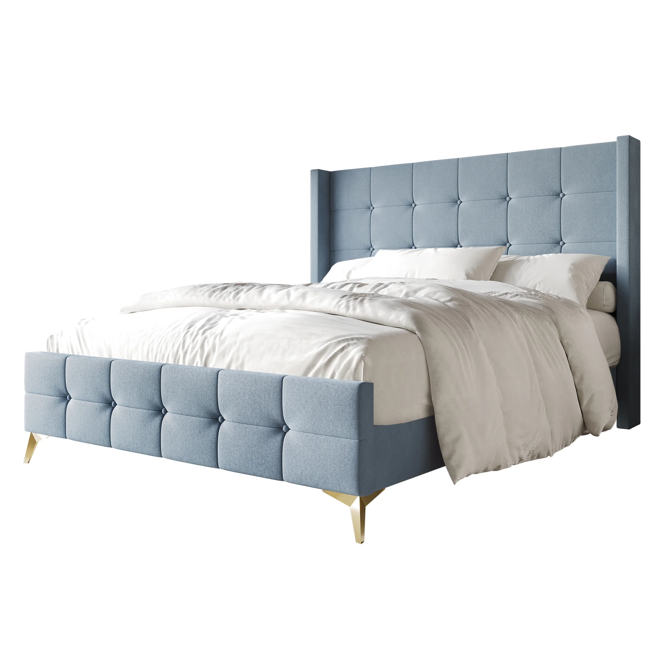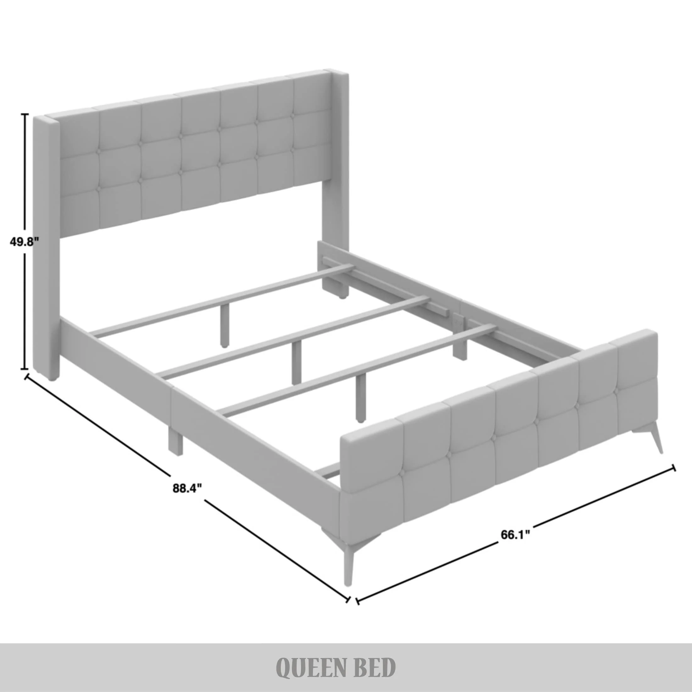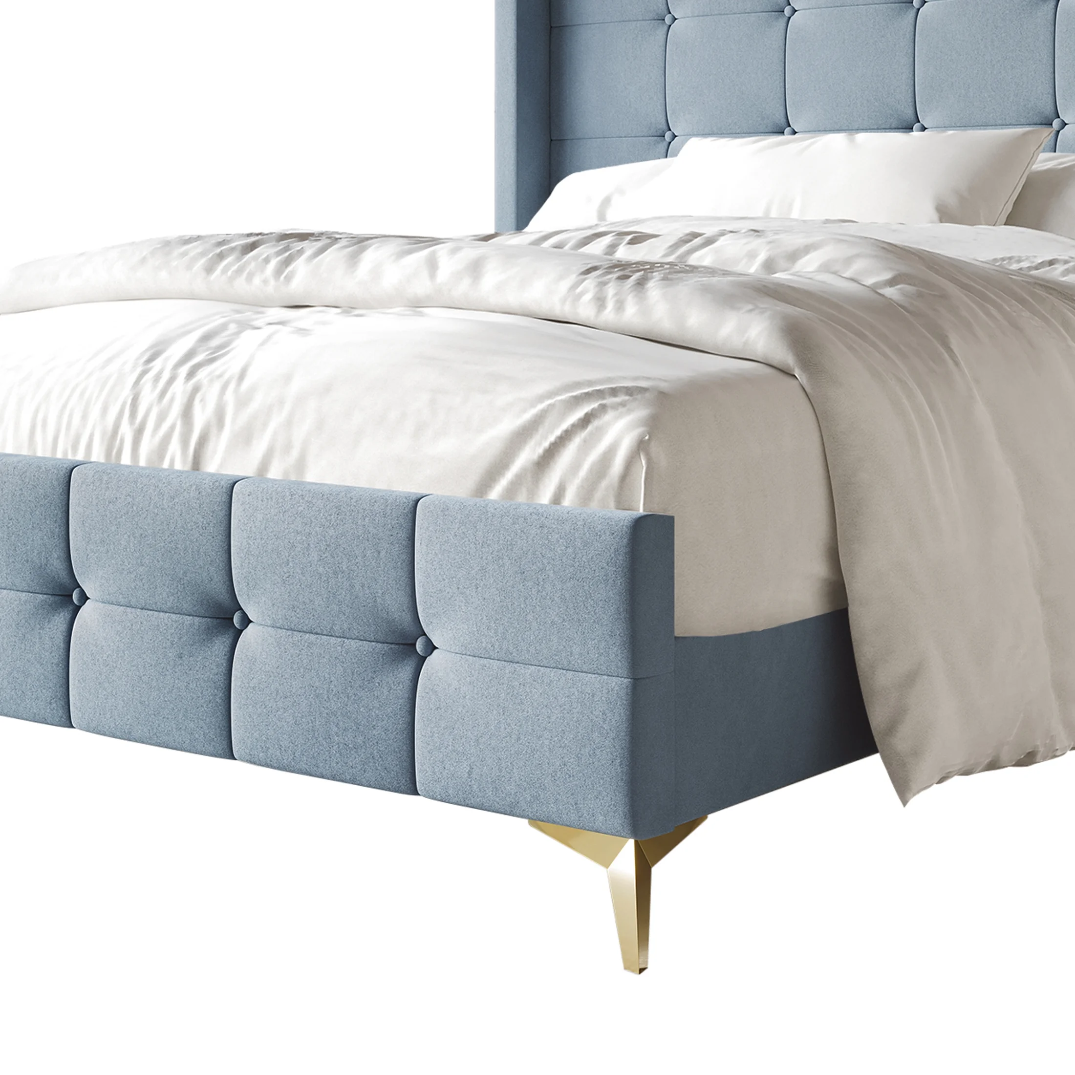 Castle Place Luxury Glam Twin Size Velvet Upholstered Bed, Silver Grey