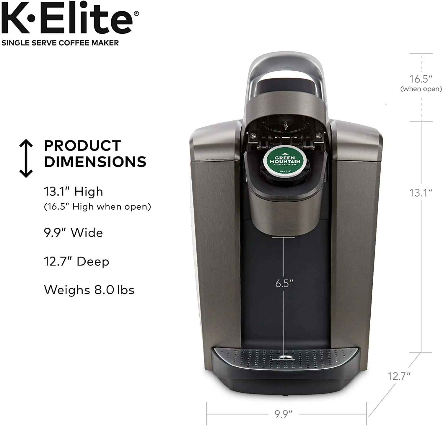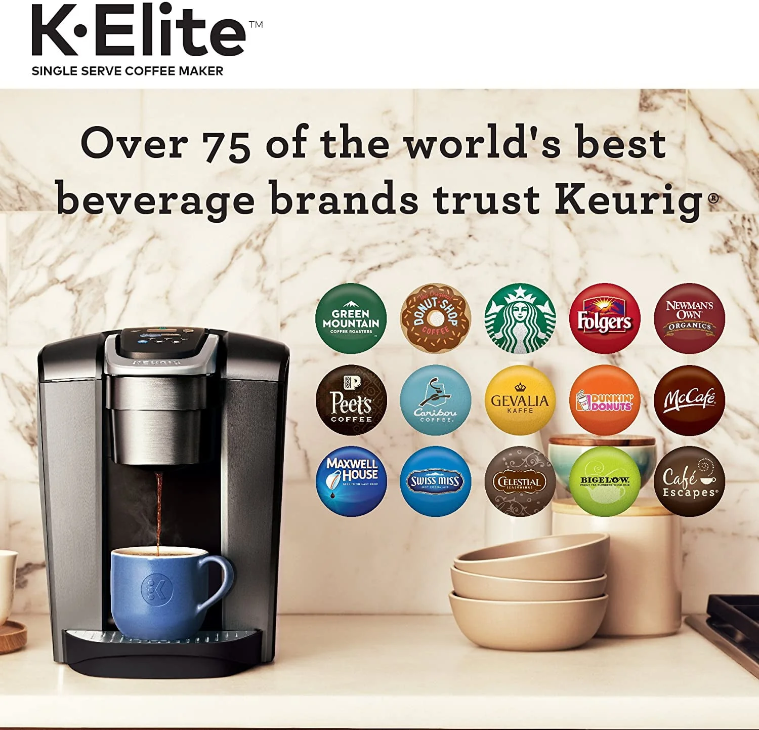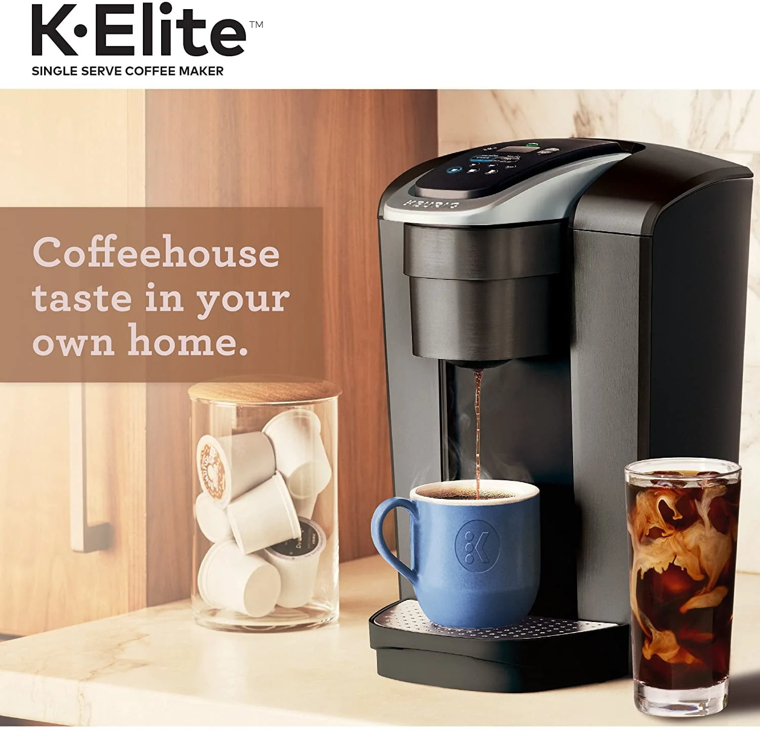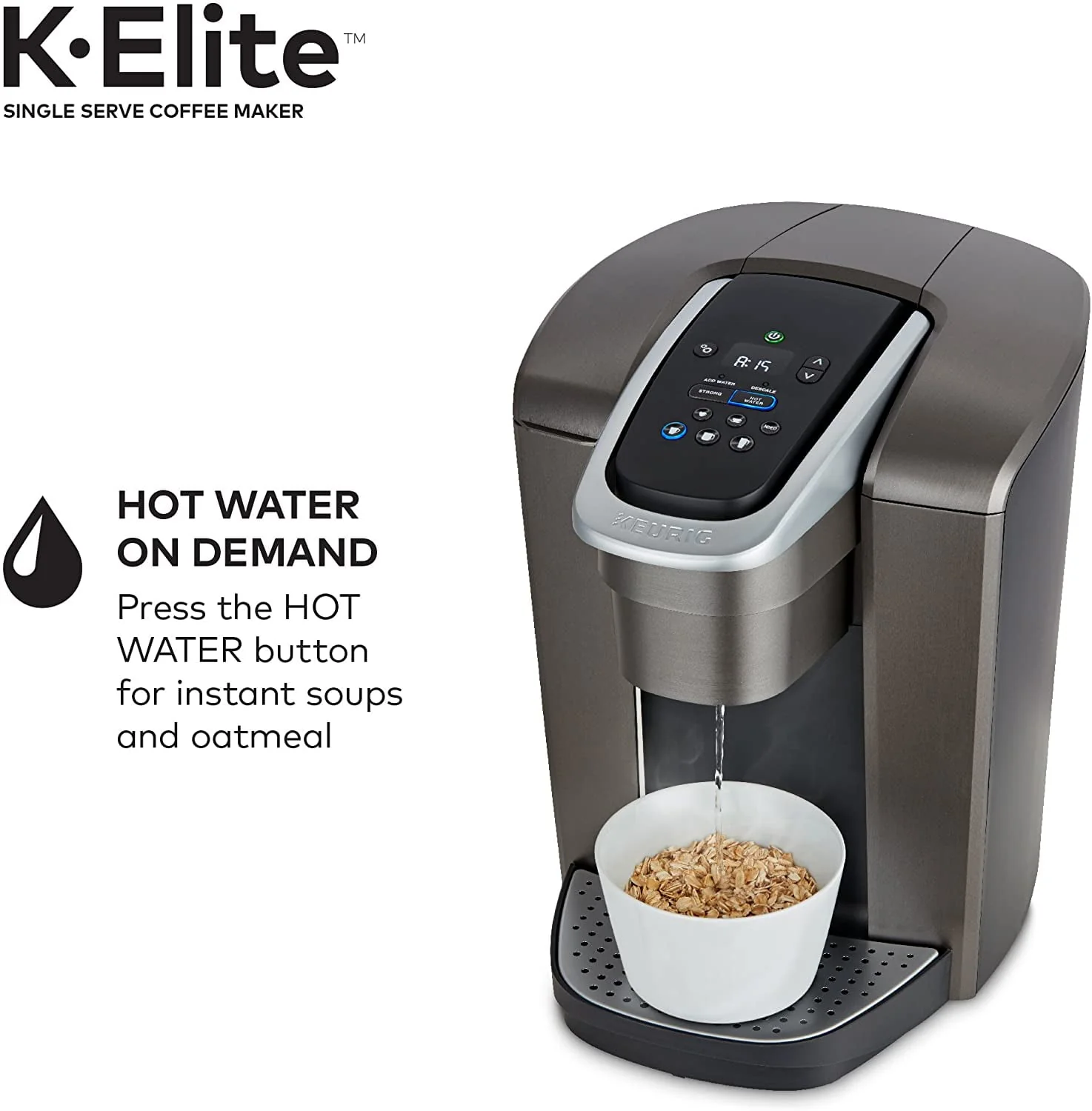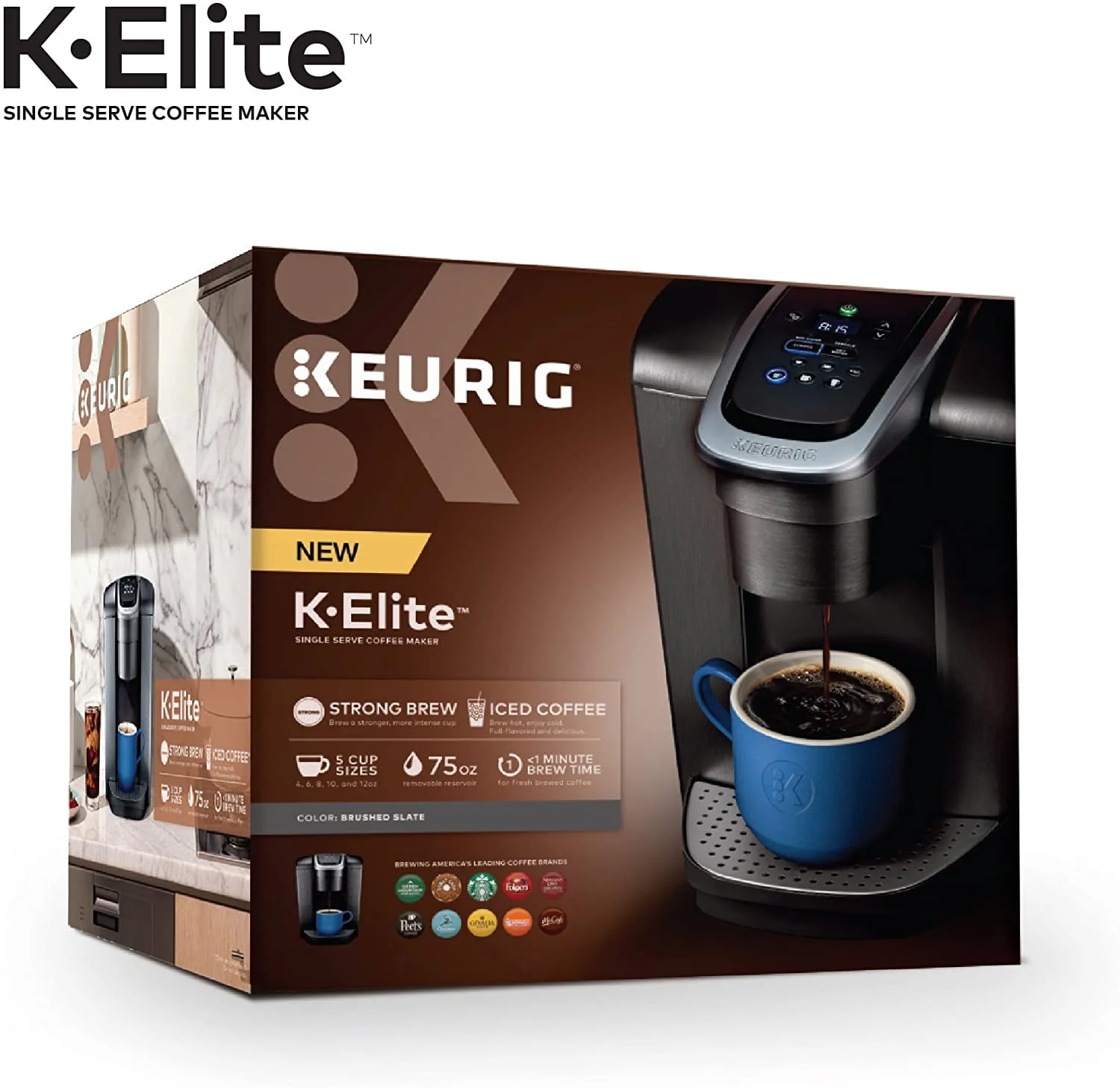 Keurig K-Elite Single Serve K-Cup Pod Coffee Maker, with Strong Temperature Control, Iced Coffee Capability, 12oz Brew Size, Programmable, Brushed Slate