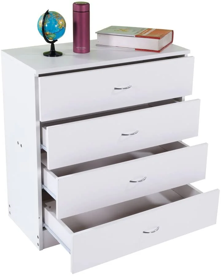 RUNFAYBIU Nightstand with 4 Drawers Wood Vertical Dresser Tower Bedside Bedroom End Table Chest for Home Office White