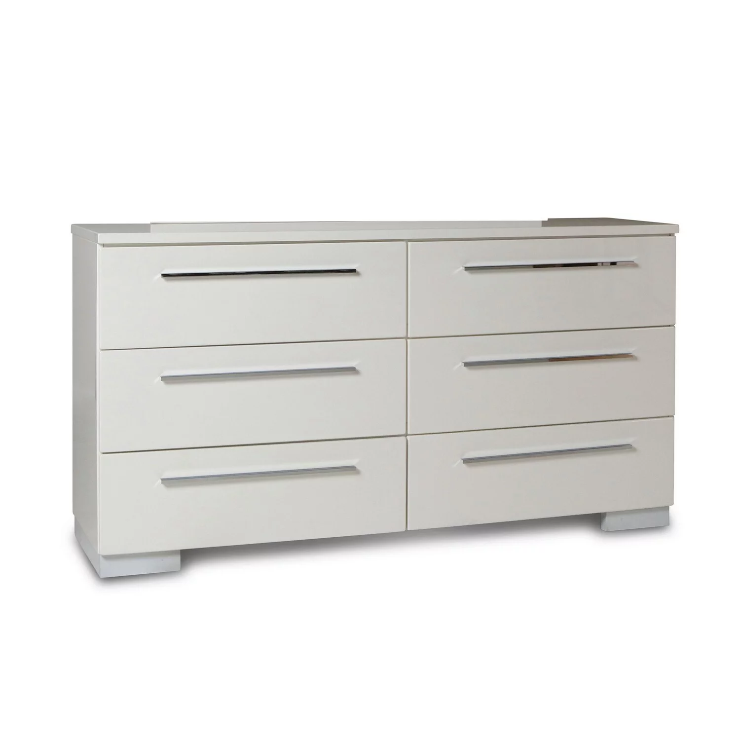 Benzara Contemporary Style 6 Drawer Wooden Dresser with Metal Pulls. White