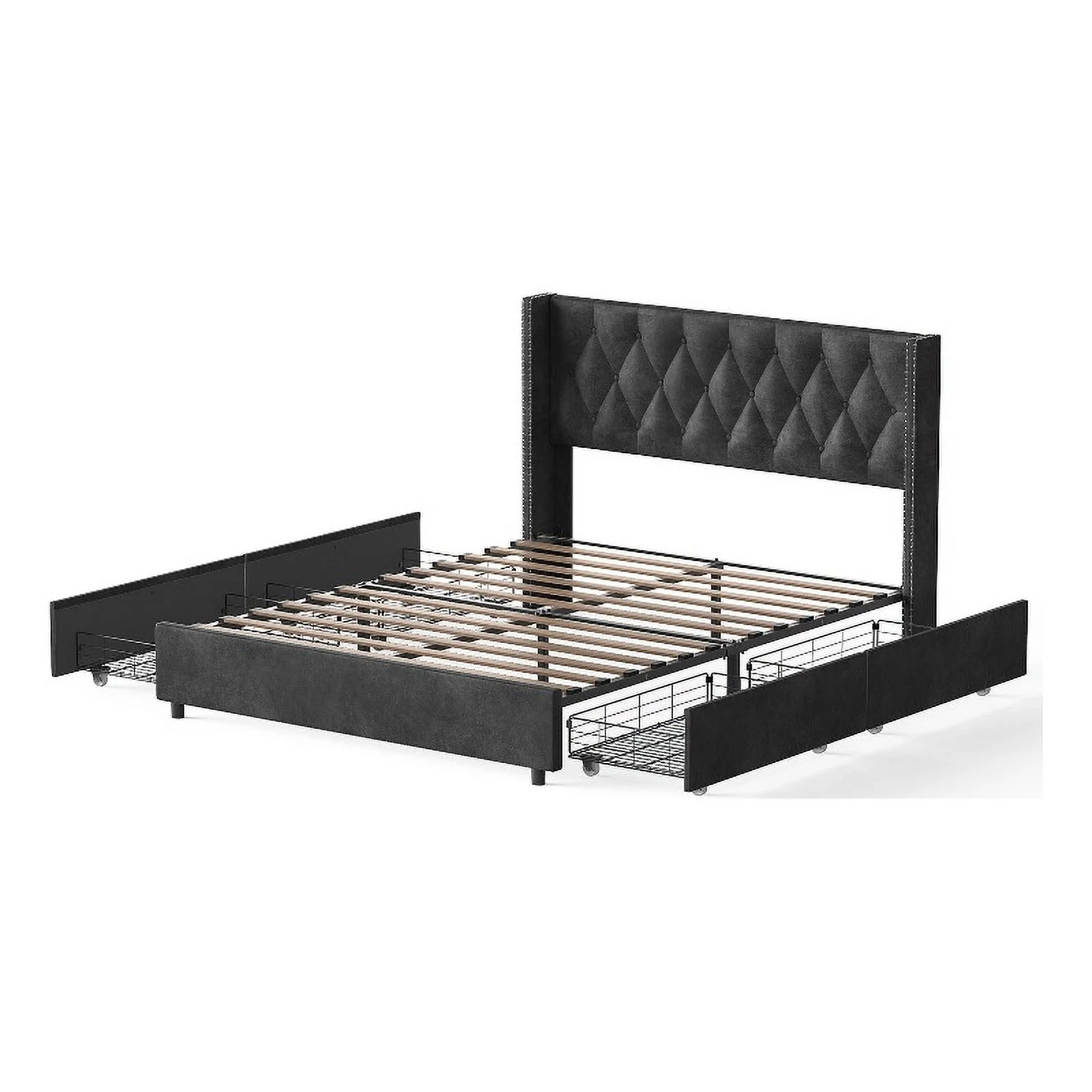 Better Home Products Amelia 4-Drawer Velvet Full Size Platform Bed in Black