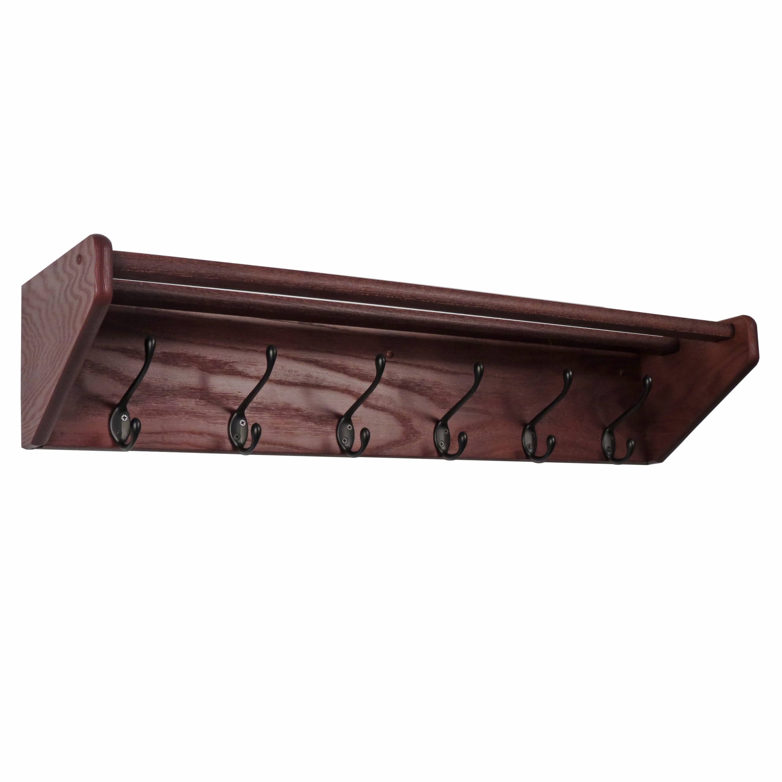 Wooden Mallet 6 Hook Shelf, Black Hooks, Mahogany - Avayadevconnect