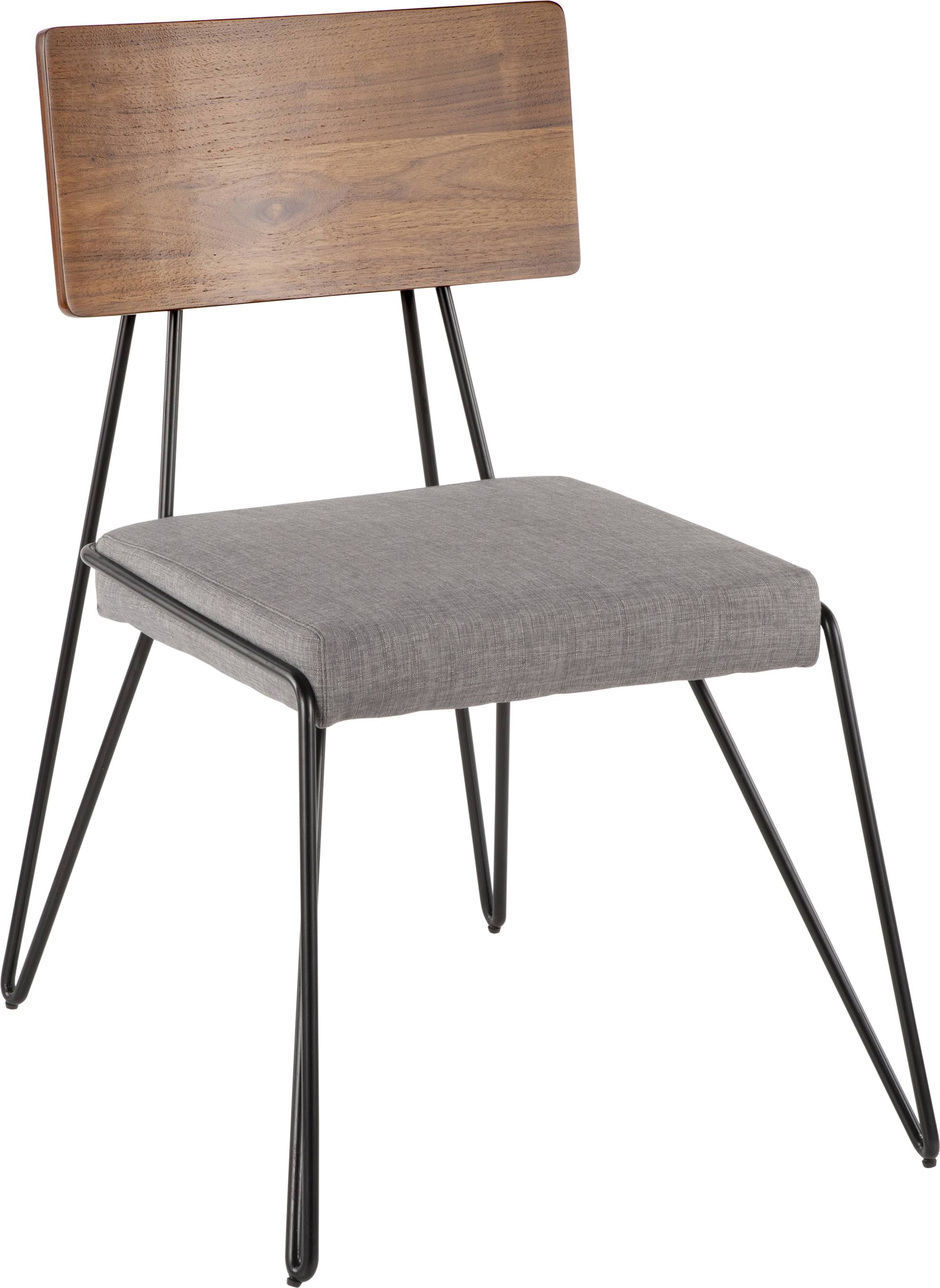 LumiSource Loft Dining Chair Grey Fabric Walnut Black Metal (Set of 2) - Megean